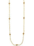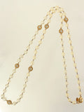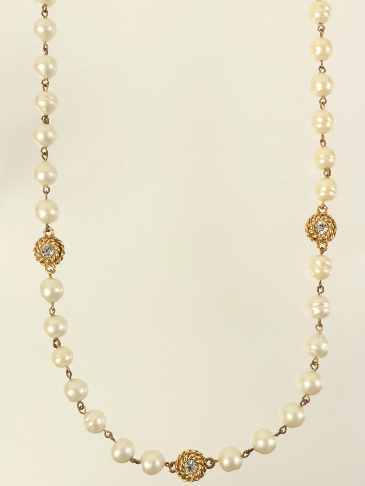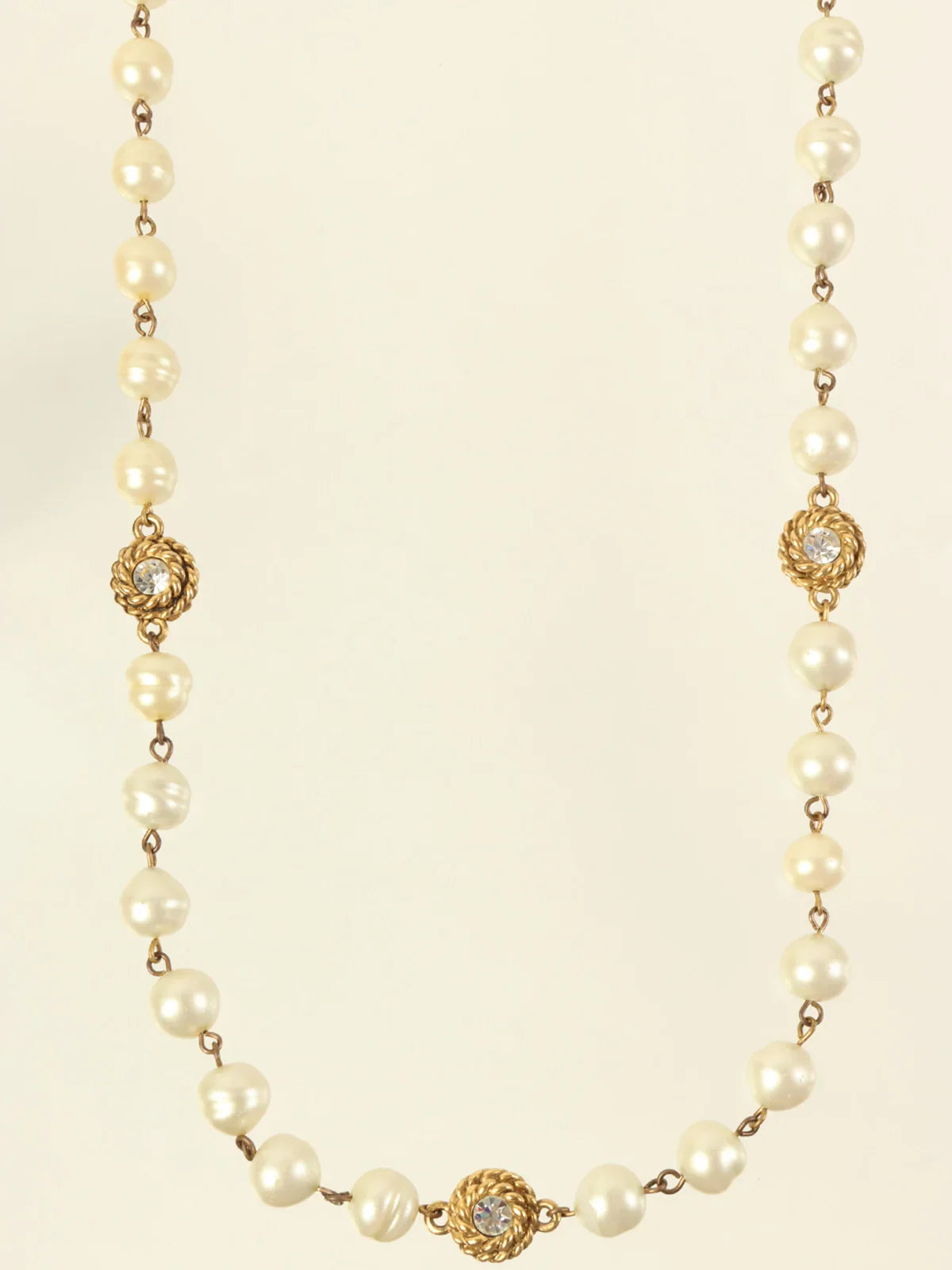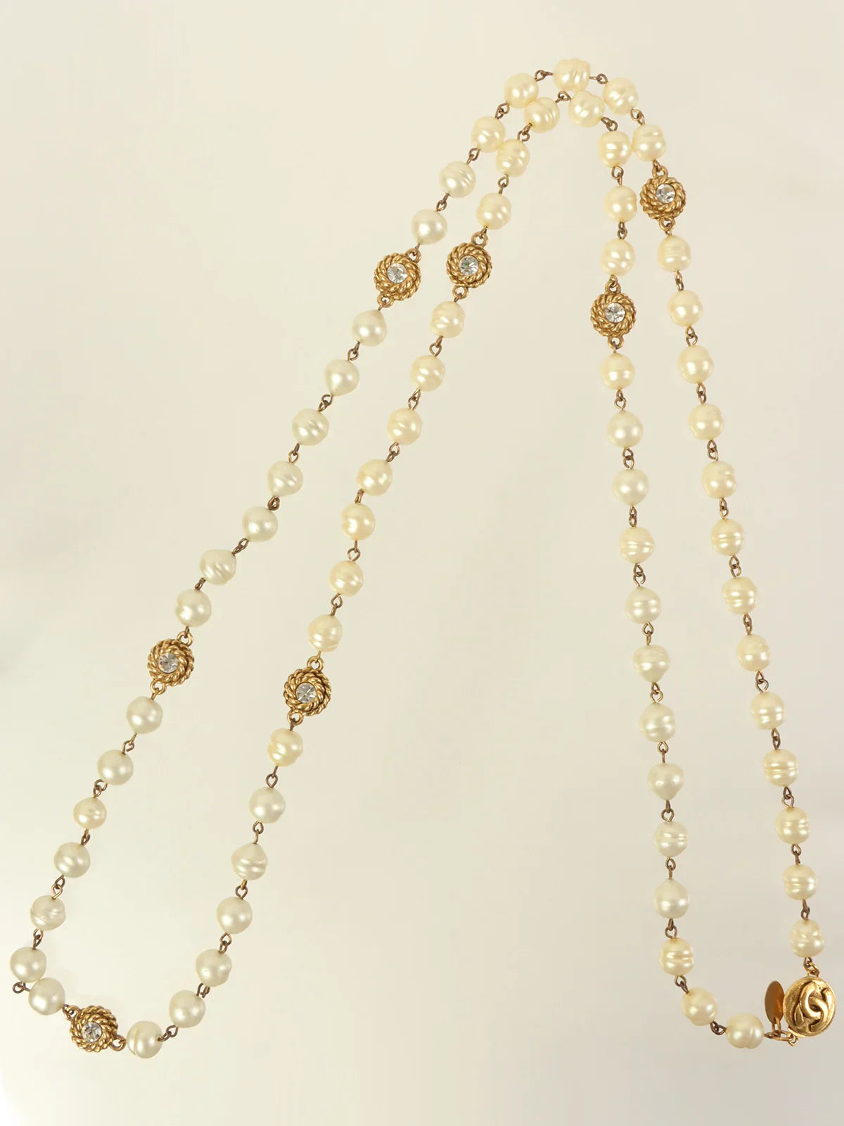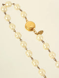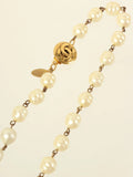 CHANEL Pearl Rhinestone Round Cc Mark Plate Long Necklace Gold/White