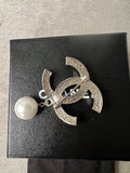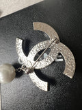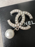 Chanel Pearl Studded CC Brooch with Drop Pearl
