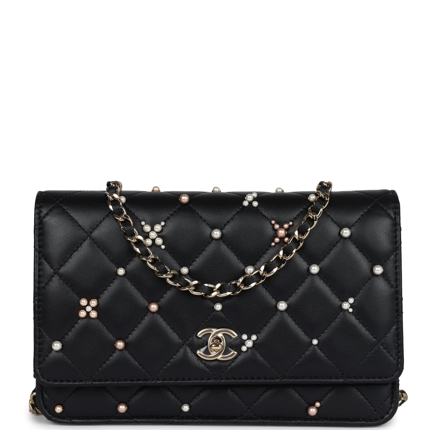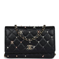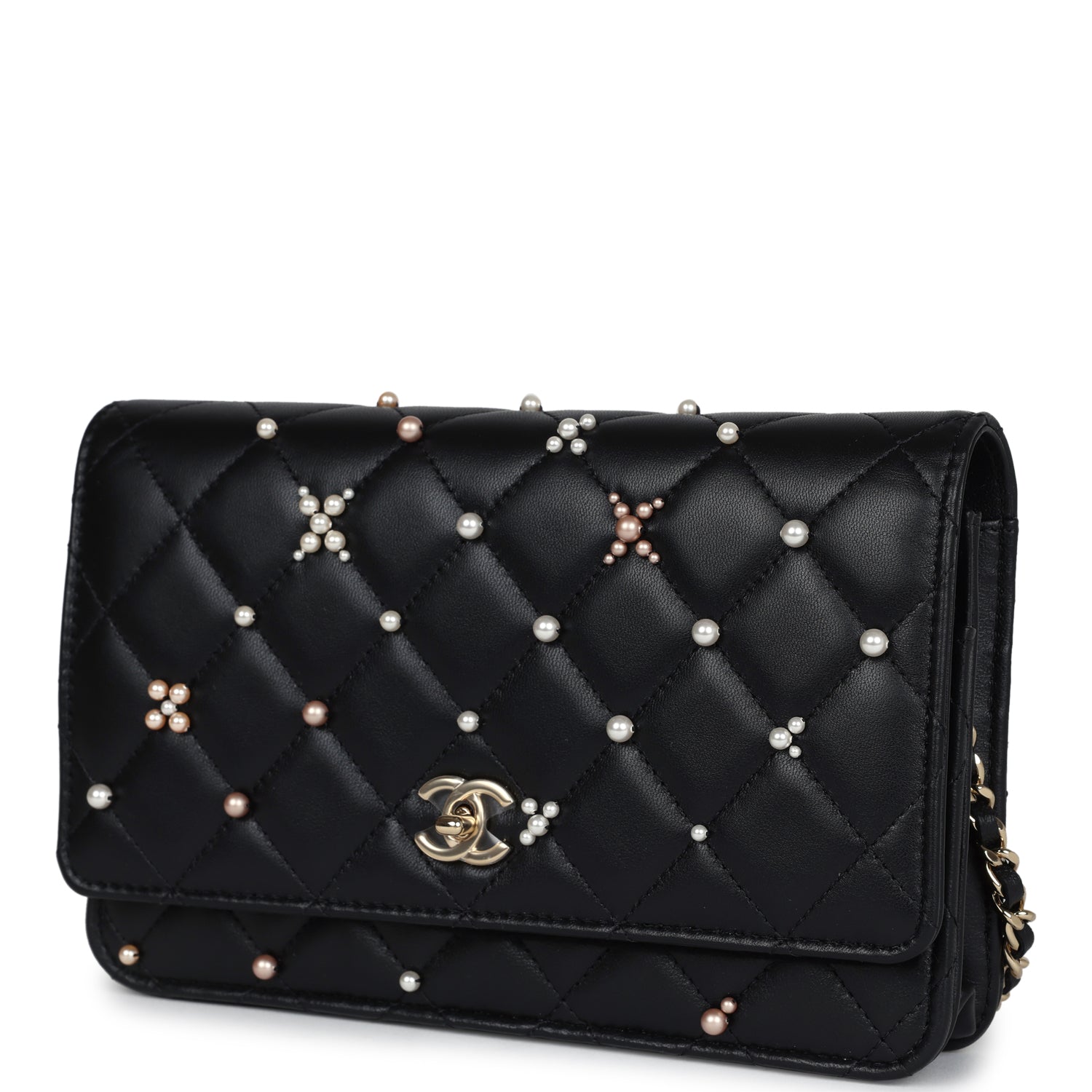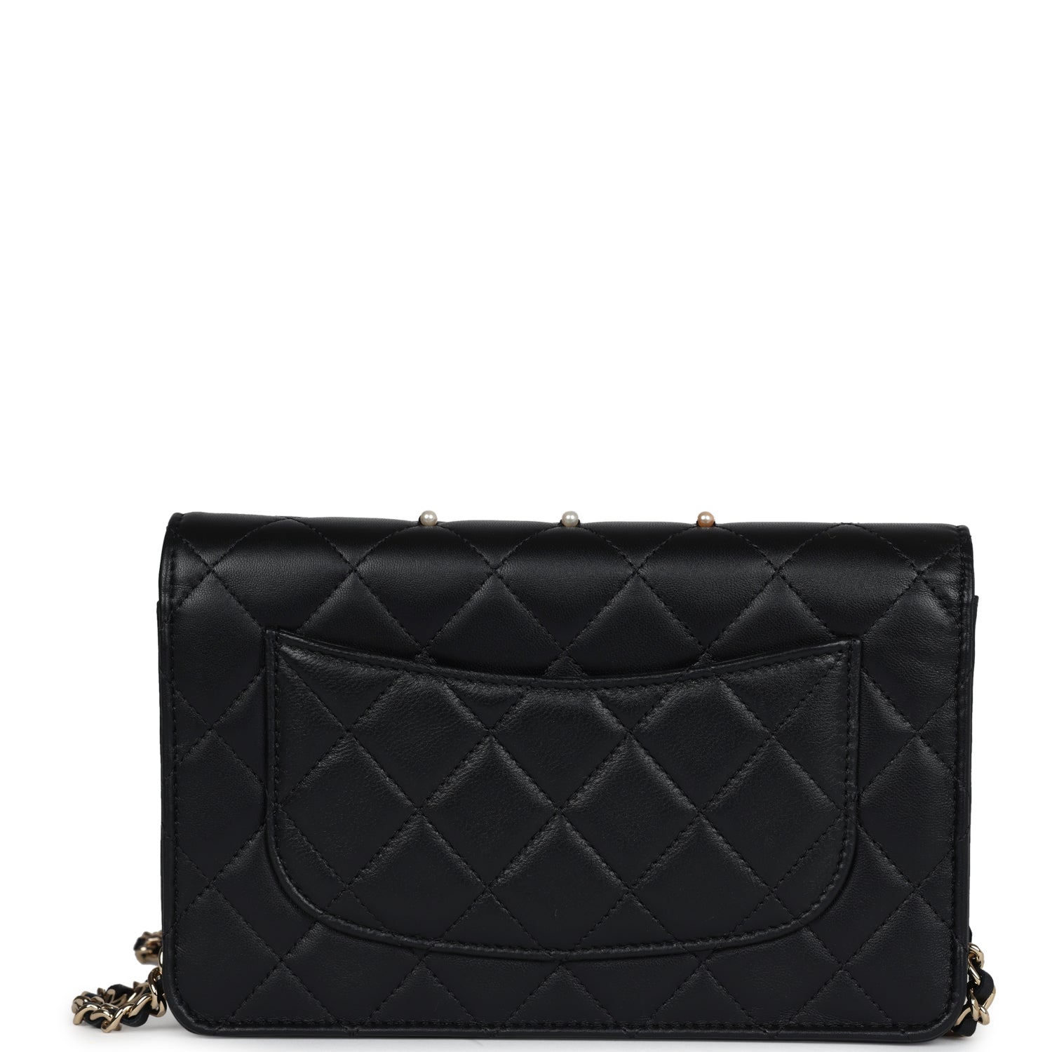 Chanel Pearl Studded Wallet On Chain (WOC) Black Lambskin Light Gold Hardware