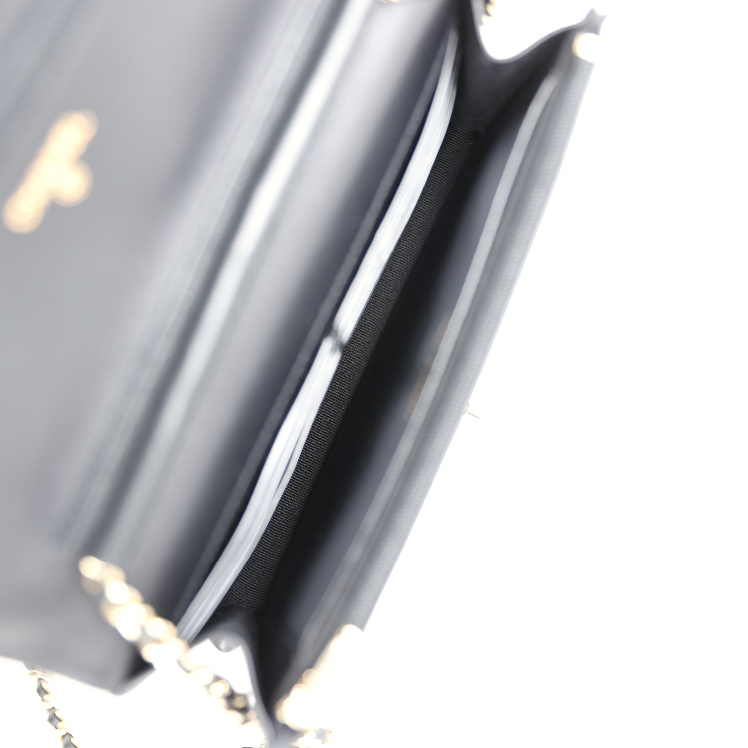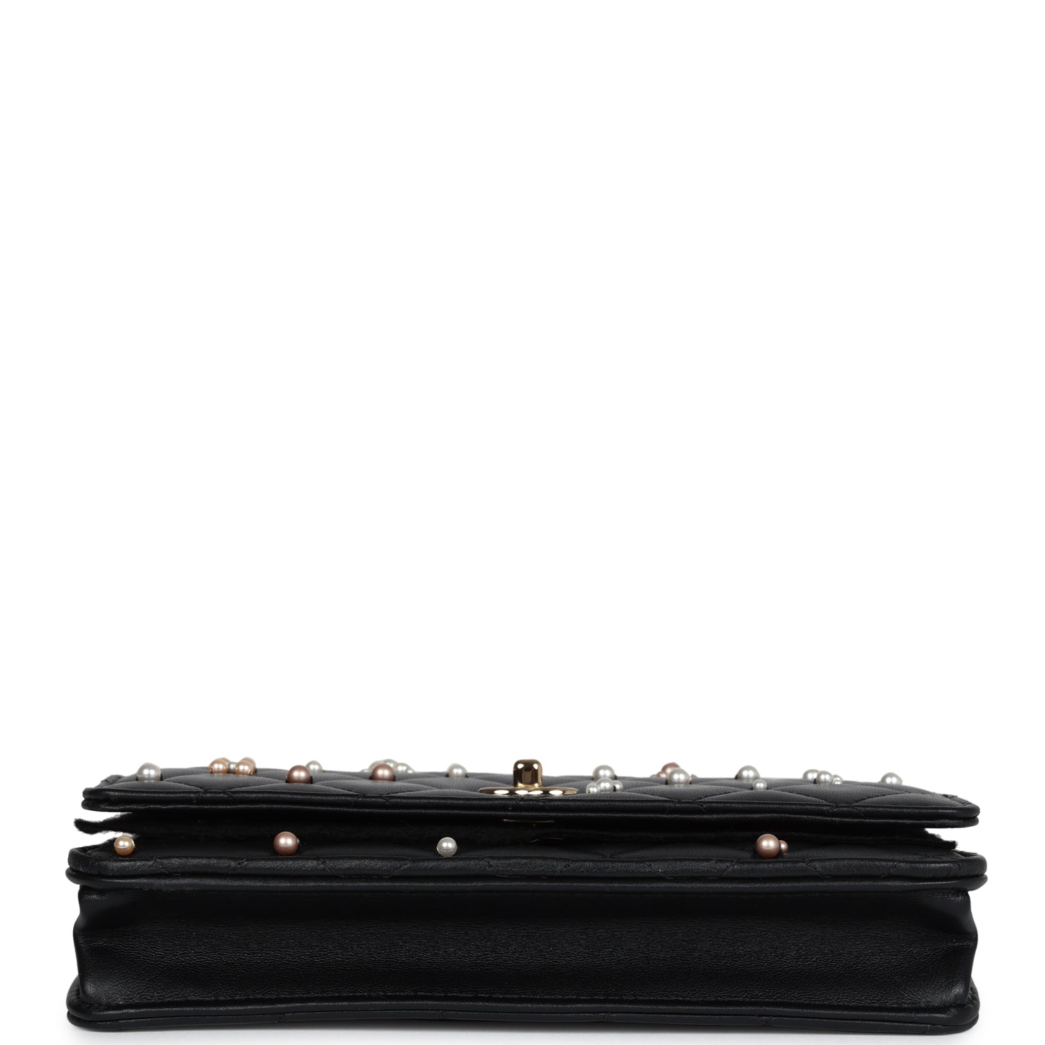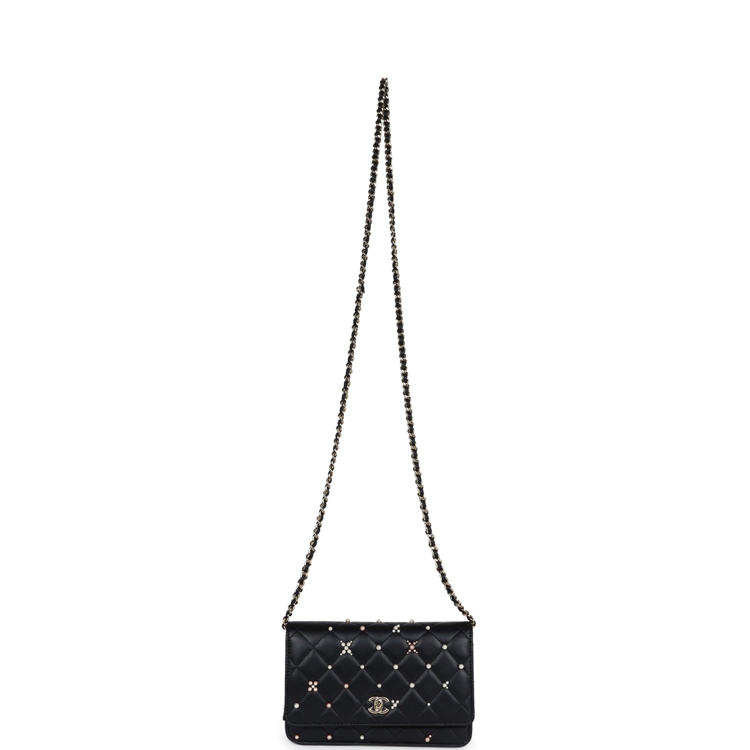 Chanel Pearl Studded Wallet On Chain (WOC) Black Lambskin Light Gold Hardware