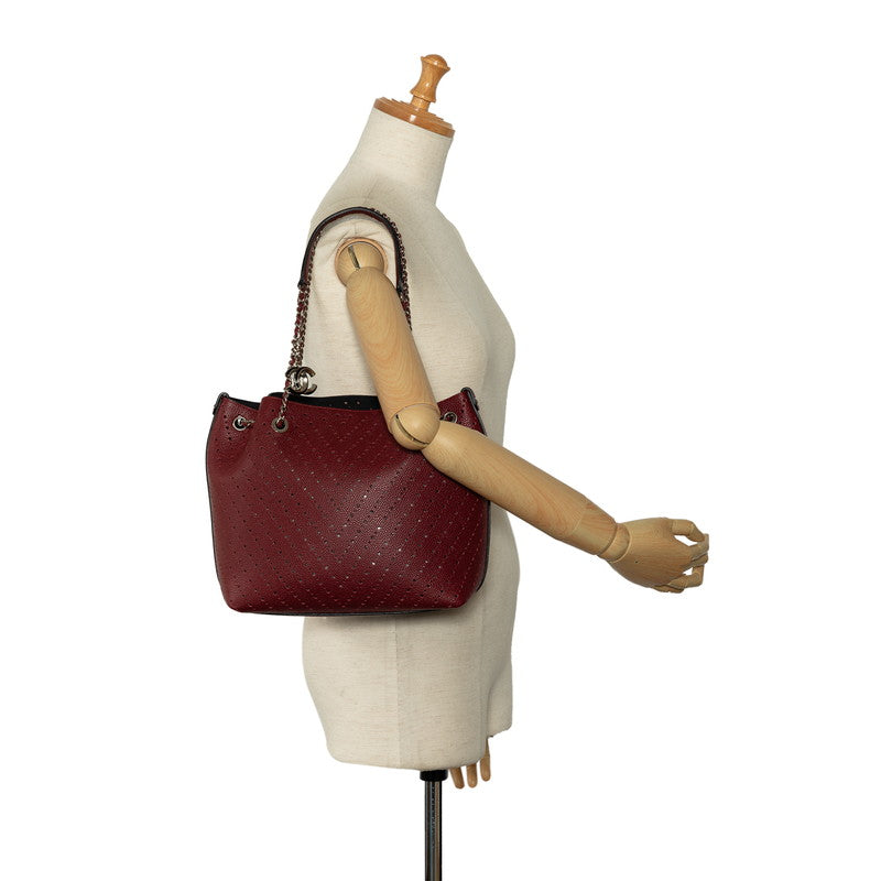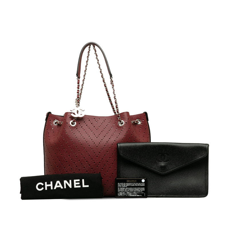 Chanel Perforated Caviar Leather Tote Bag Leather Shoulder Bag in Good condition