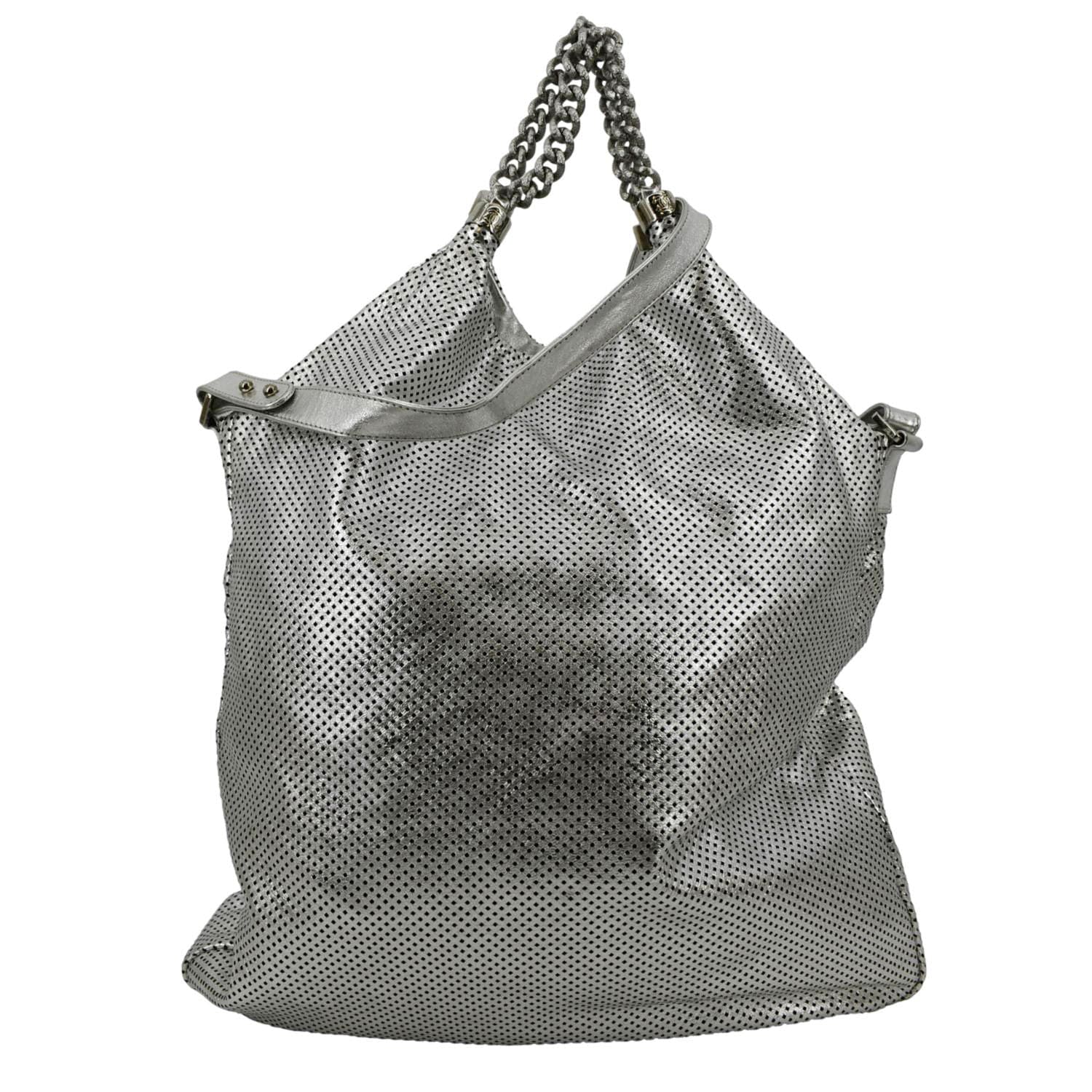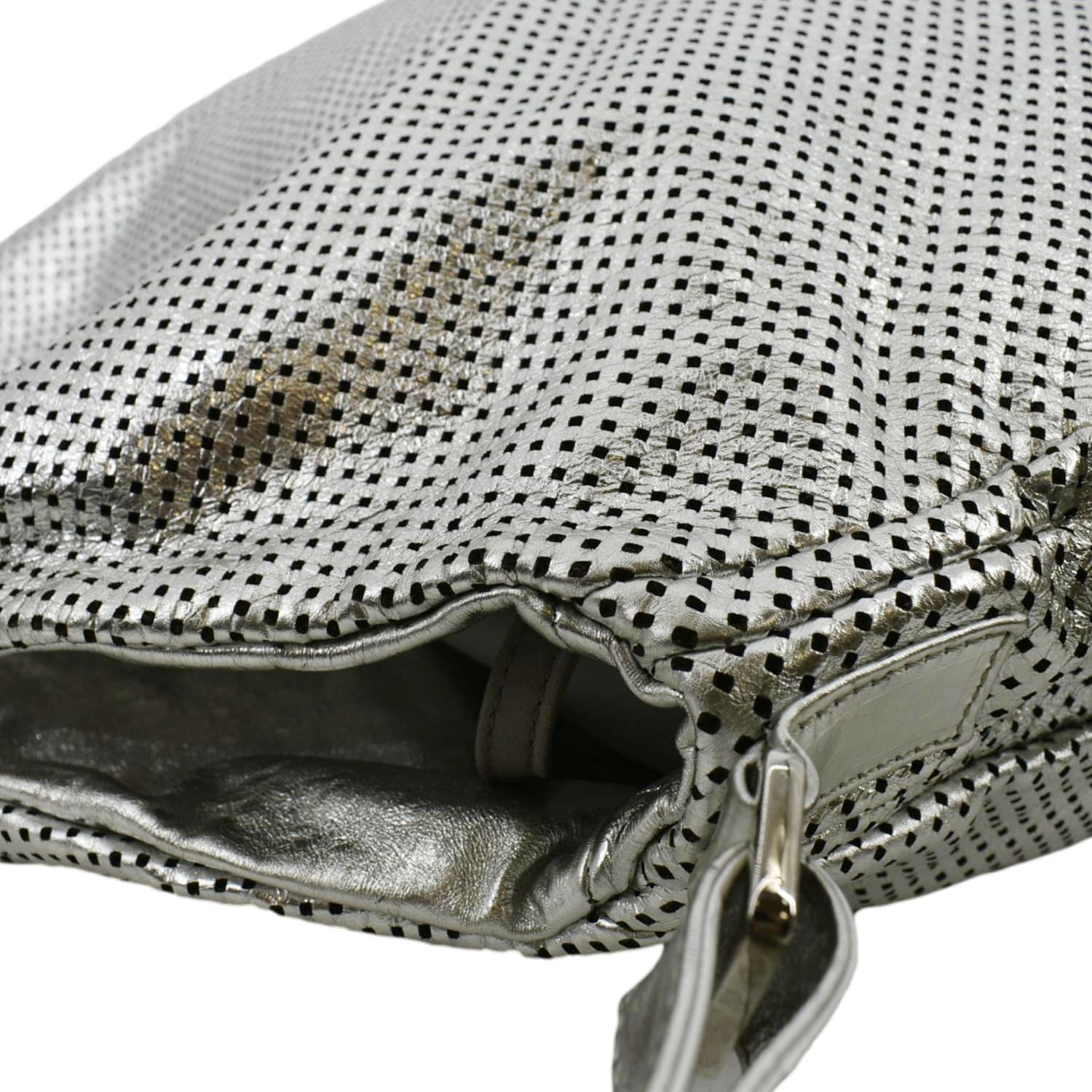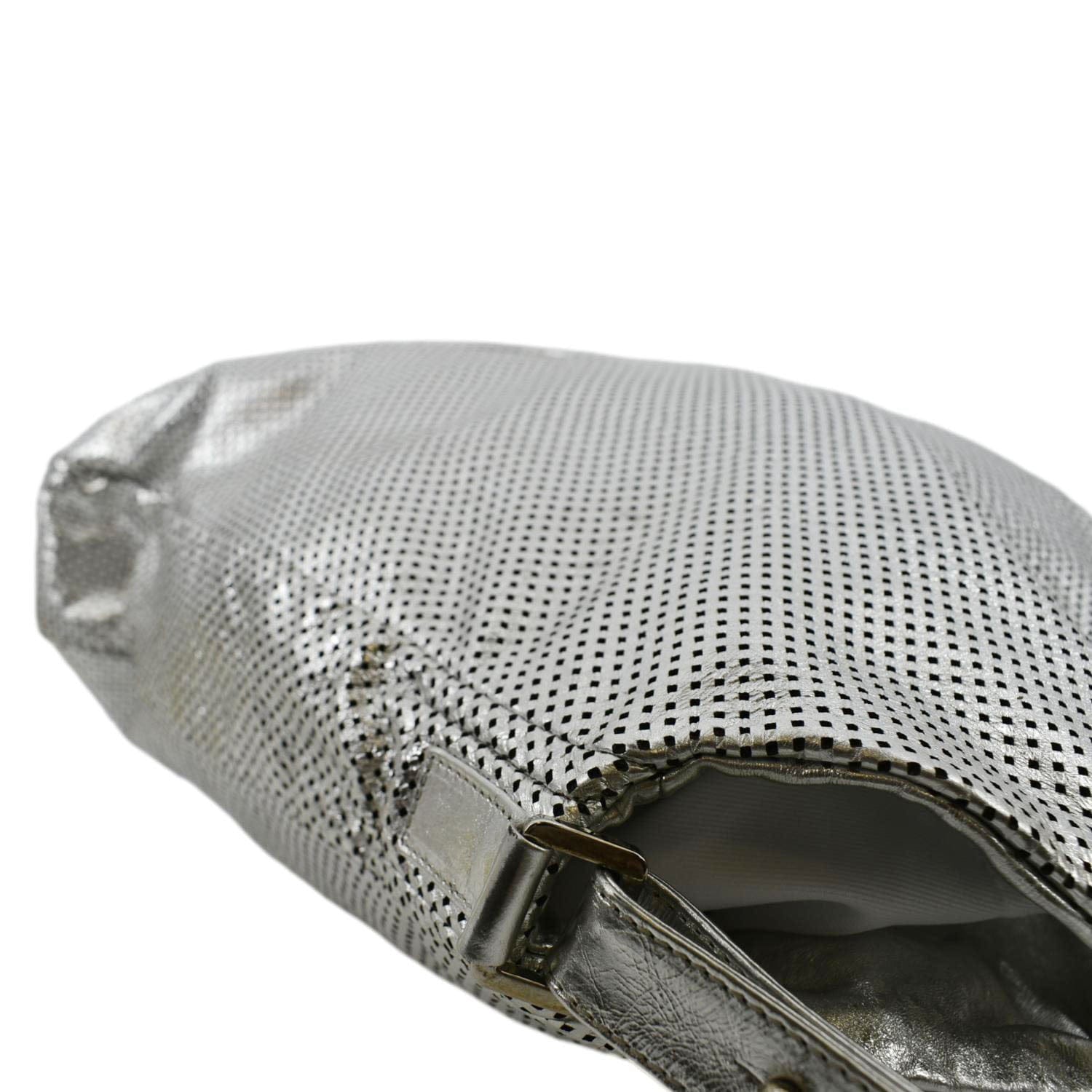 CHANEL Rodeo Drive Perforated Leather Shoulder Bag Metallic Silver