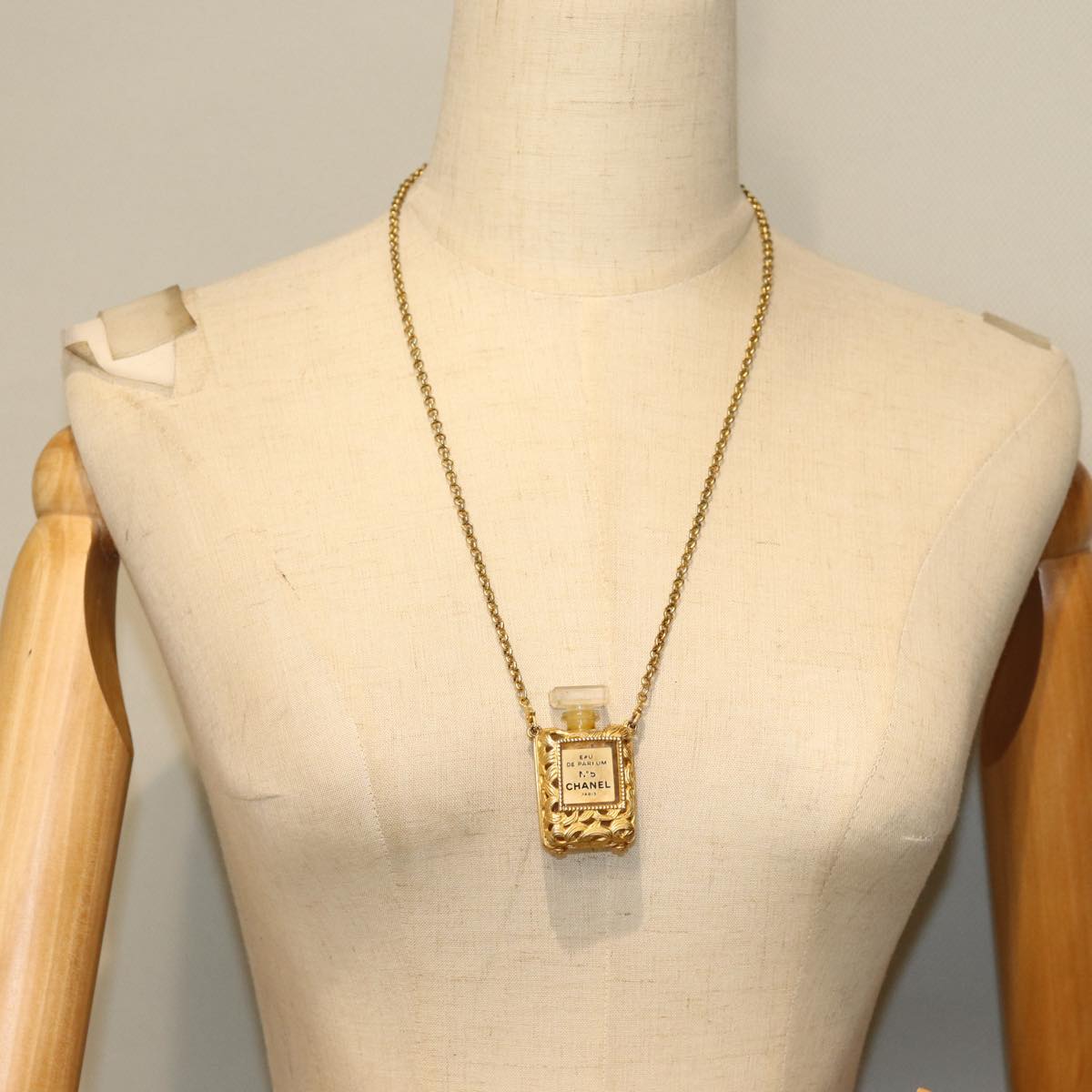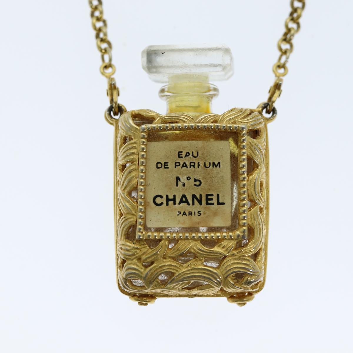 CHANEL Perfume N?‹5 Necklace metal Gold CC Auth bs13939