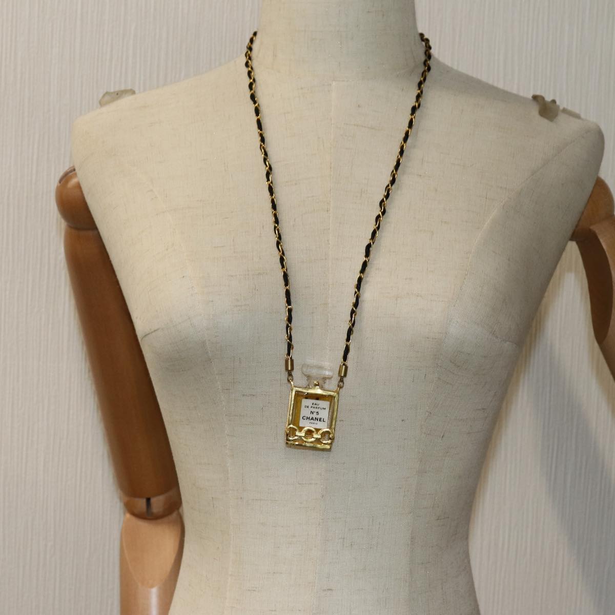 CHANEL perfume Necklace Gold CC Auth ar11598B