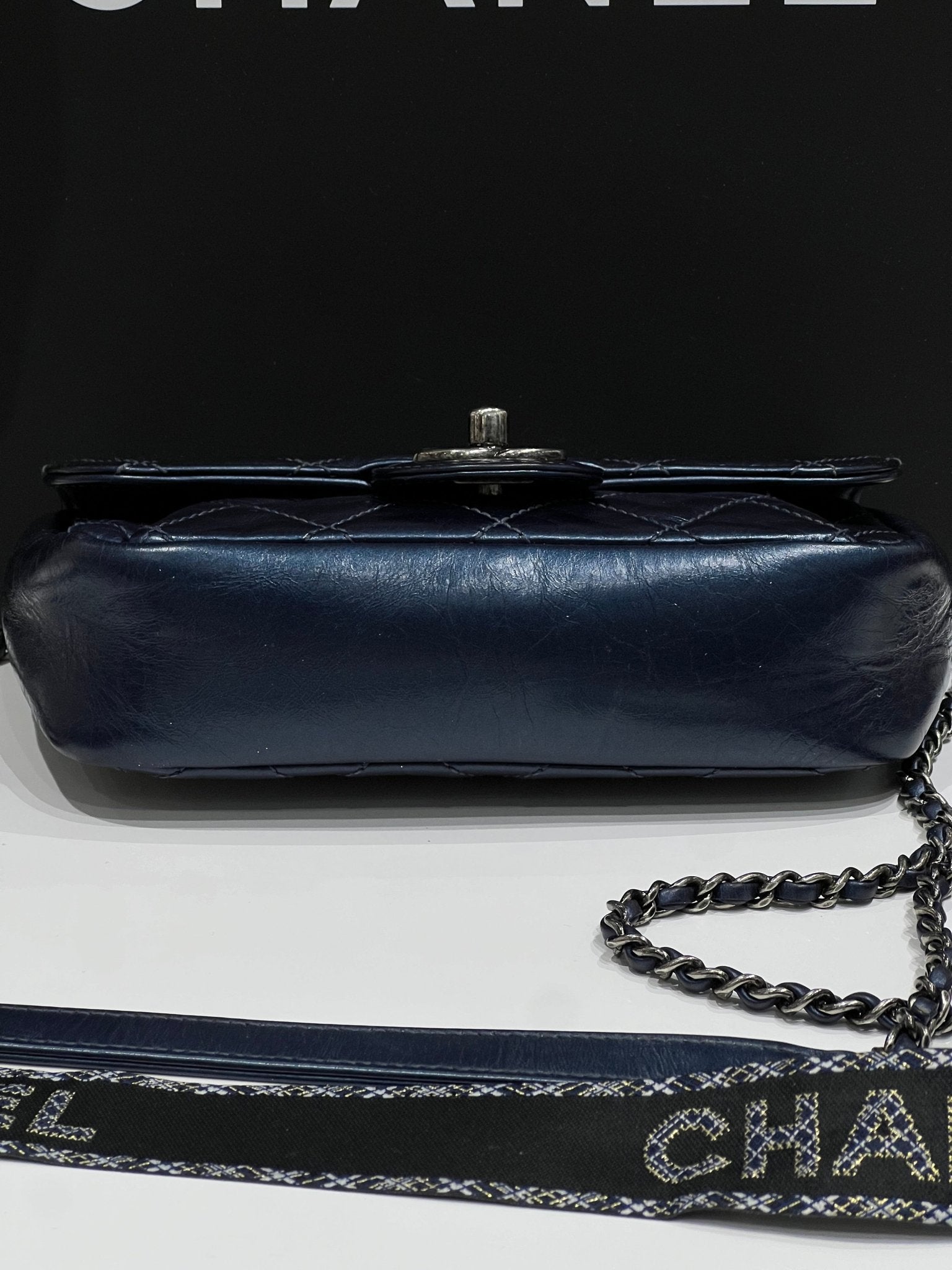 Ce petit sac à Rabat est d’un bleu nuit irisé, offrant une touche d’élégance. Sa belle chaîne et son accastillage ruthénium ajoutent une note raffinée à son design. Compact et chic, il s’adapte tant en journée en tenue sport chic qu’en soirée. Peut se porter crossbody ou épaule simple ou double chaîne.