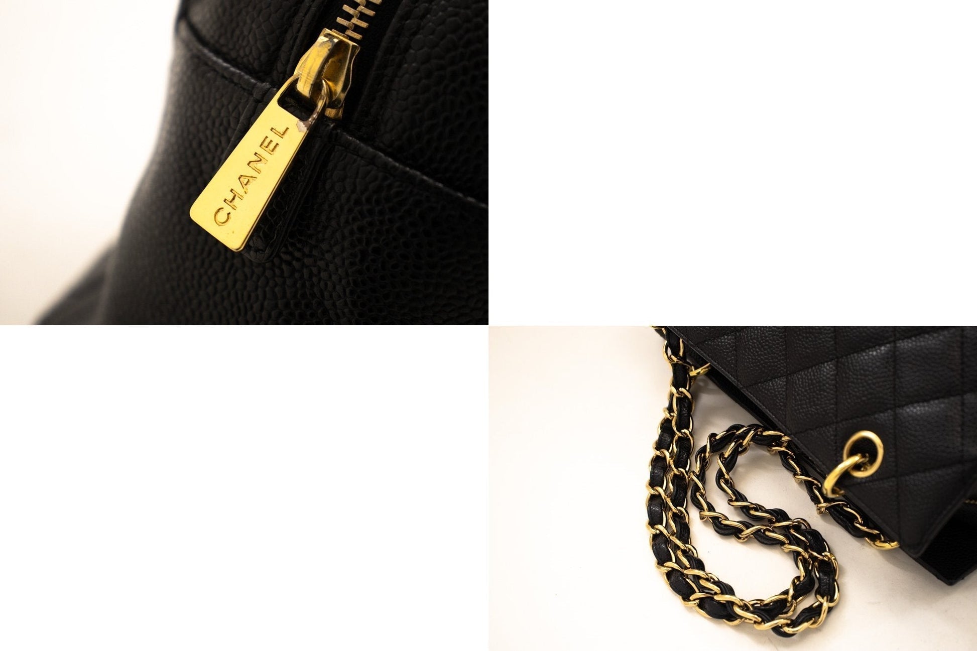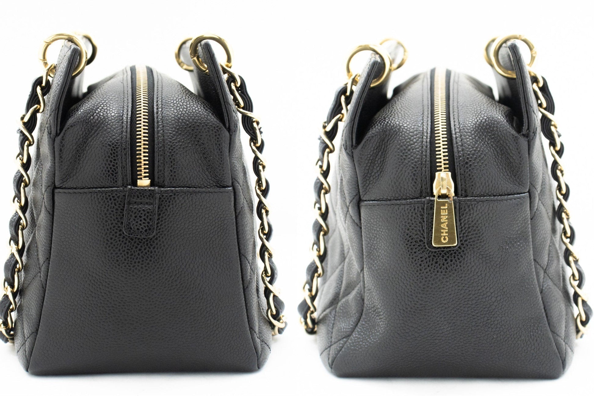 The exterior of the item is in excellent condition with minimal signs of use. The interior is also excellent and very clean. All chains and hardware are in excellent condition.