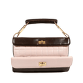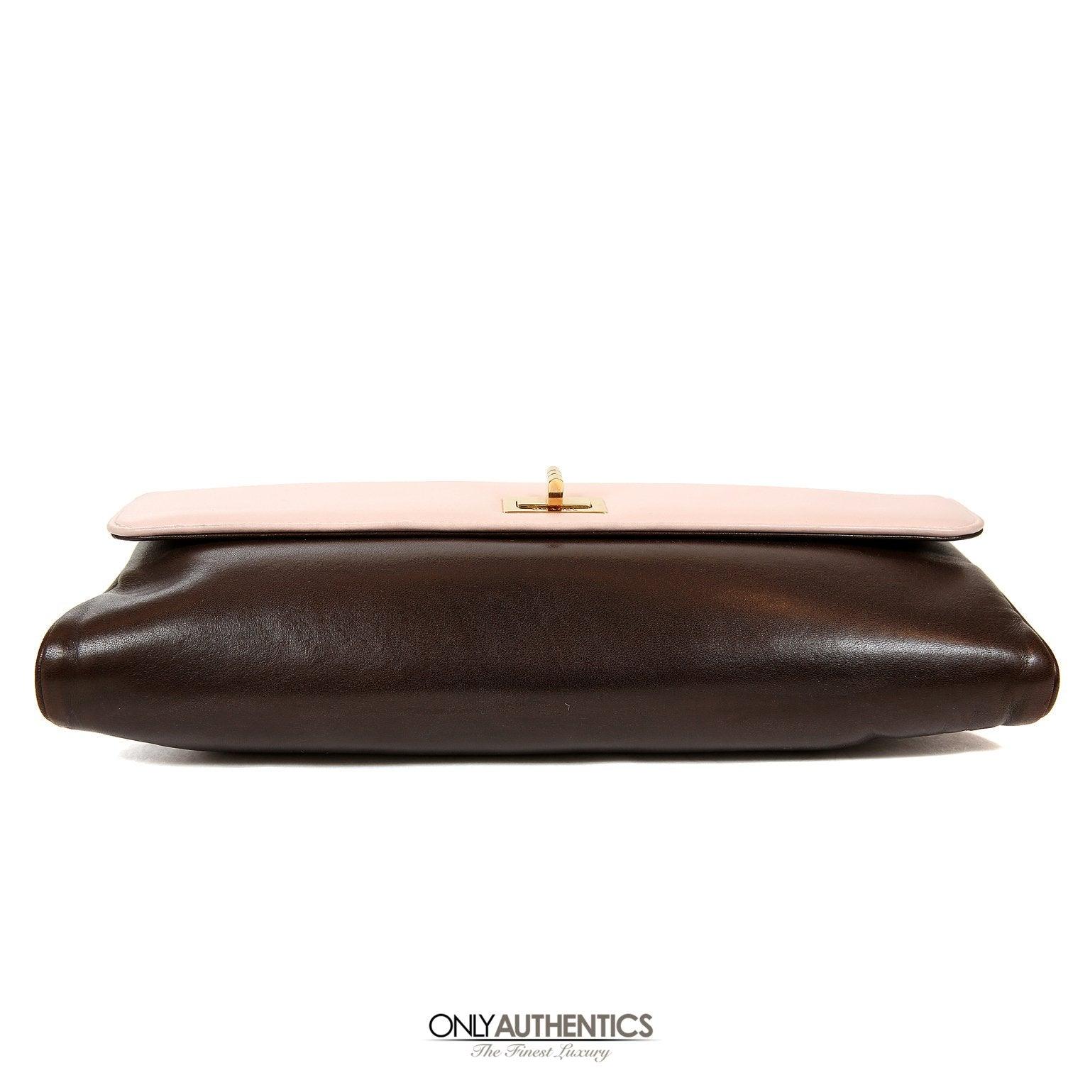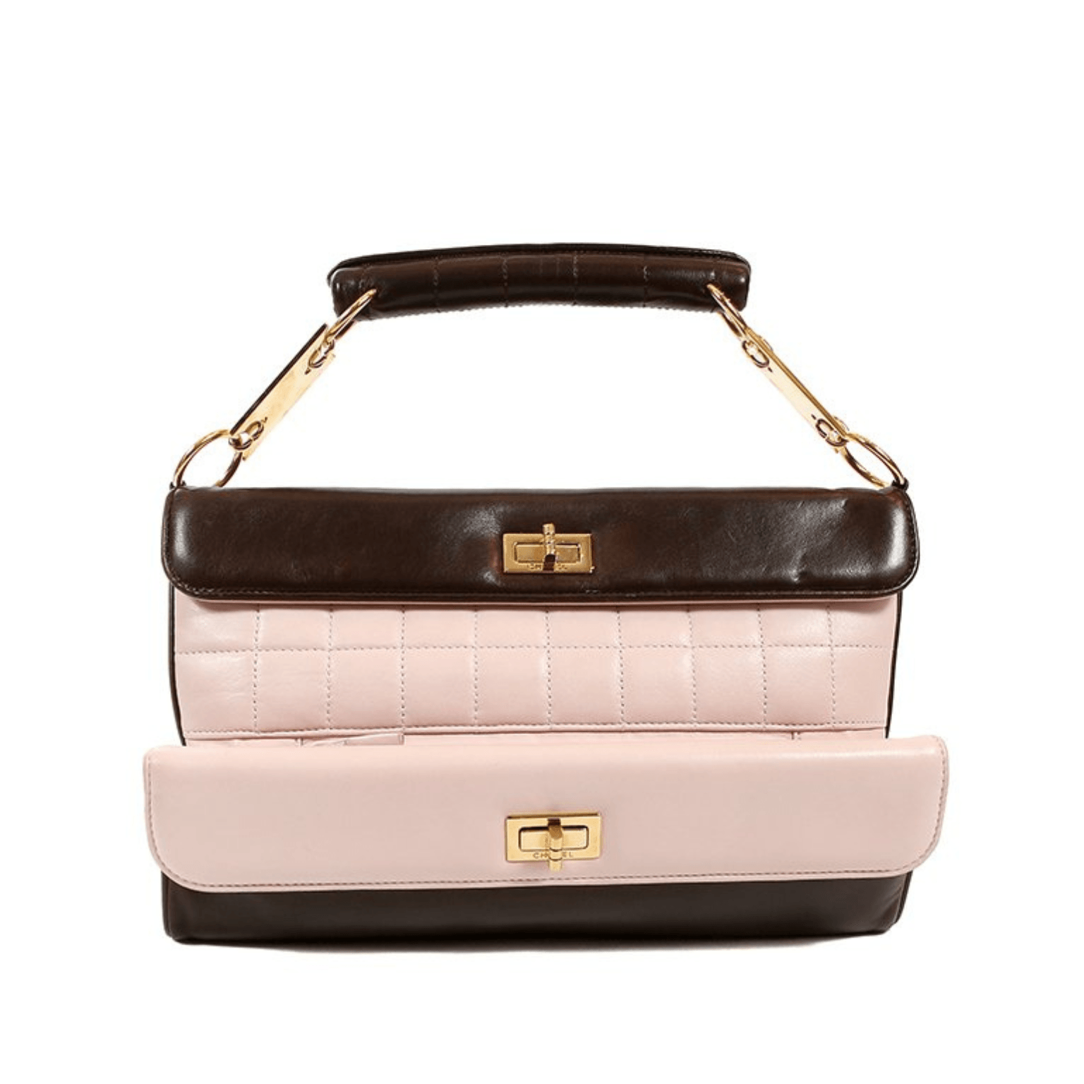 This Chanel Pink and Brown Leather Handle Clutch is a very unique piece in pristine condition. Two tone coloration, two separate flap closures, chocolate bar stitching and mademoiselle twist locks set this collectible style apart.