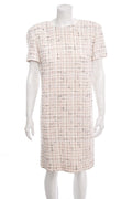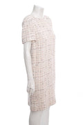 Chanel Pink and White Short Sleeve Tweed Dress SZ 42