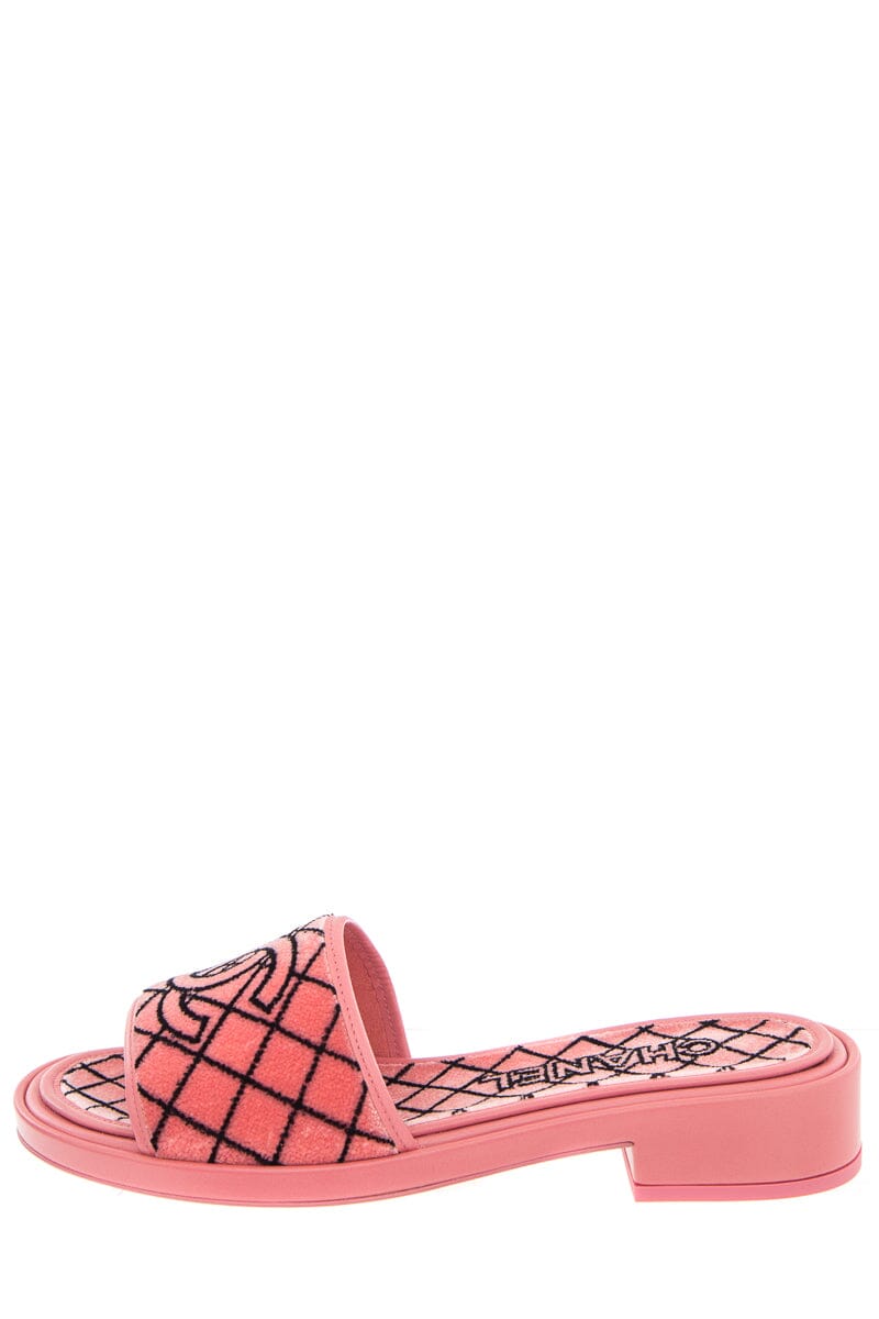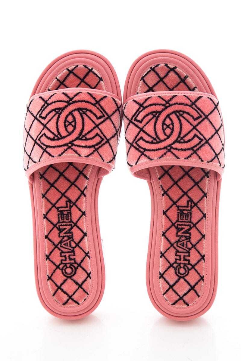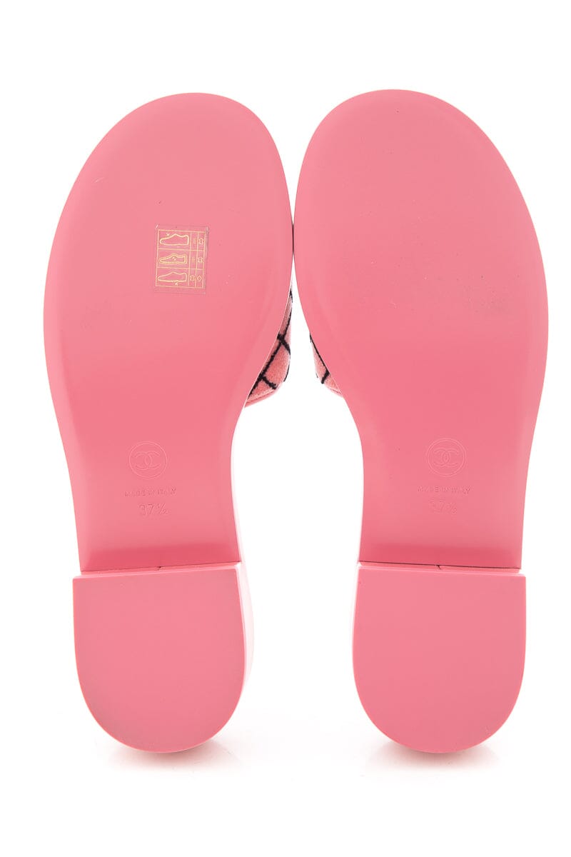 Chanel Pink & Black Velvet Fur CC Mule Sandals SZ 37.5 NWT
