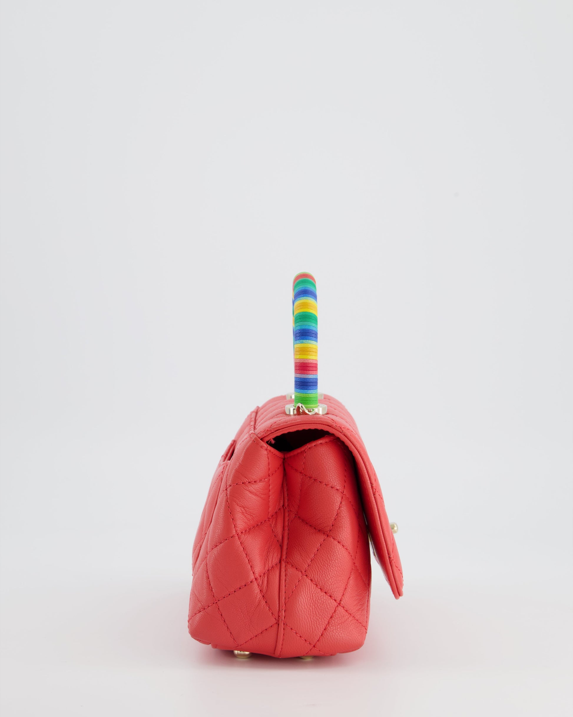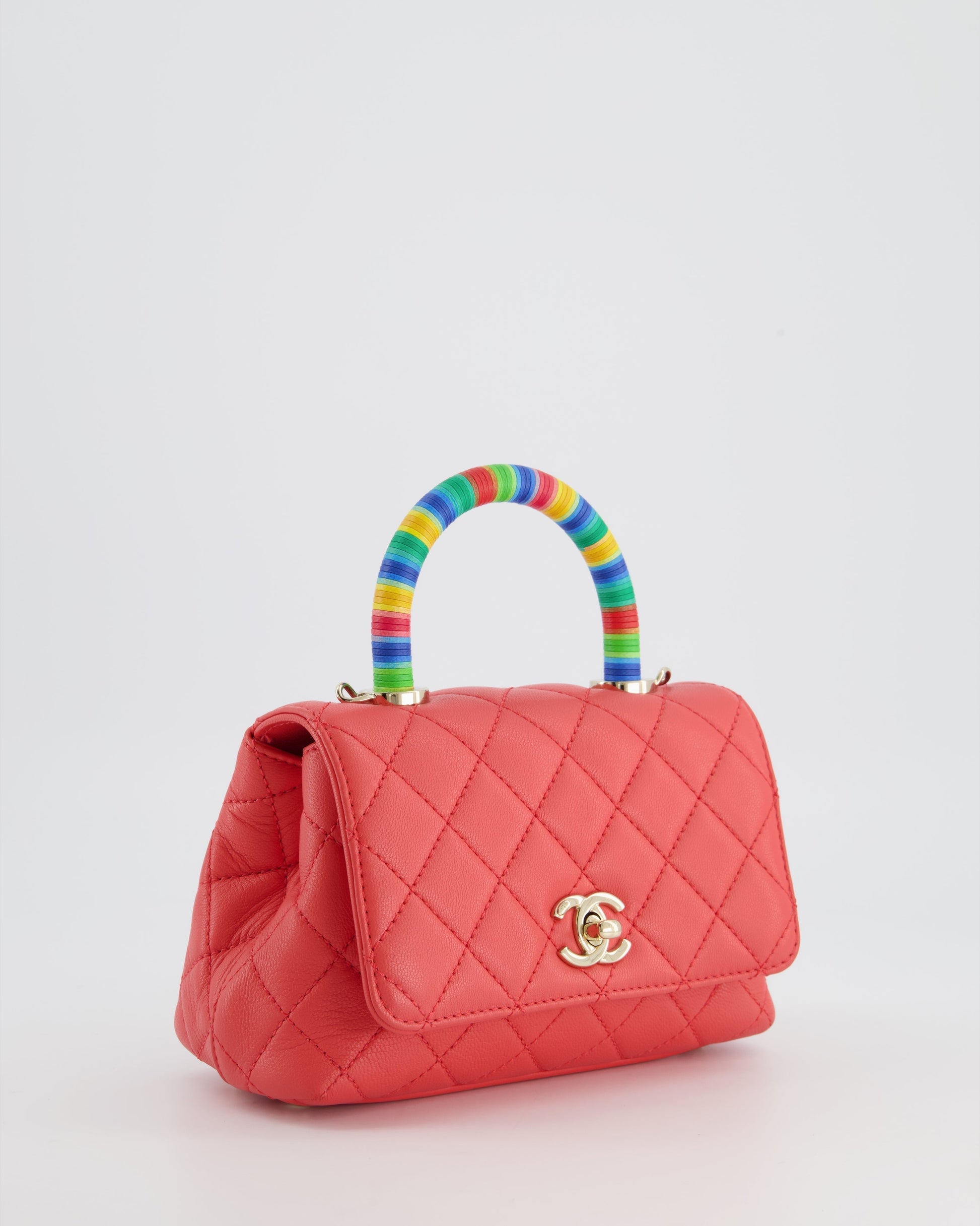 Chanel Pink Extra Mini Coco Multi-Colour Handle Bag in Lambskin with Champagne Gold Hardware