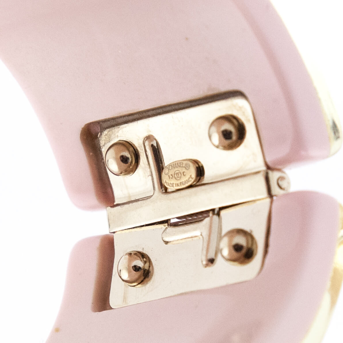 Note: Our Items are totally New High quality Brand Inspired Refurbished. Please make sure you are well aware of it before buying any of the Item. T&C's Apply in case of refunds.Please send us message on below chat to confirm availability. We will send the Refurbished Model in case you place an order with us. Enjoy Shopping.Always Send Us message to confirm availability before buying, In case of refund the transaction fee remains non refundable. Thank you. A powder pink interior peeks out at the sides, offering a pop of enhanced color. Easy to wear, this Chanel bracelet comes equipped with a hidden magnetic closure and hinge. Style this pristine Chanel cuff with a little white dress this summer to add some delicate impact!