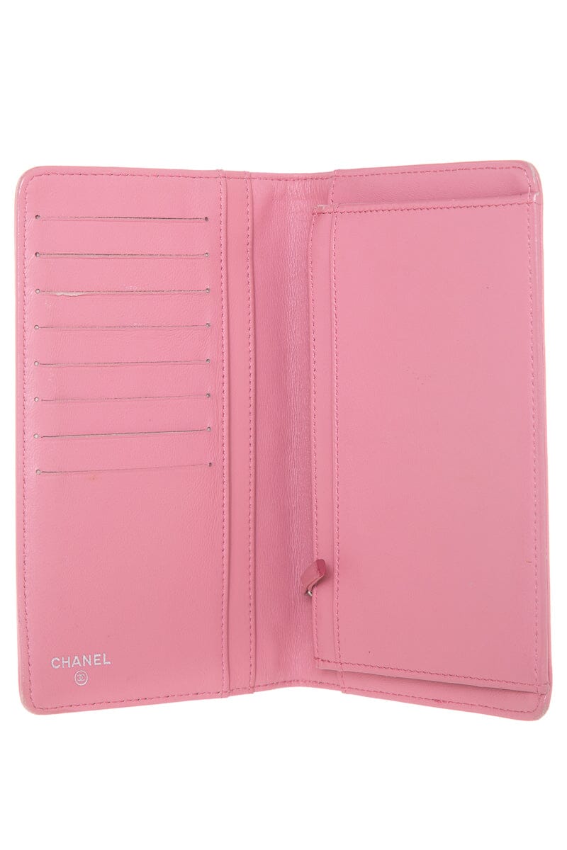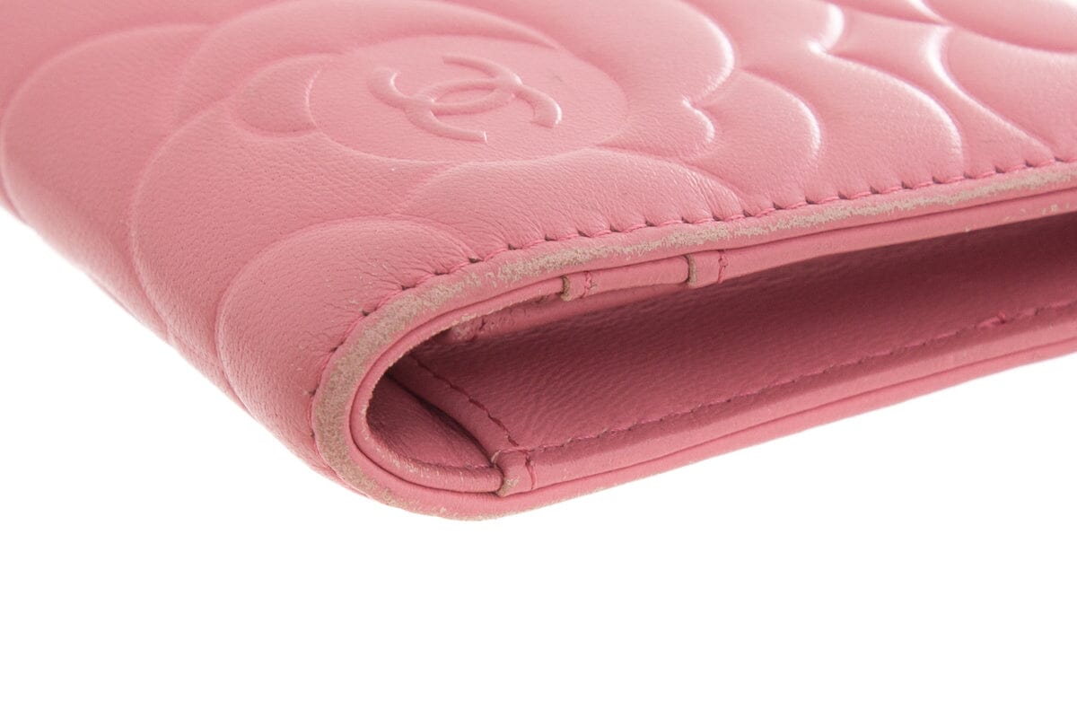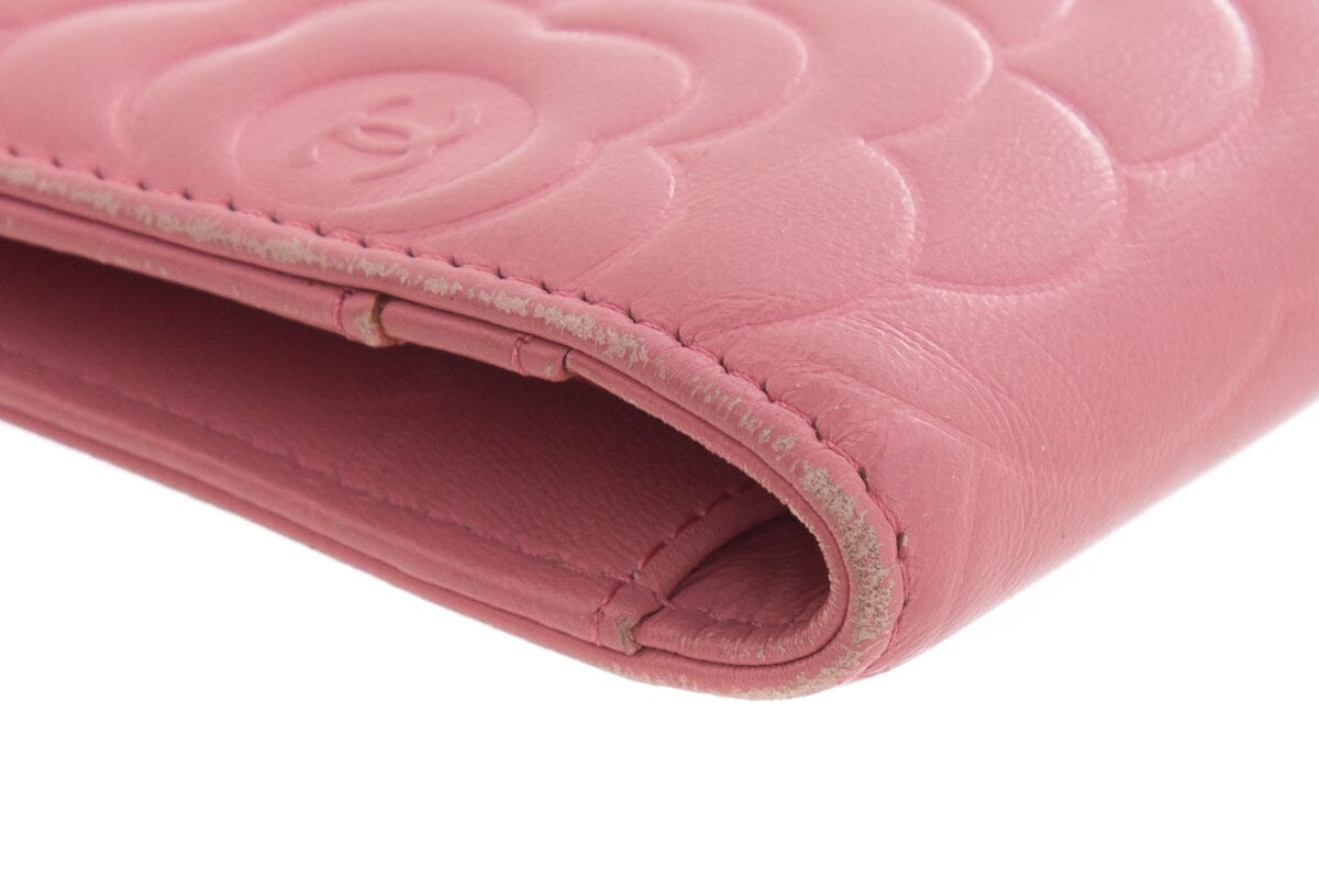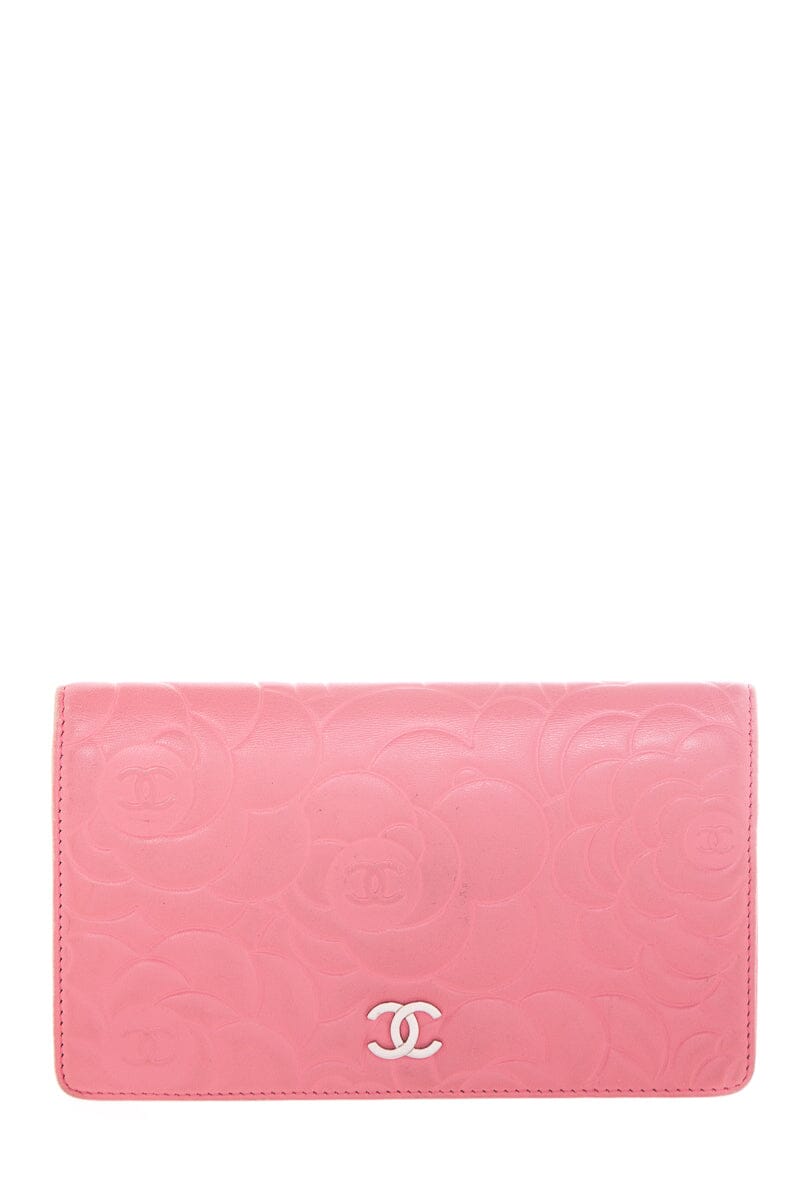 Chanel Pink Leather Camellia Embossed Long Wallet