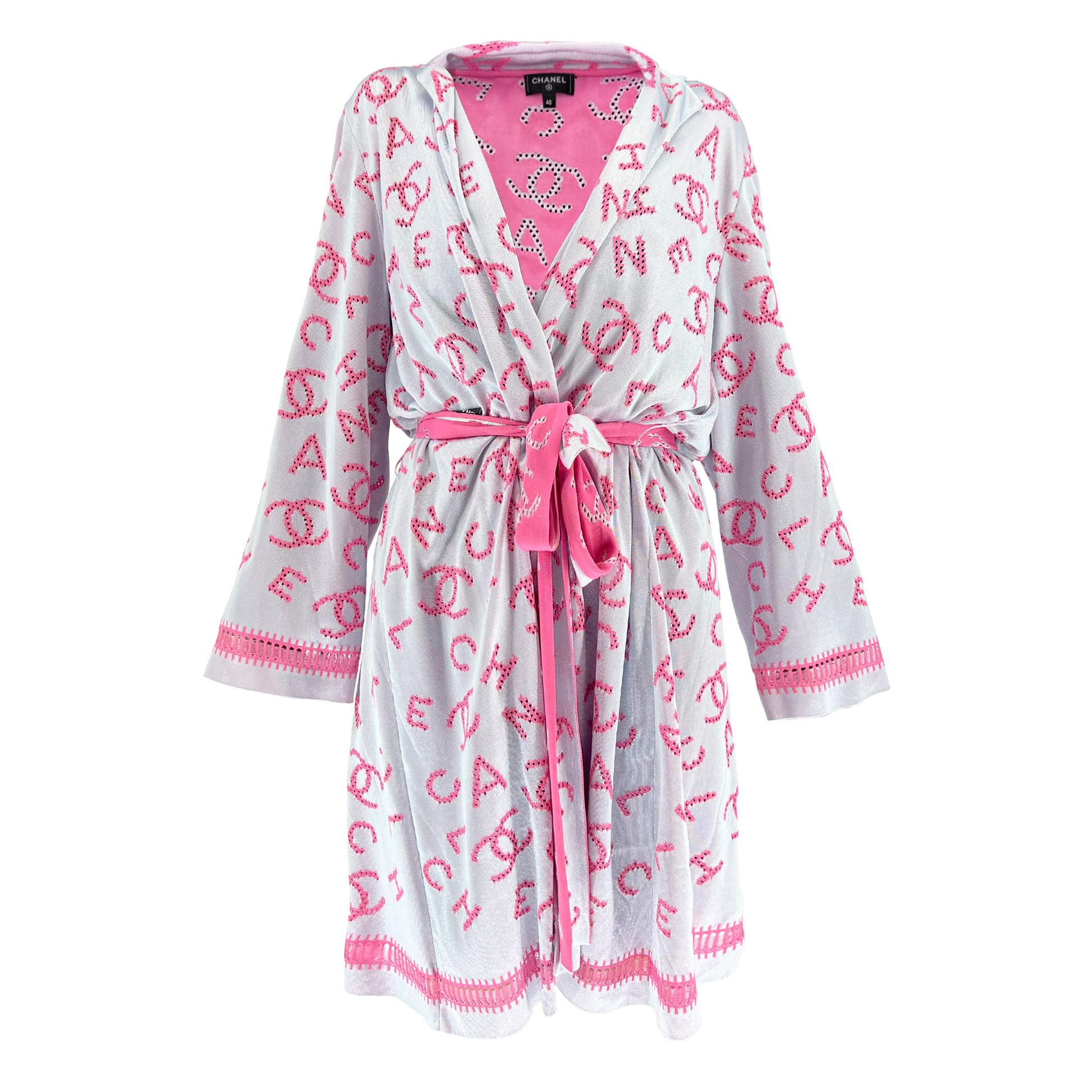 Chanel kimono featuring Chanel logo all over in pink with baby blue , it can be open or tied up with belt.