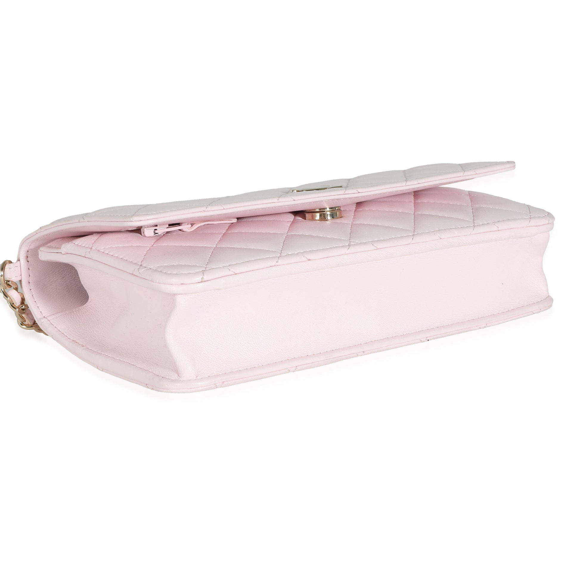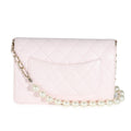 CHANEL Pink Quilted Lambskin Pearl Wallet On Chain