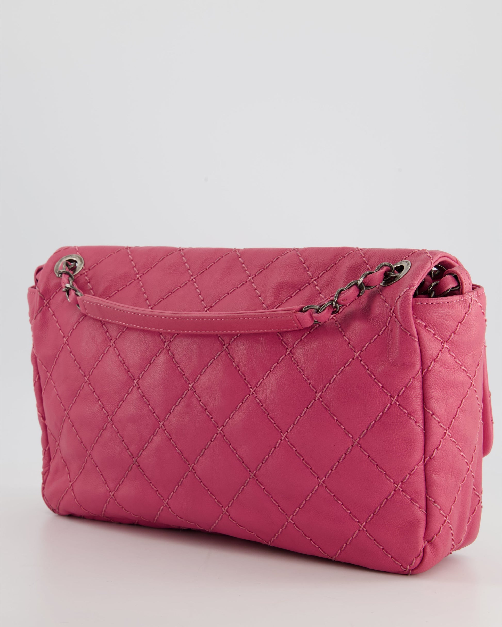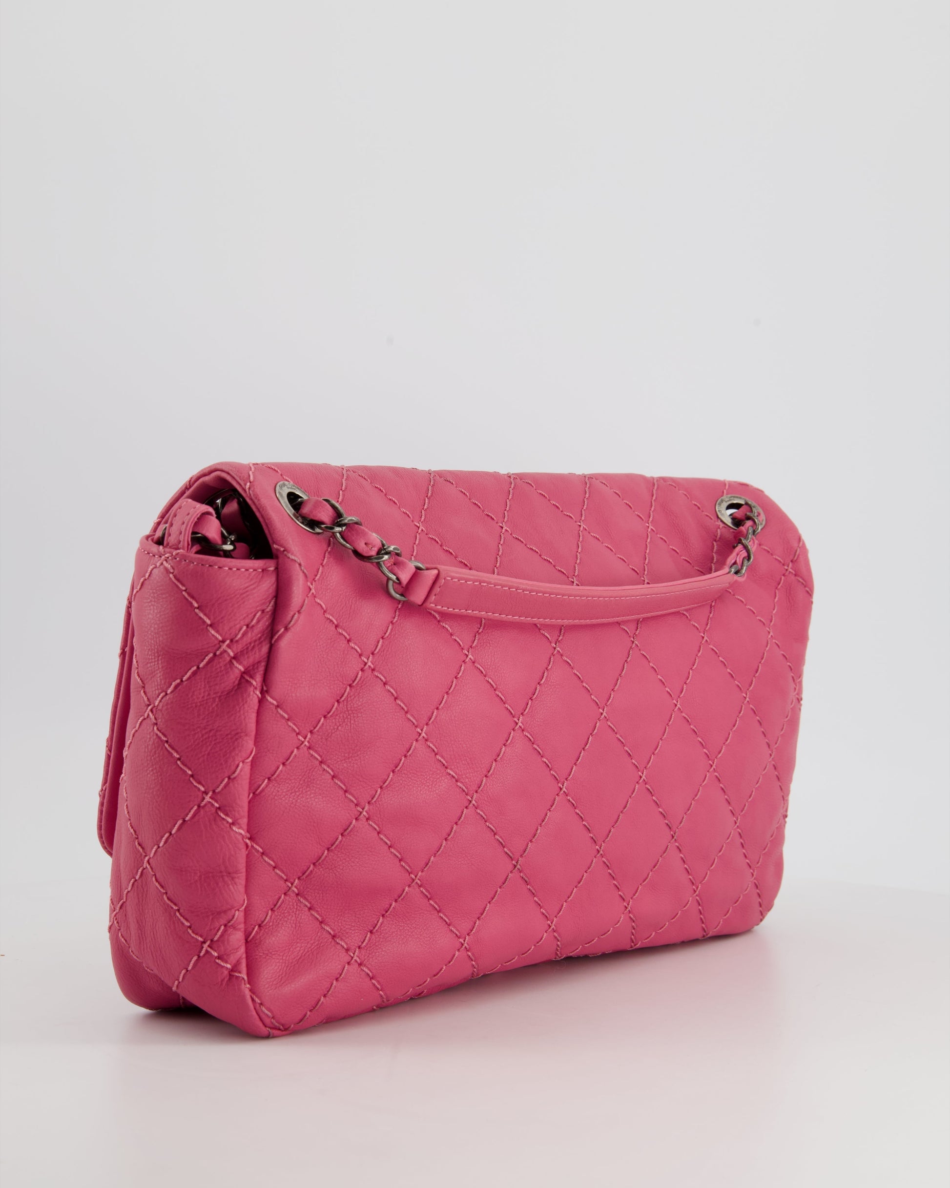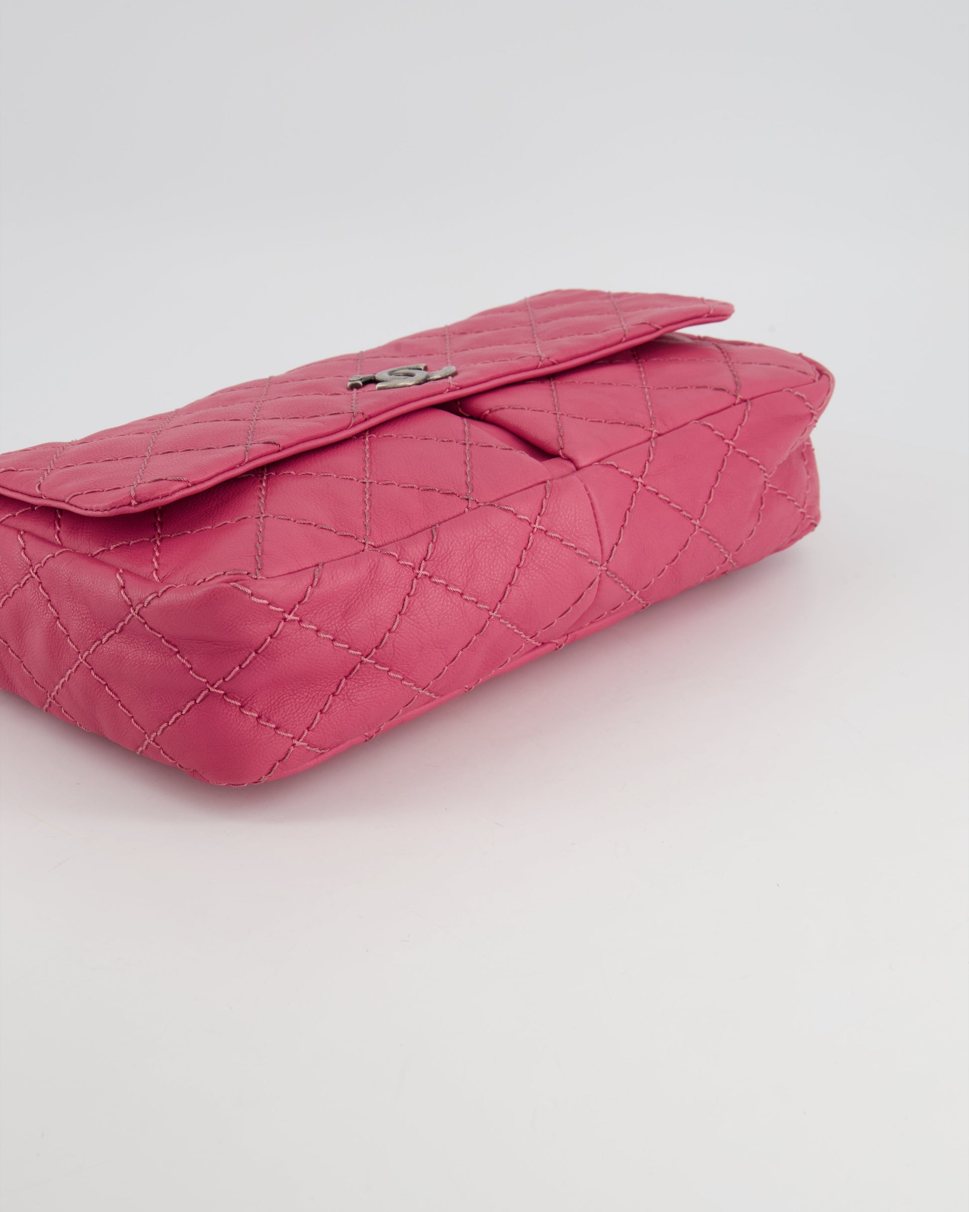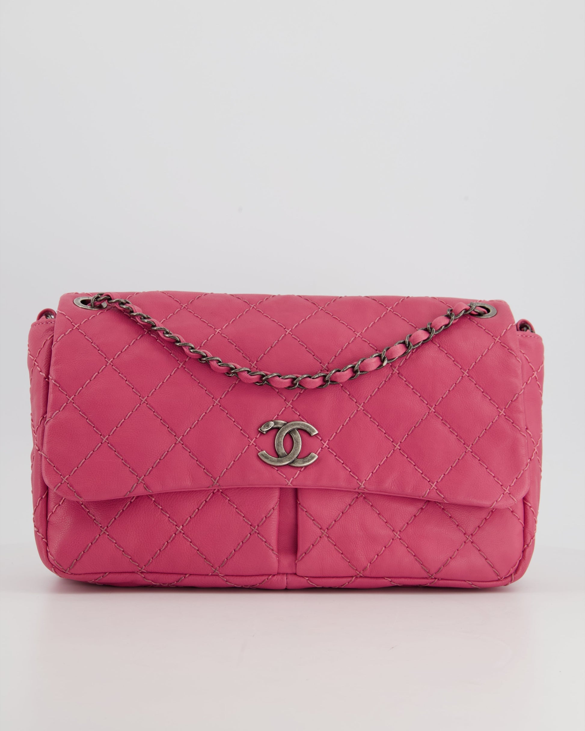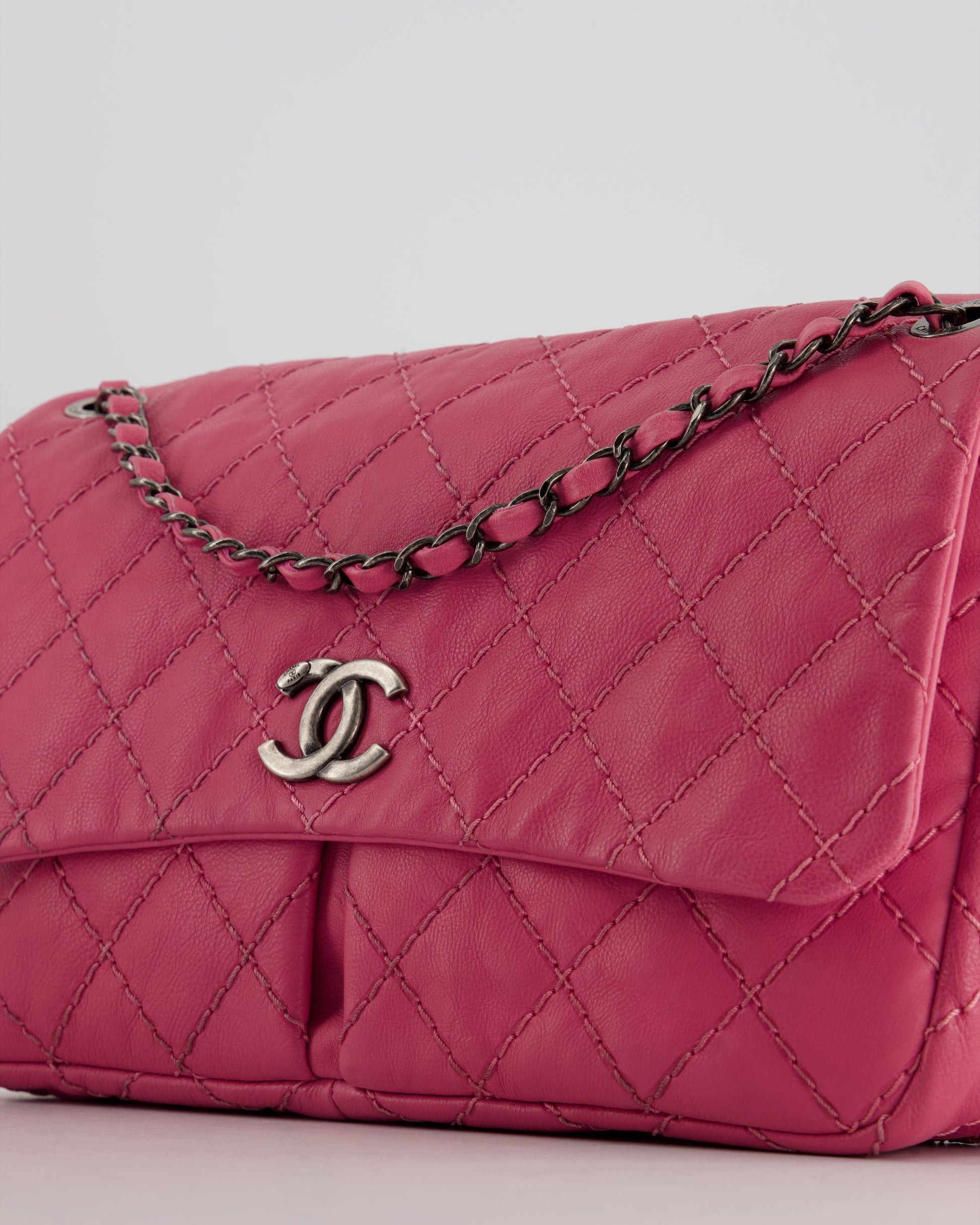 Chanel Pink Split Pocket Flap Bag with Stitched Detailing