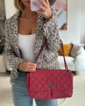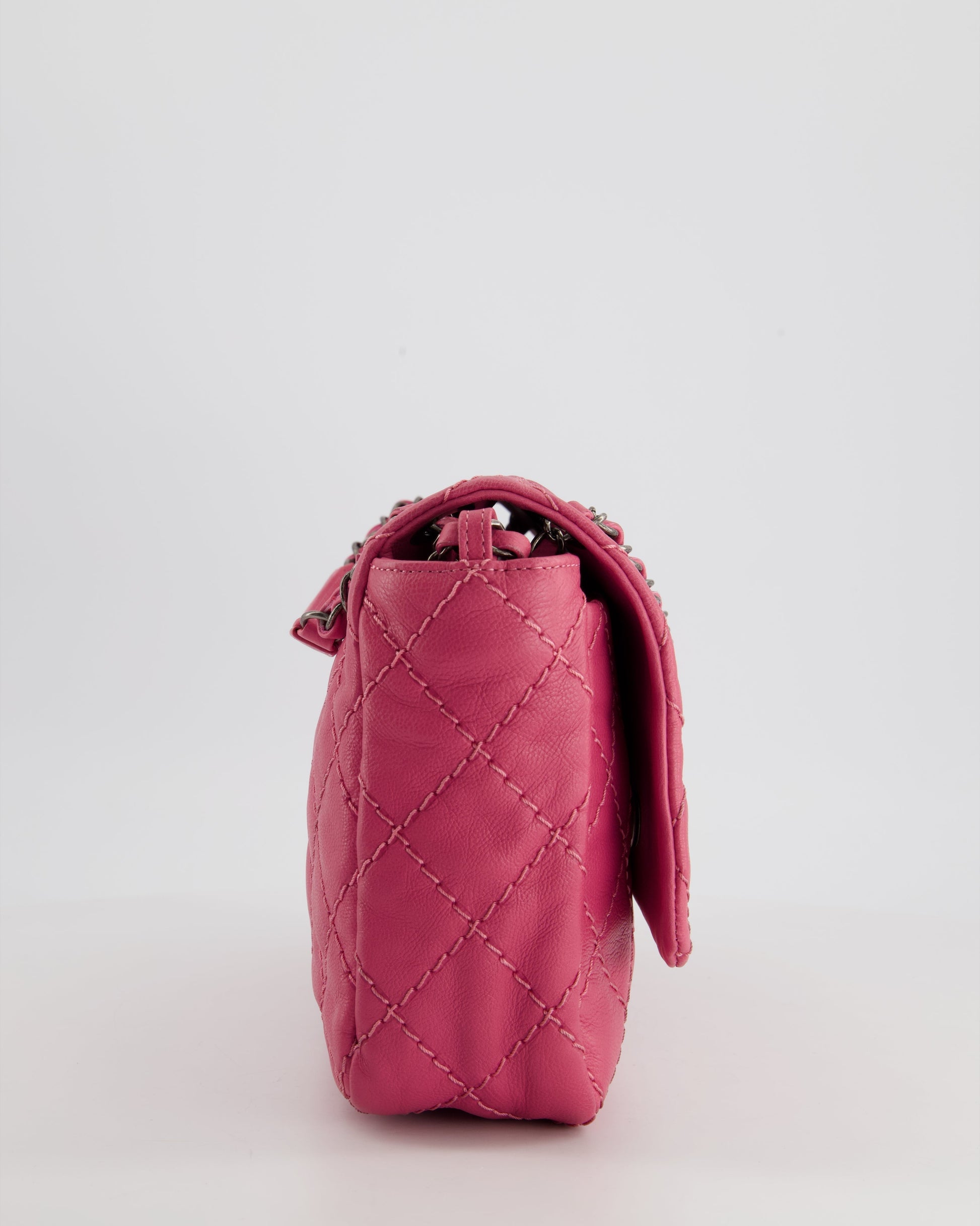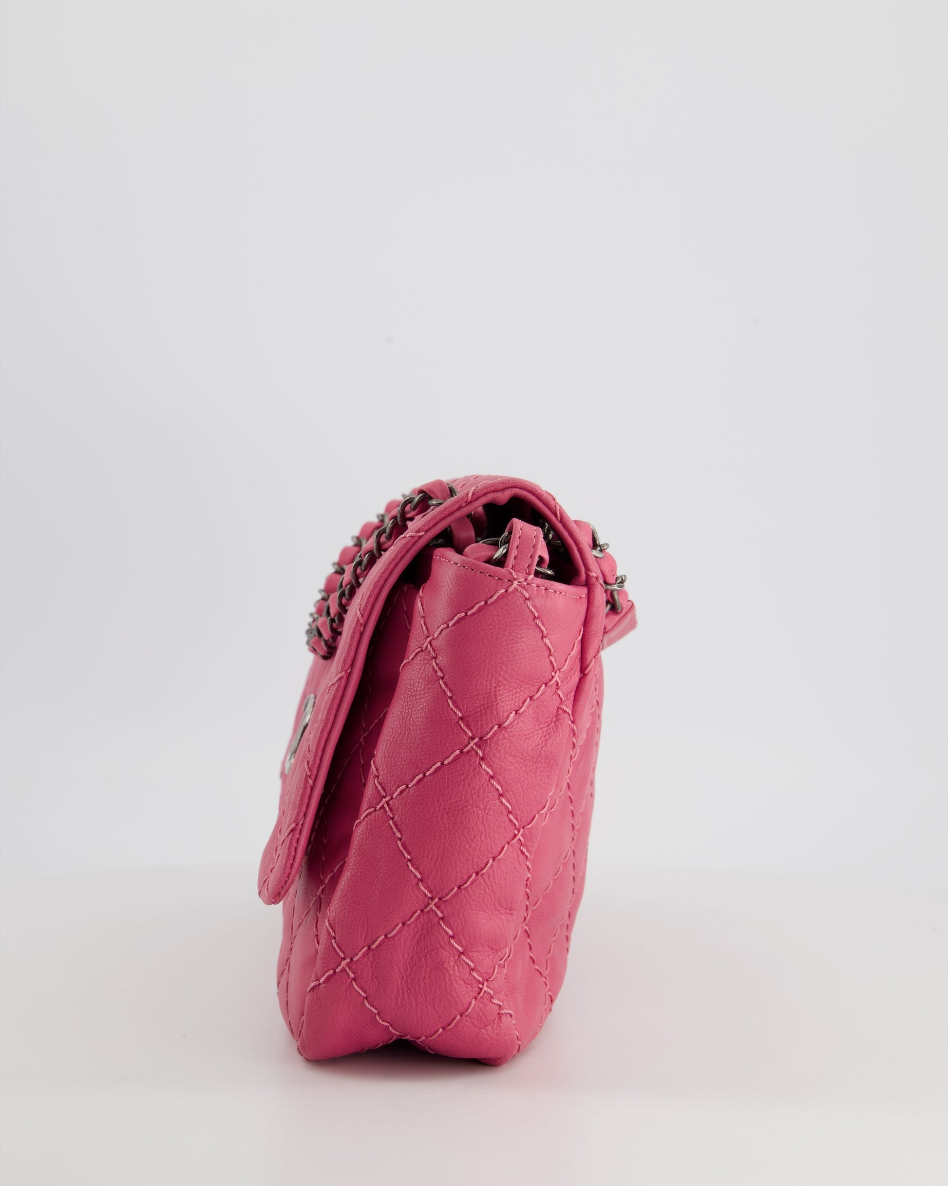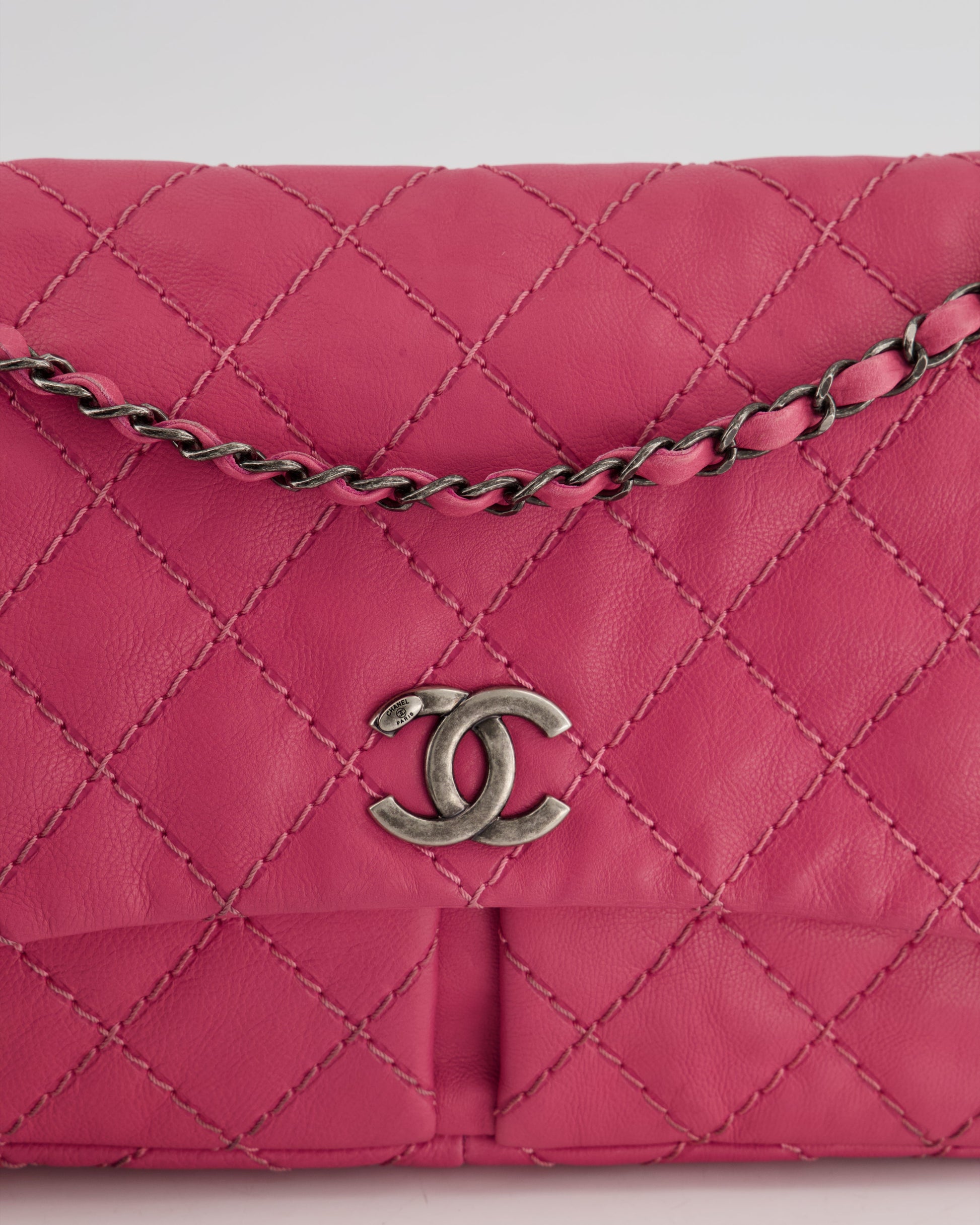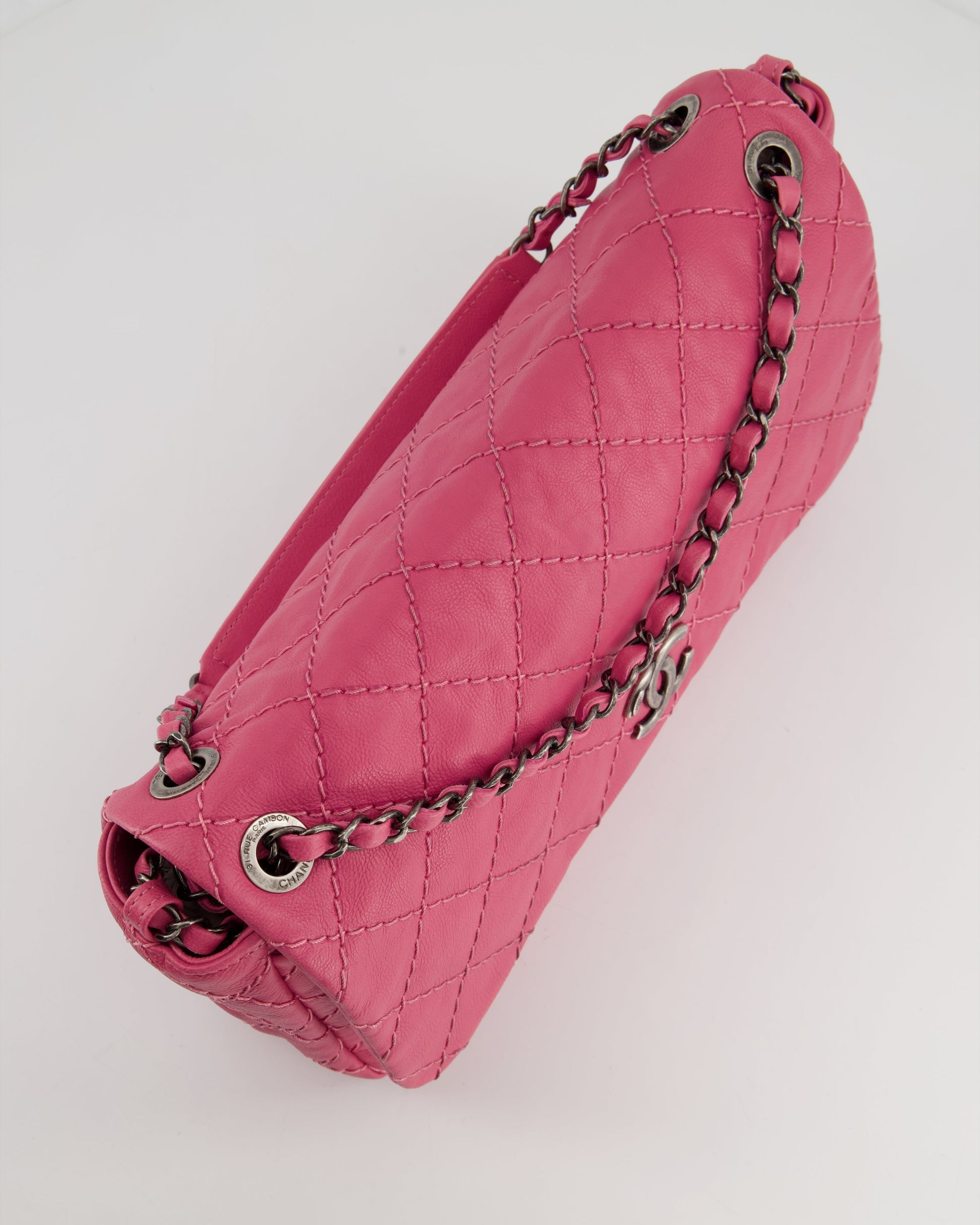 Chanel Pink Split Pocket Flap Bag with Stitched Detailing