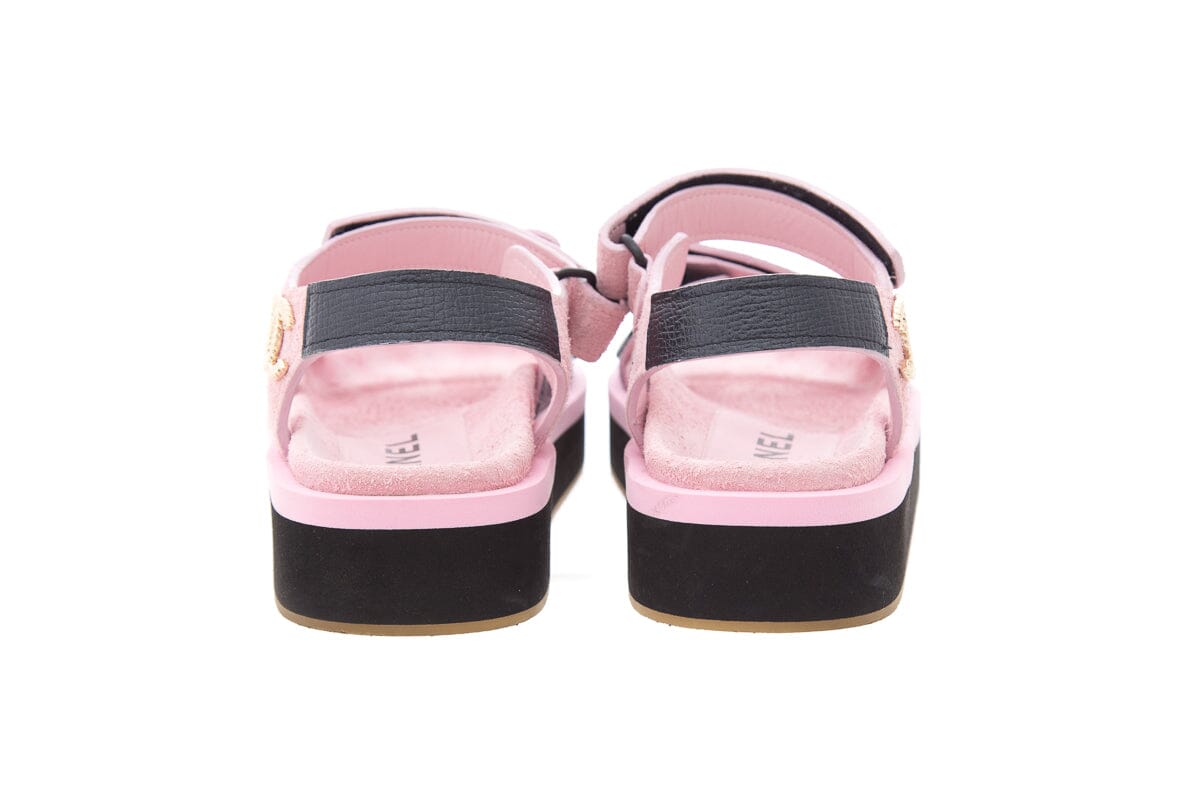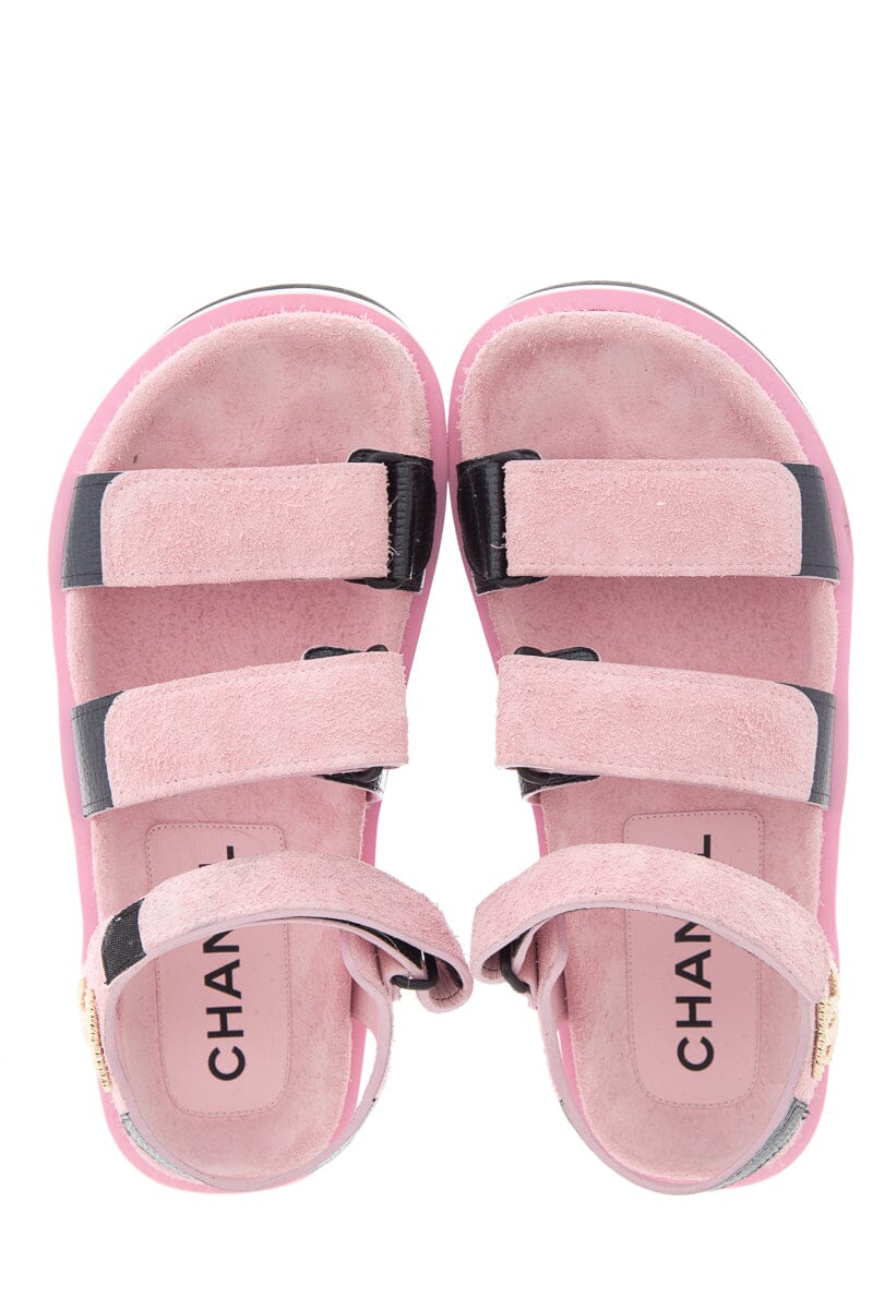 Chanel Pink Suede Calfskin Velcro Sandals SZ 37