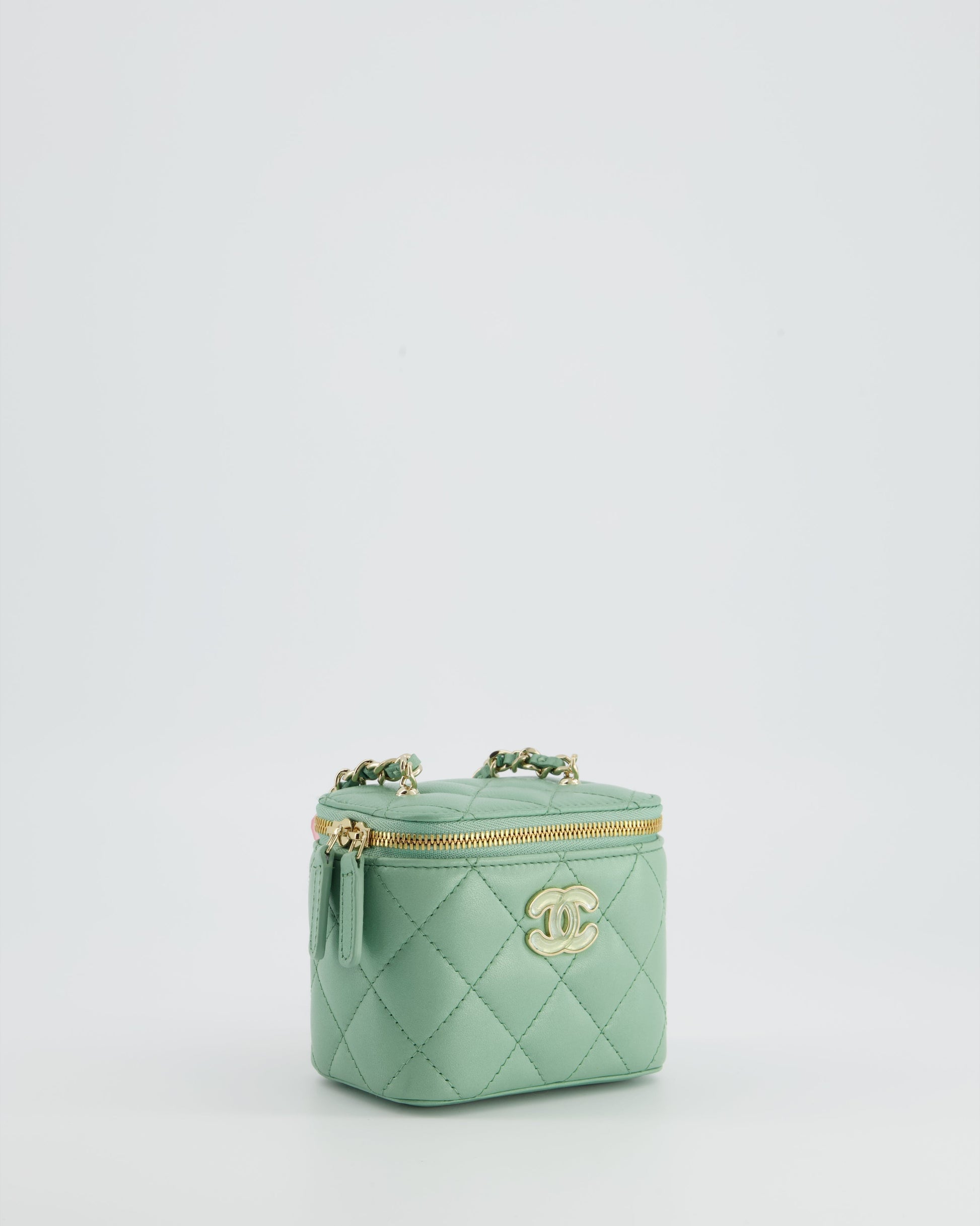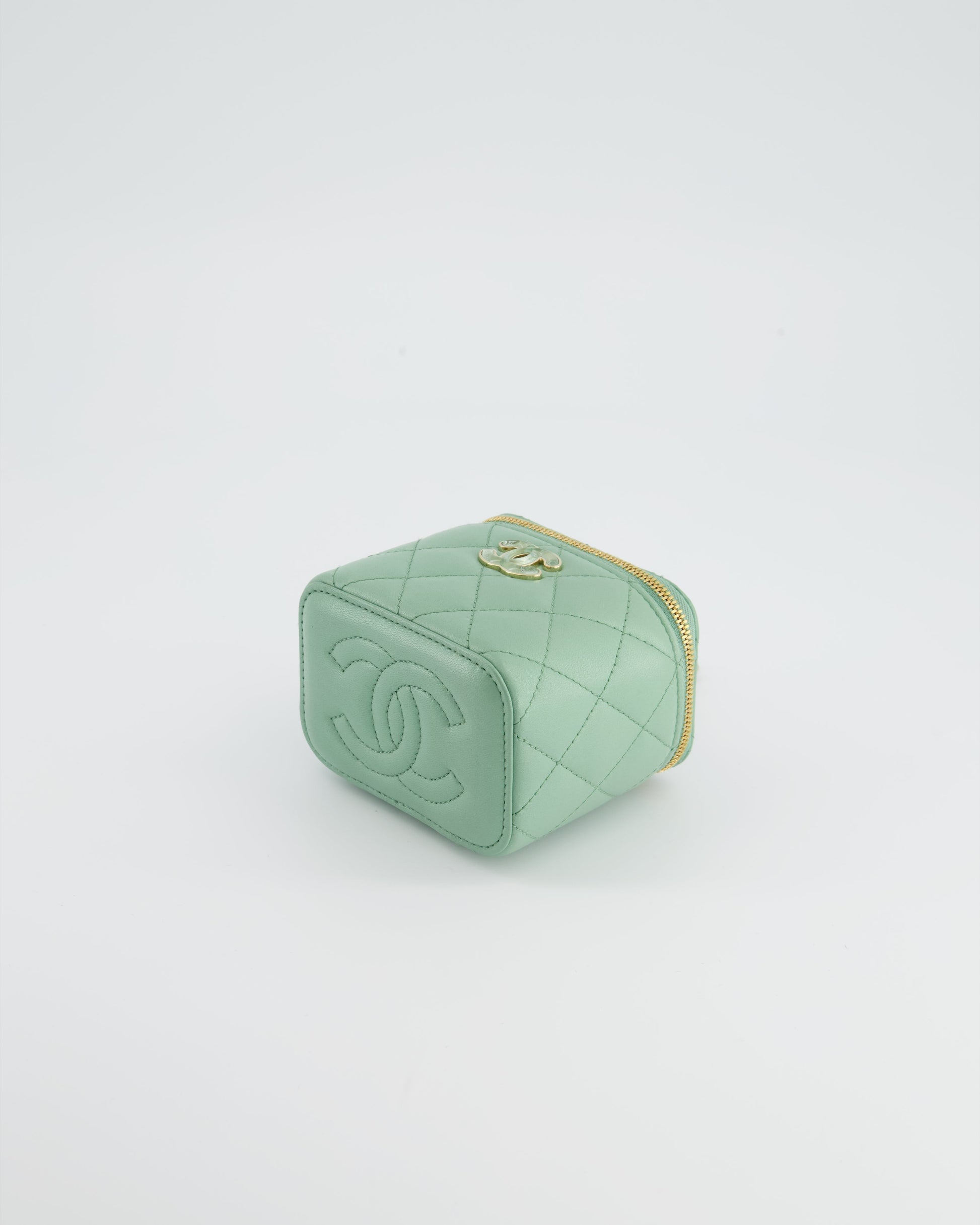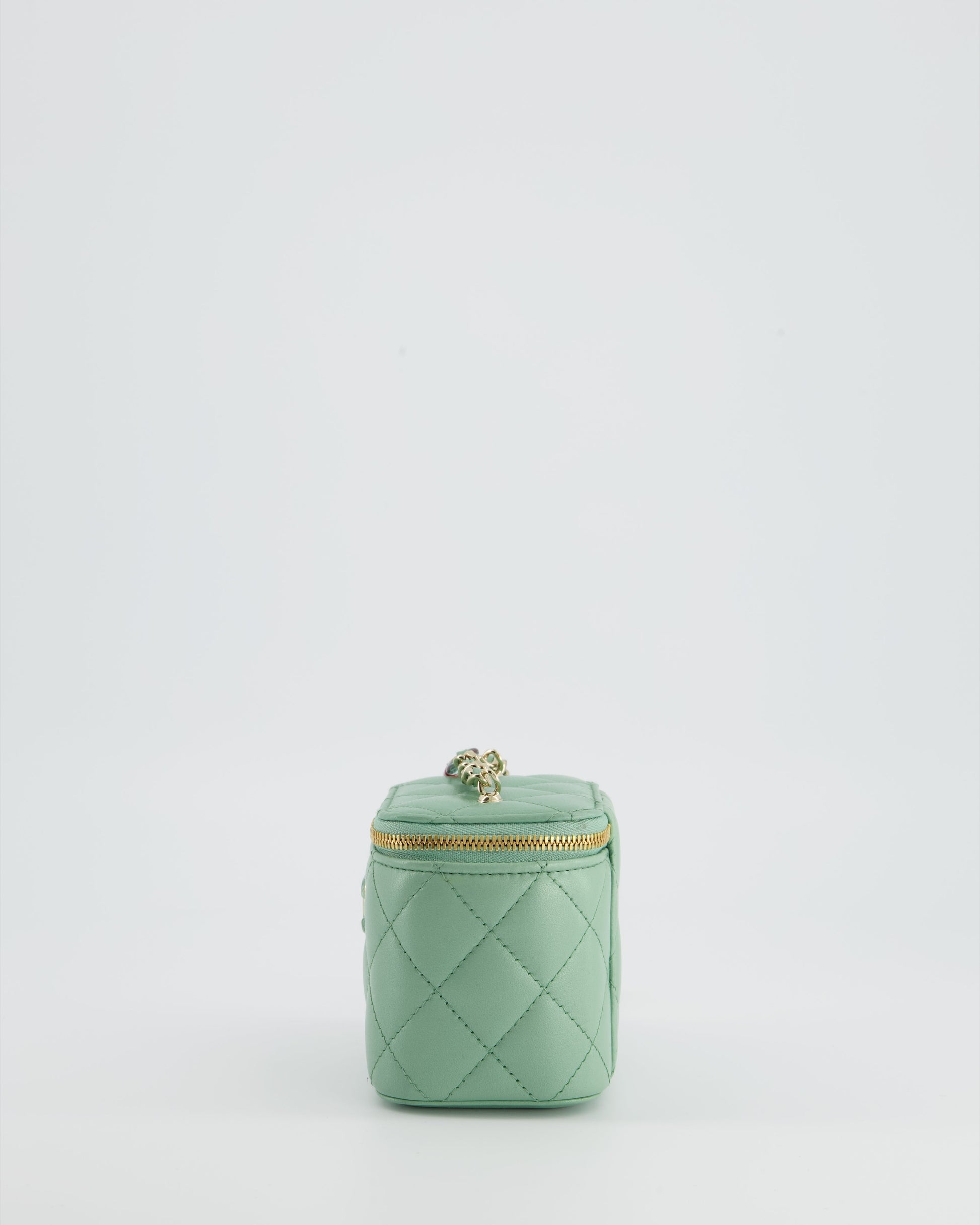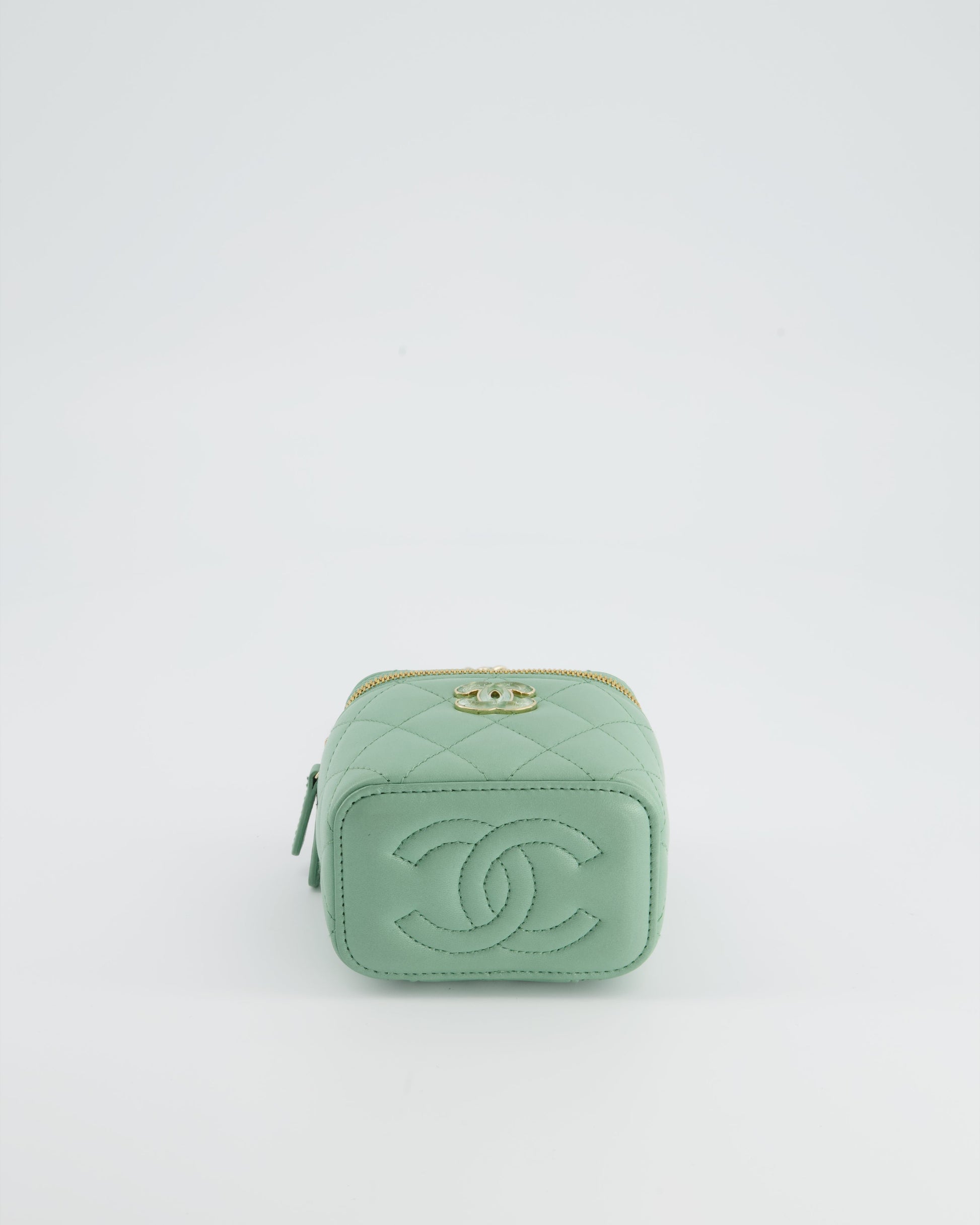 Chanel Pistachio Green Coco Crush Mini Vanity Bag in Lambskin Leather with Champagne Gold & Green Enamel Hardware