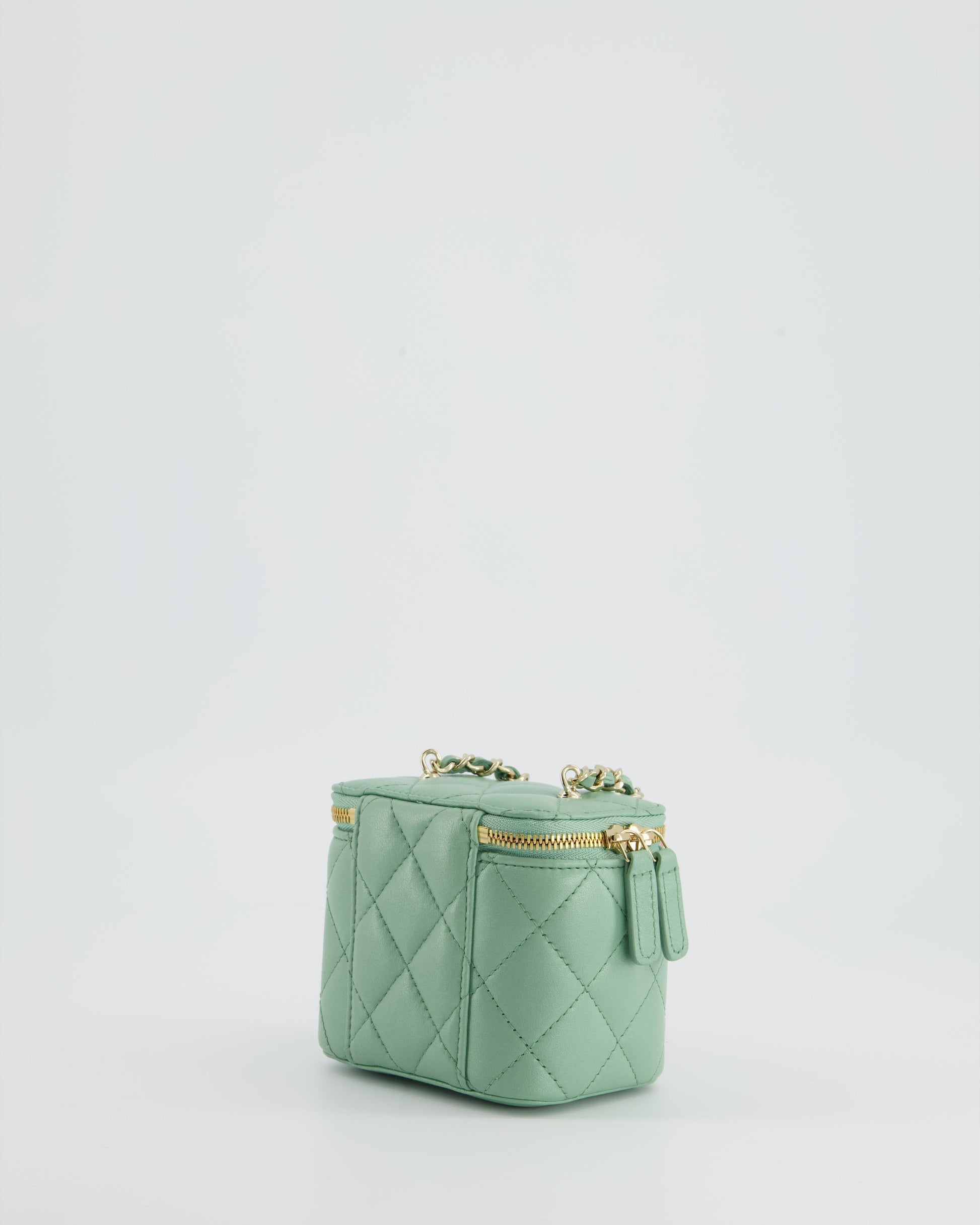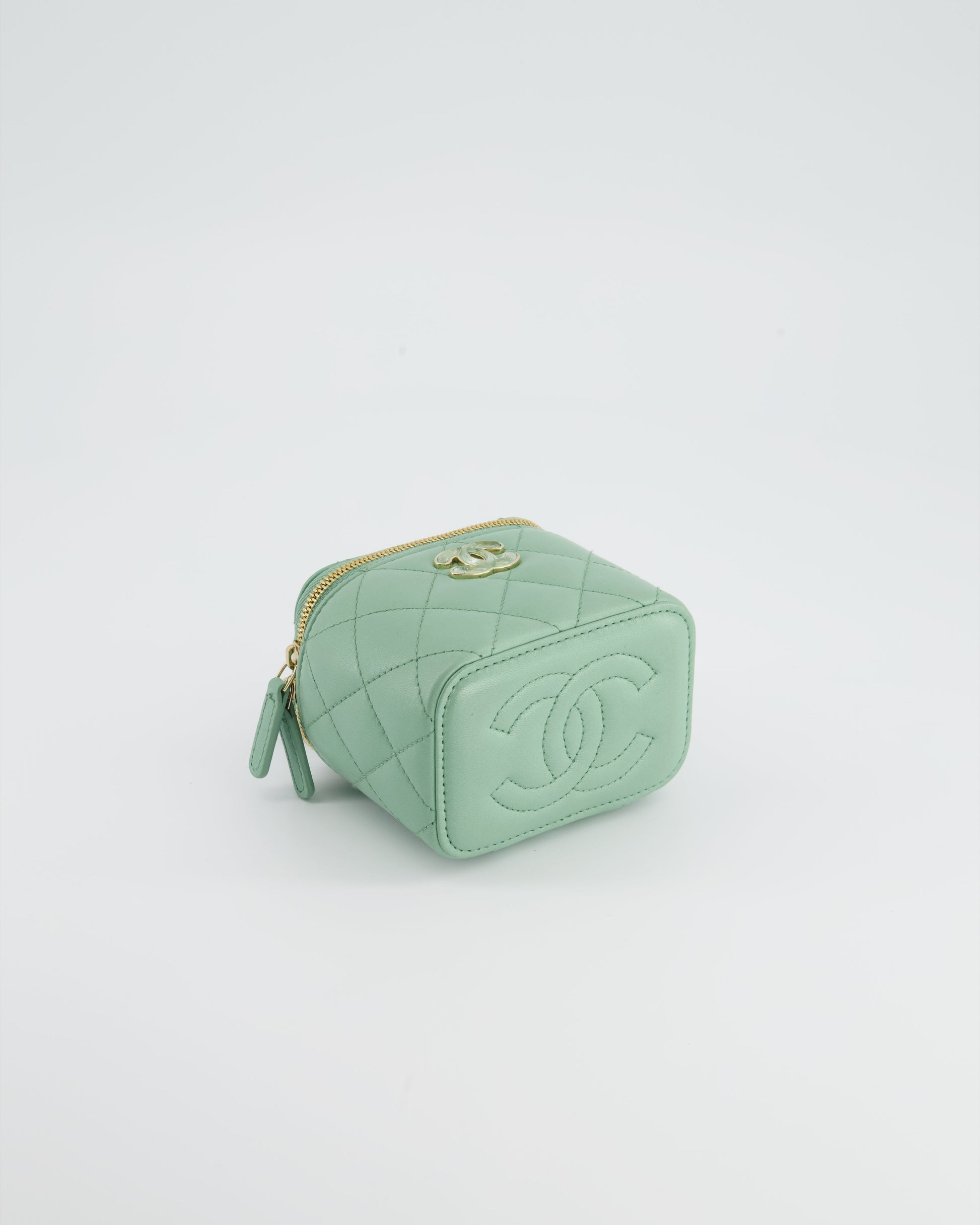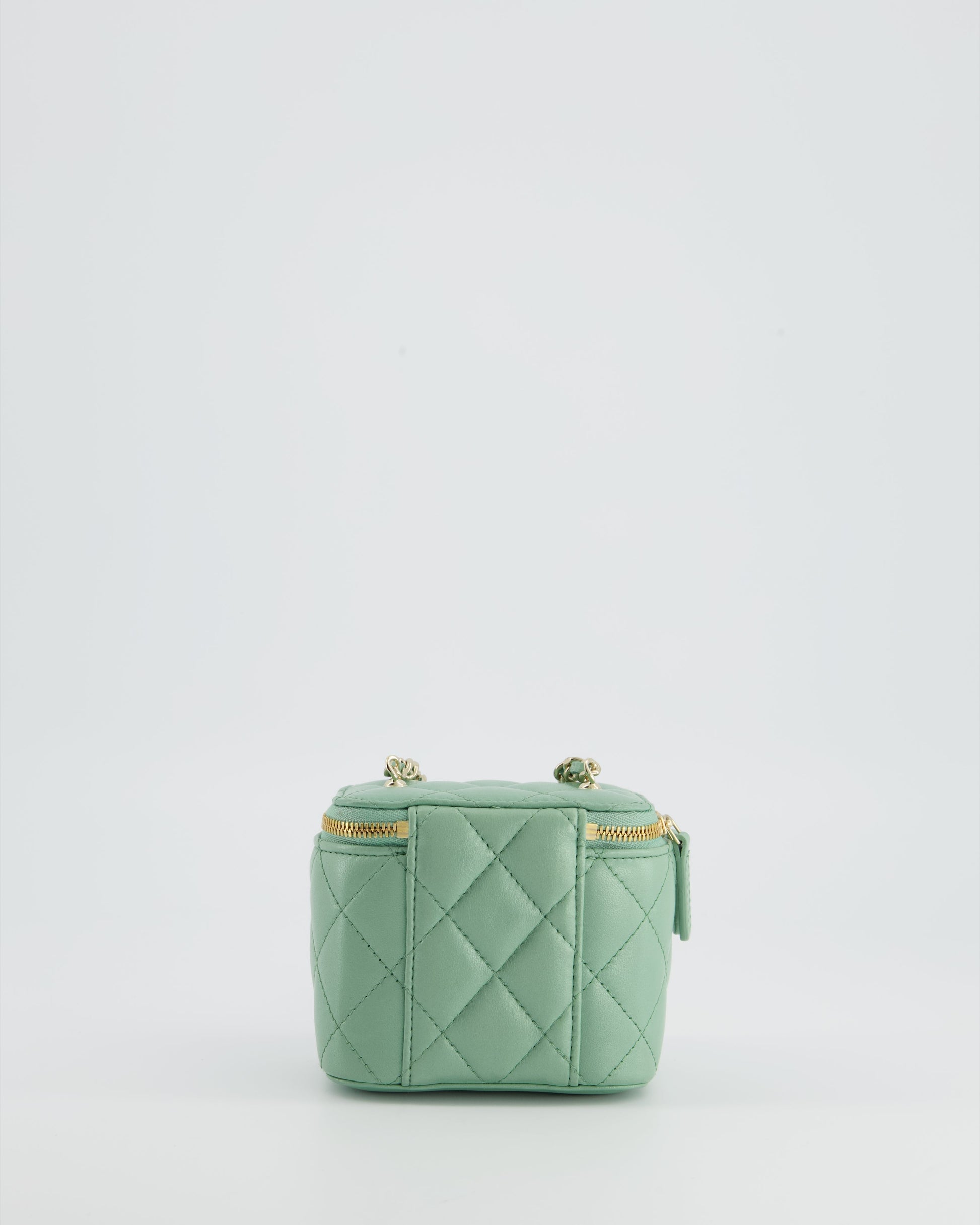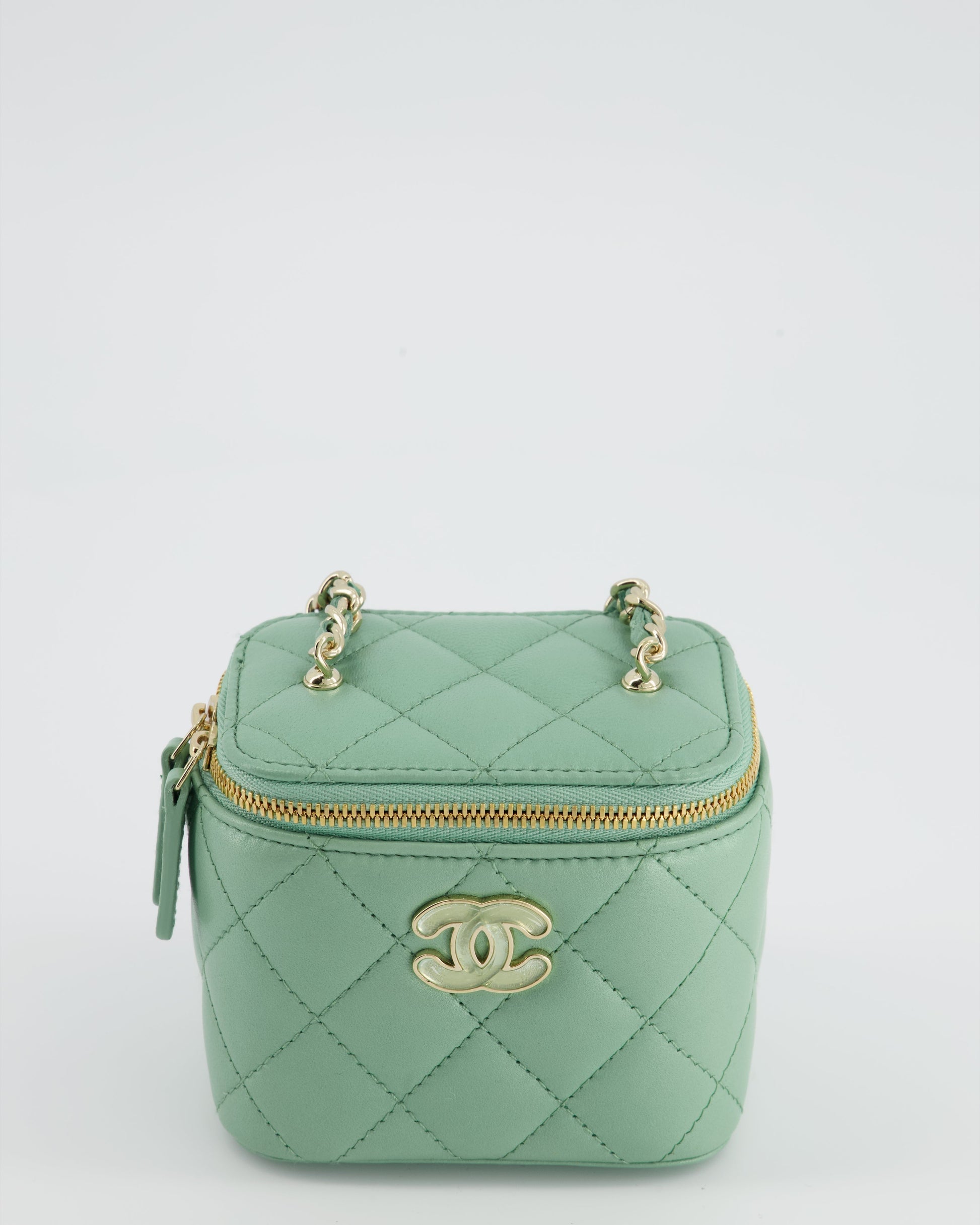 Chanel Pistachio Green Coco Crush Mini Vanity Bag in Lambskin Leather with Champagne Gold & Green Enamel Hardware