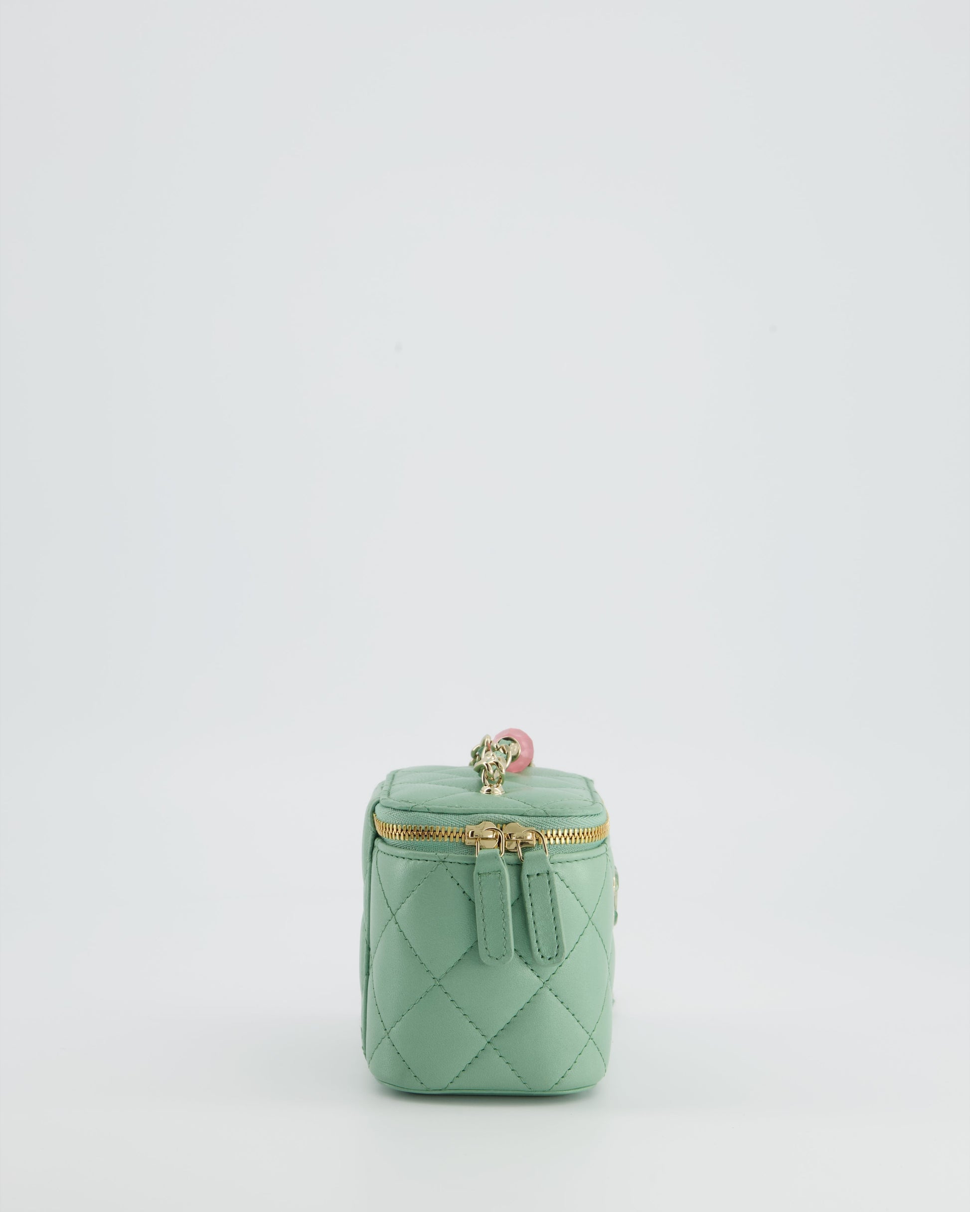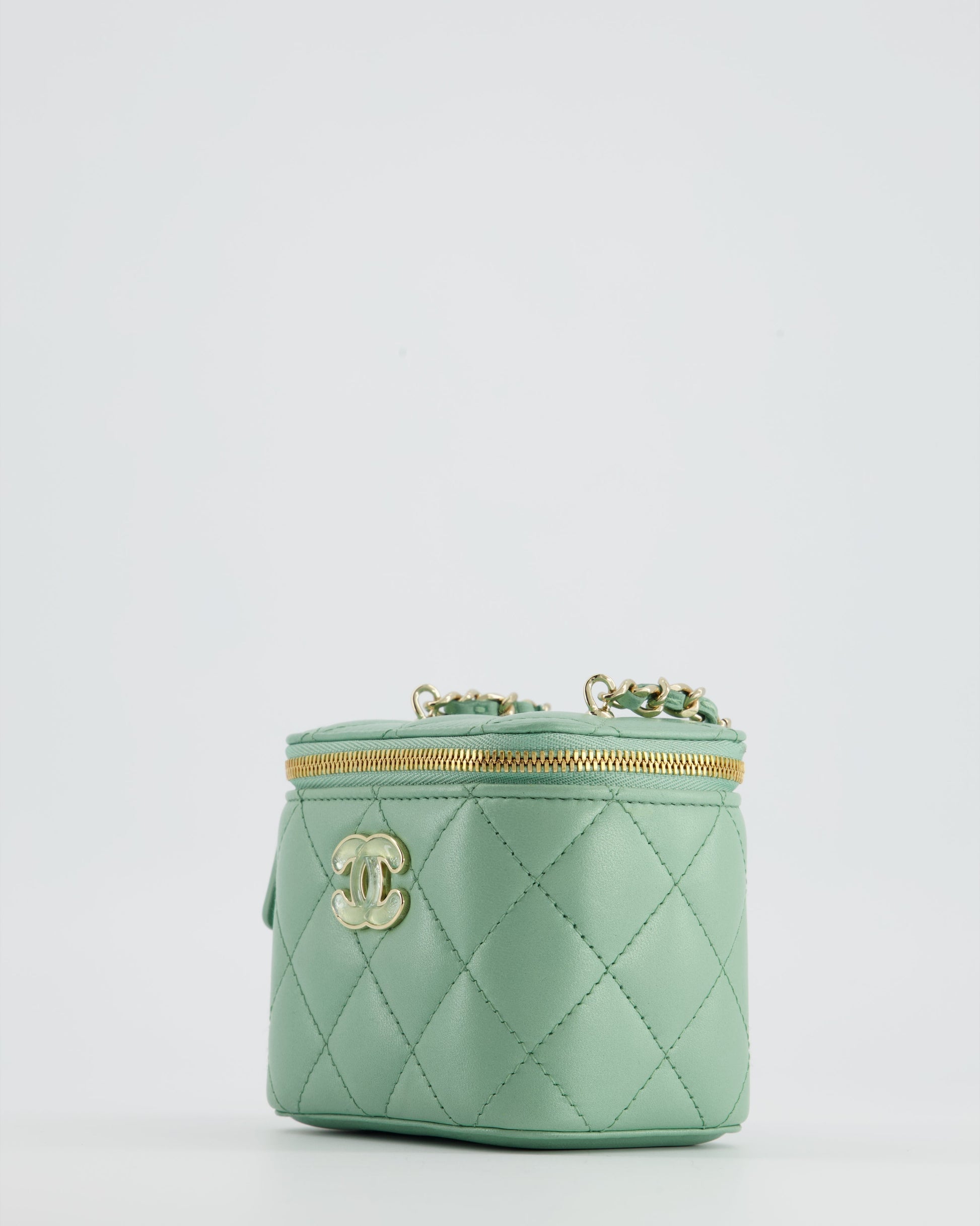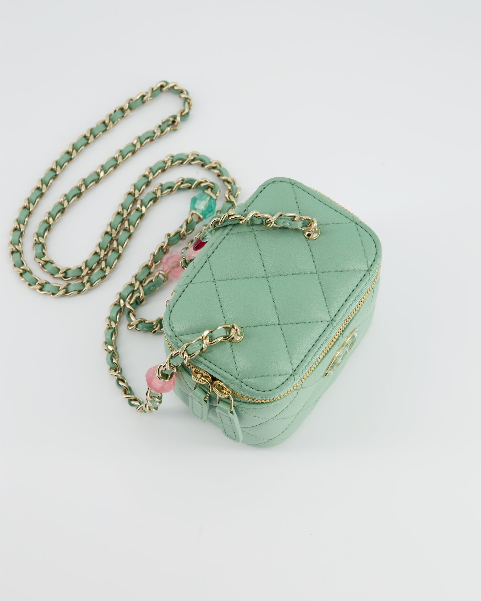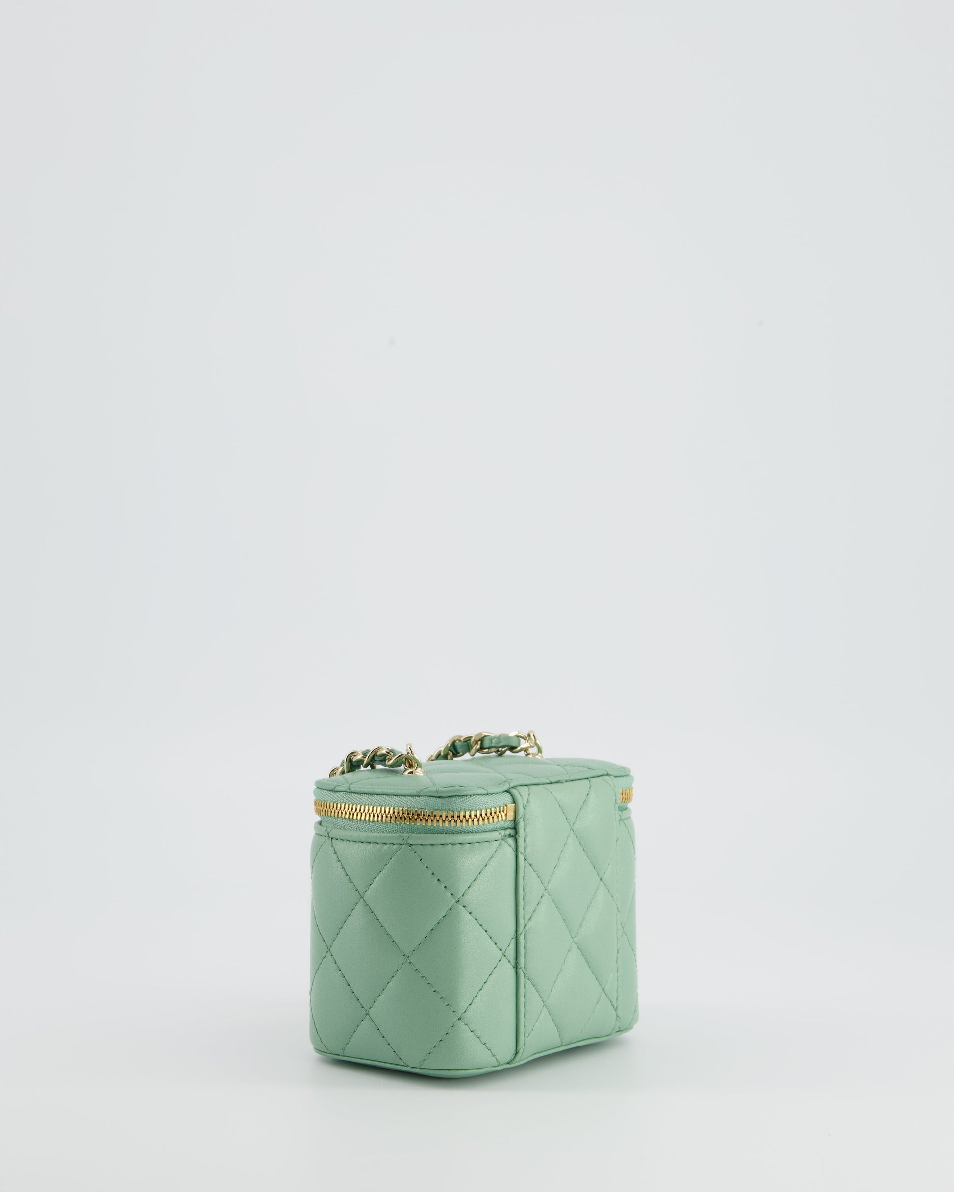 Chanel Pistachio Green Coco Crush Mini Vanity Bag in Lambskin Leather with Champagne Gold & Green Enamel Hardware