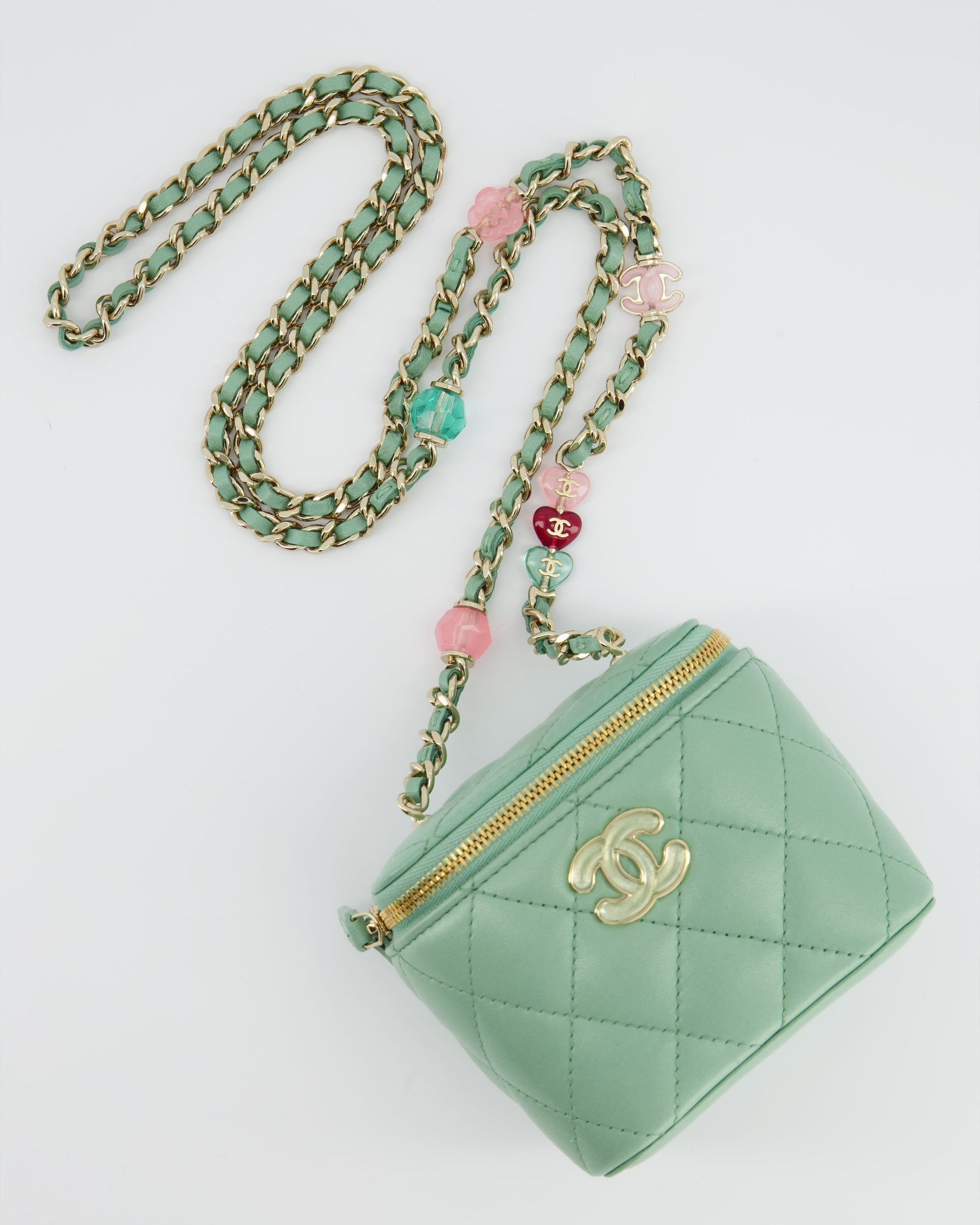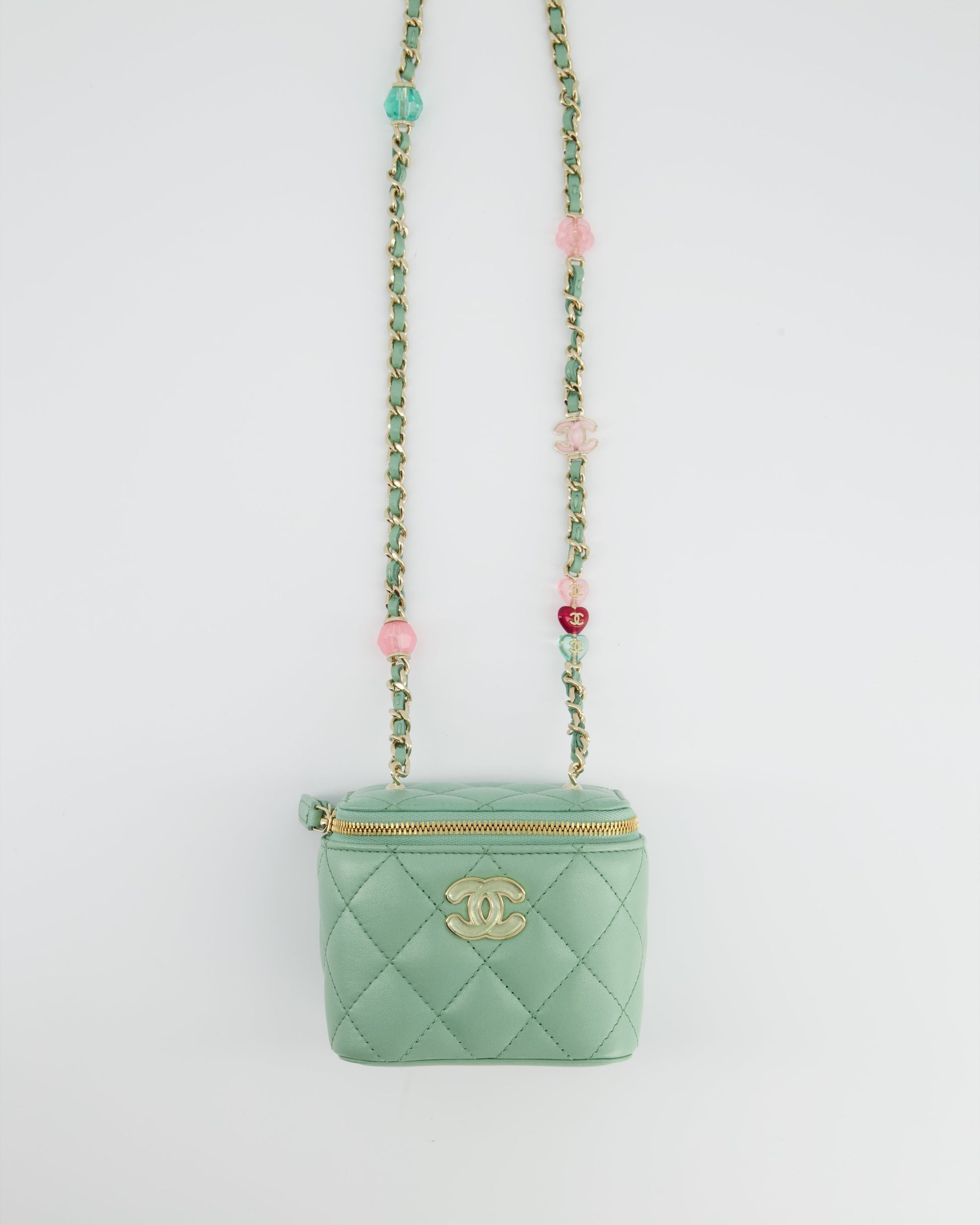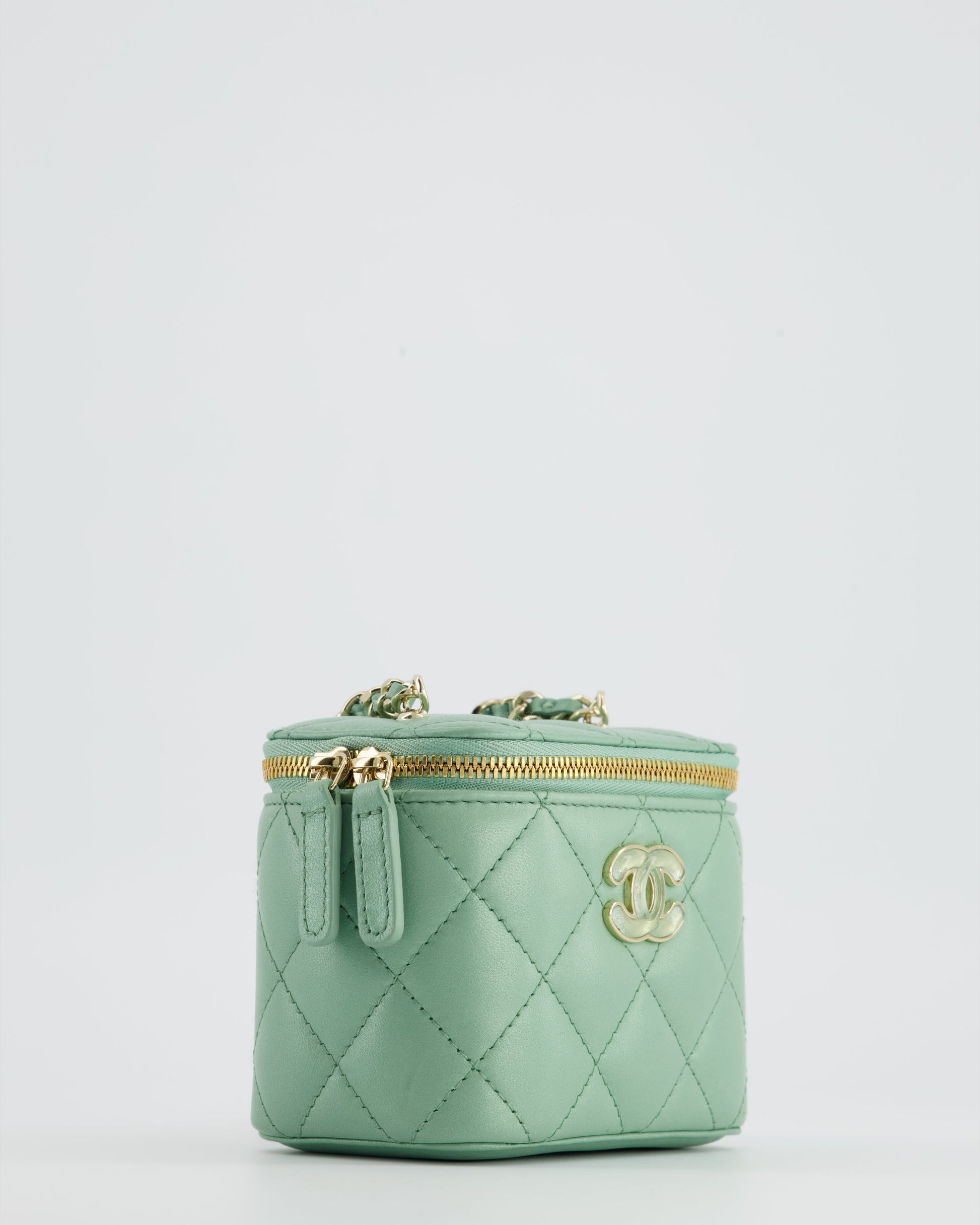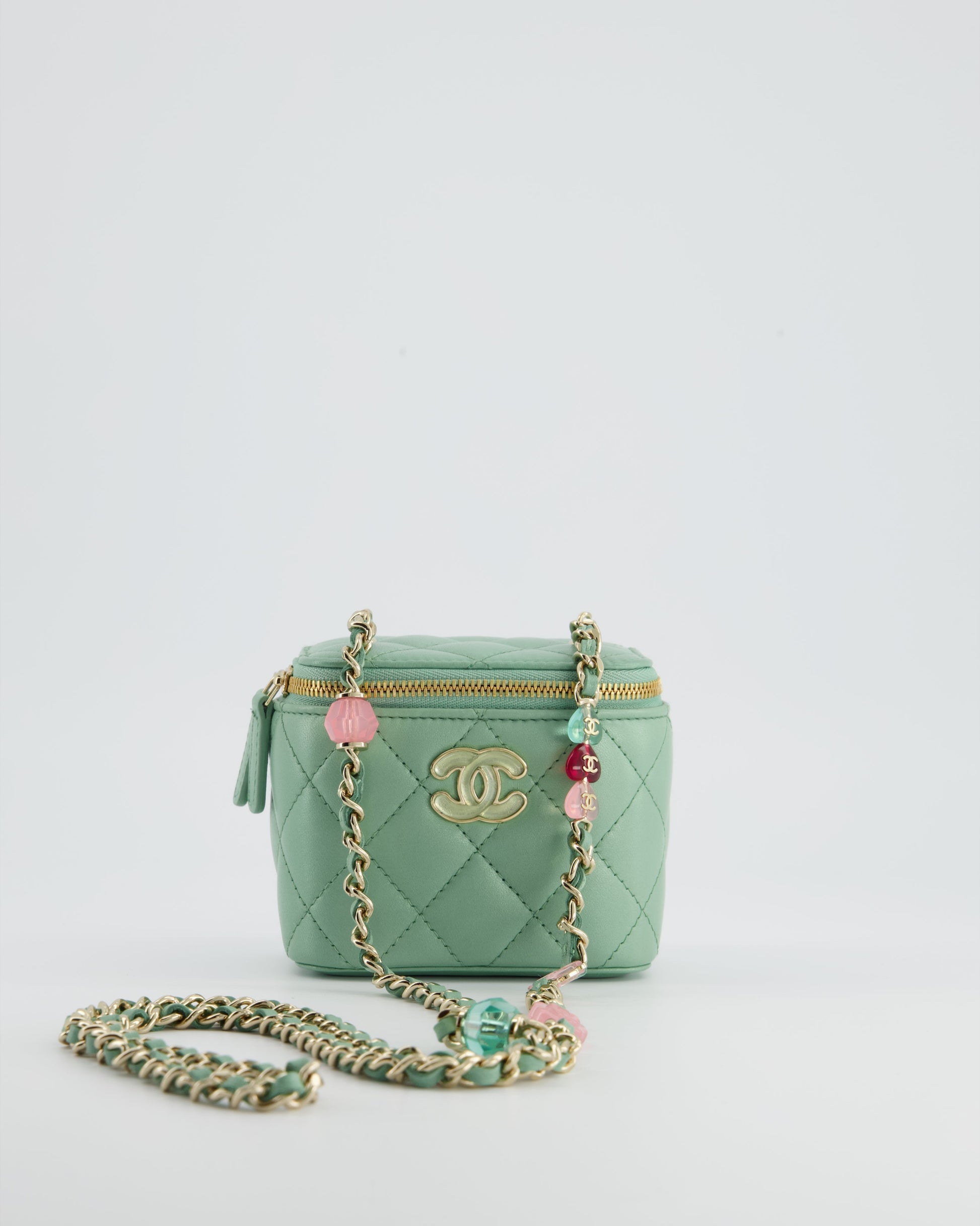 Chanel Pistachio Green Coco Crush Mini Vanity Bag in Lambskin Leather with Champagne Gold & Green Enamel Hardware