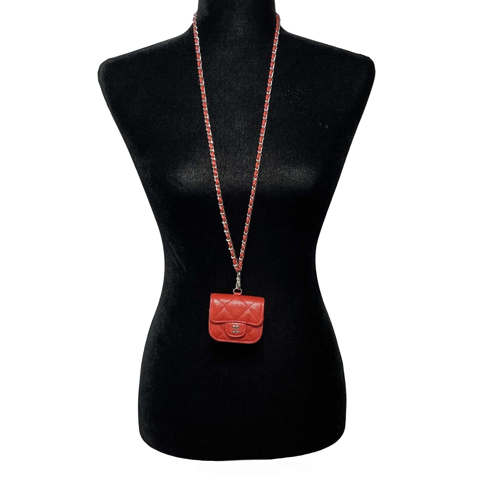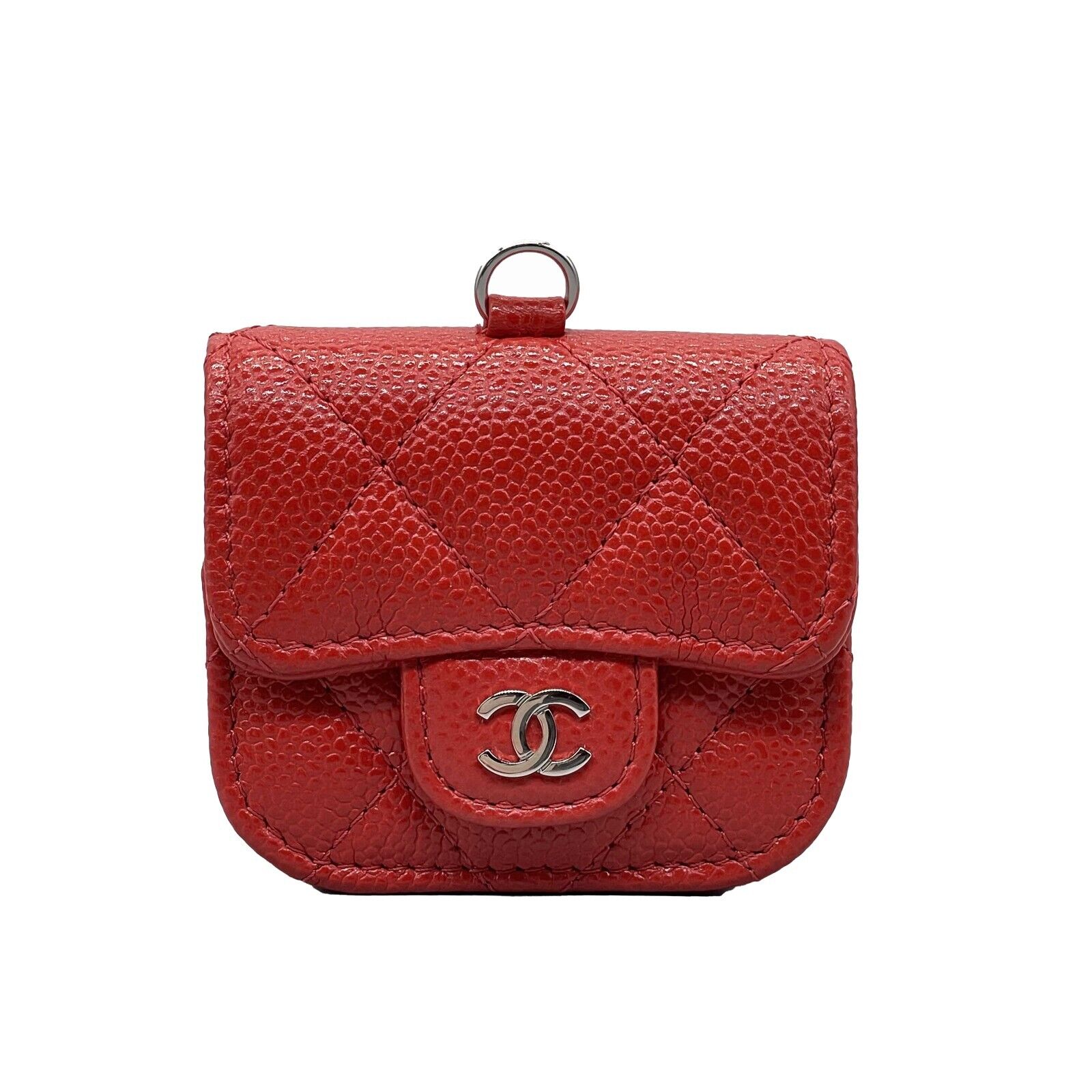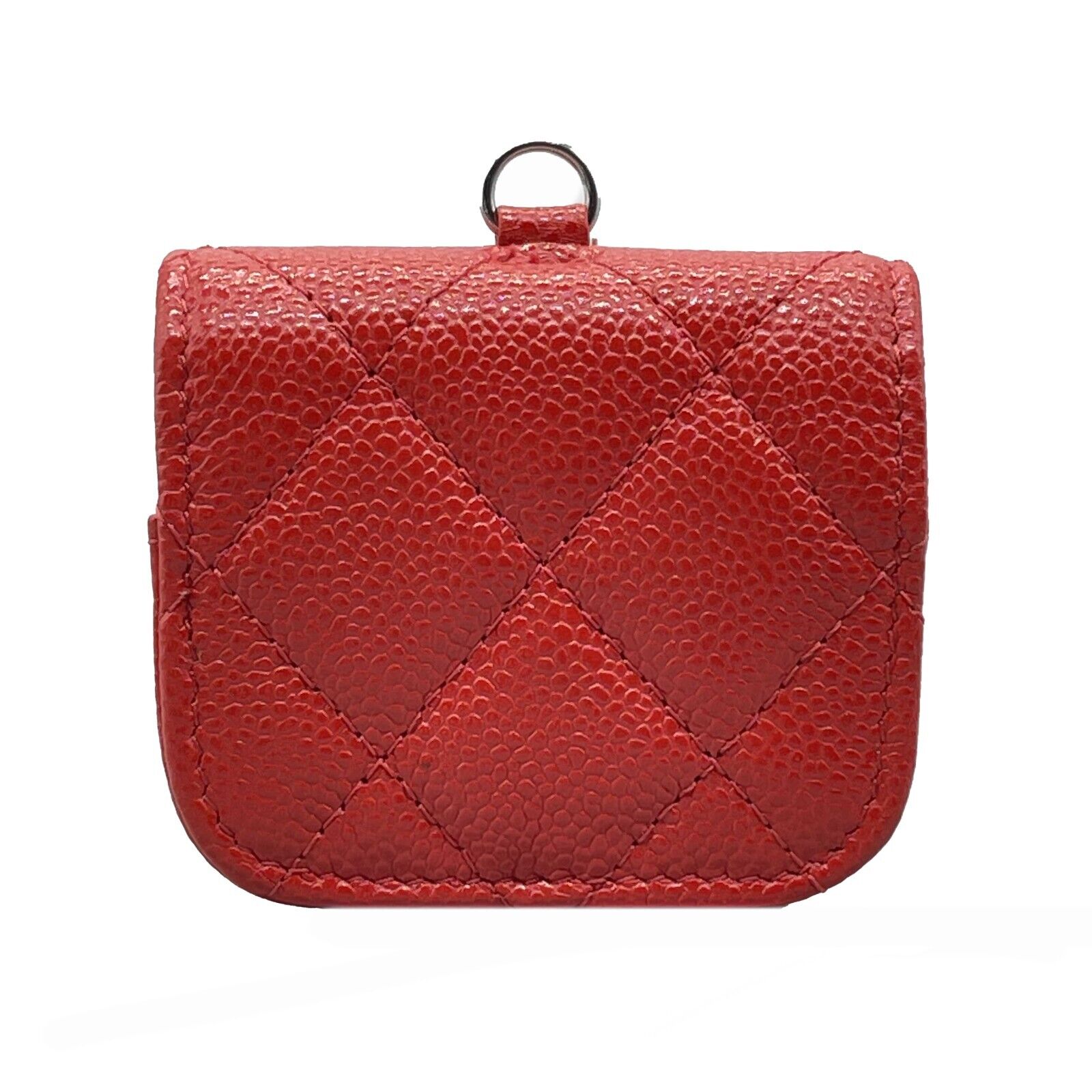 CHANEL - Pristine - Quilted Caviar Leather Airpod Pro Case/Necklace - Red, Silver-Toned Hardware - Accessories
