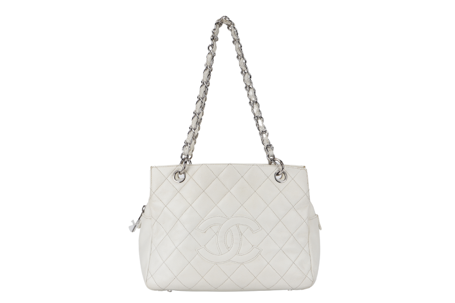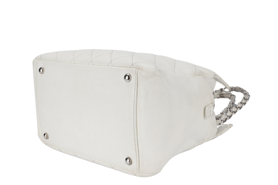 CHANEL PST WHITE (1044xxxx) CAVIAR LEATHER SILVER HARDWARE WITH DUST COVER