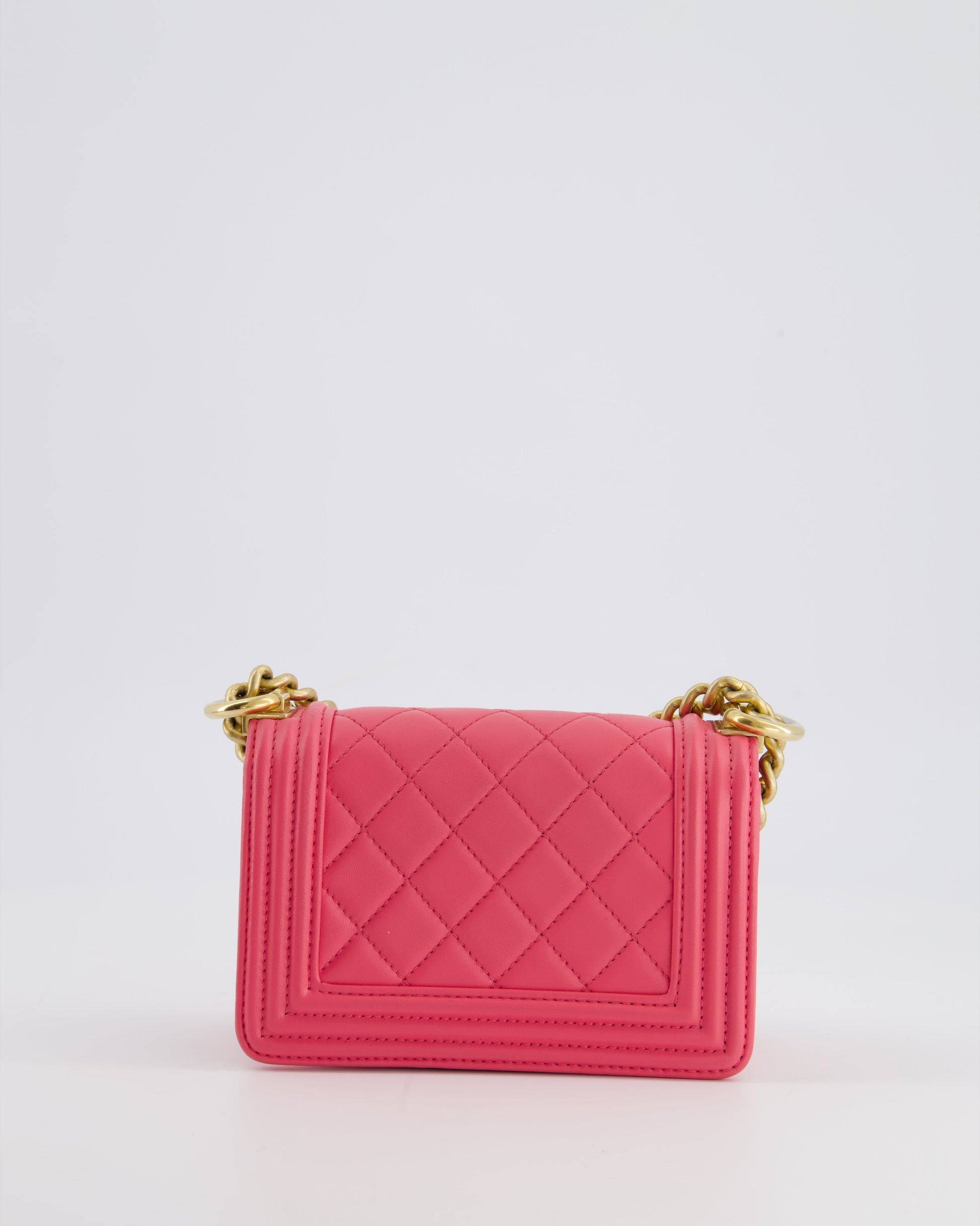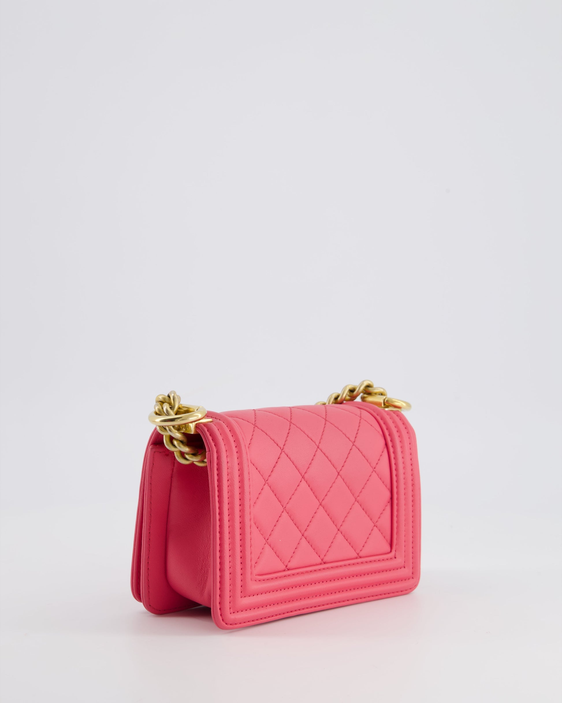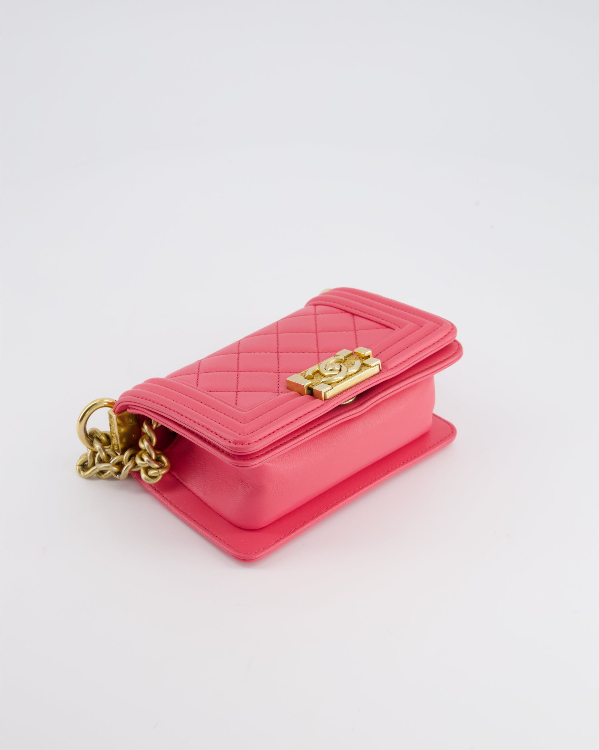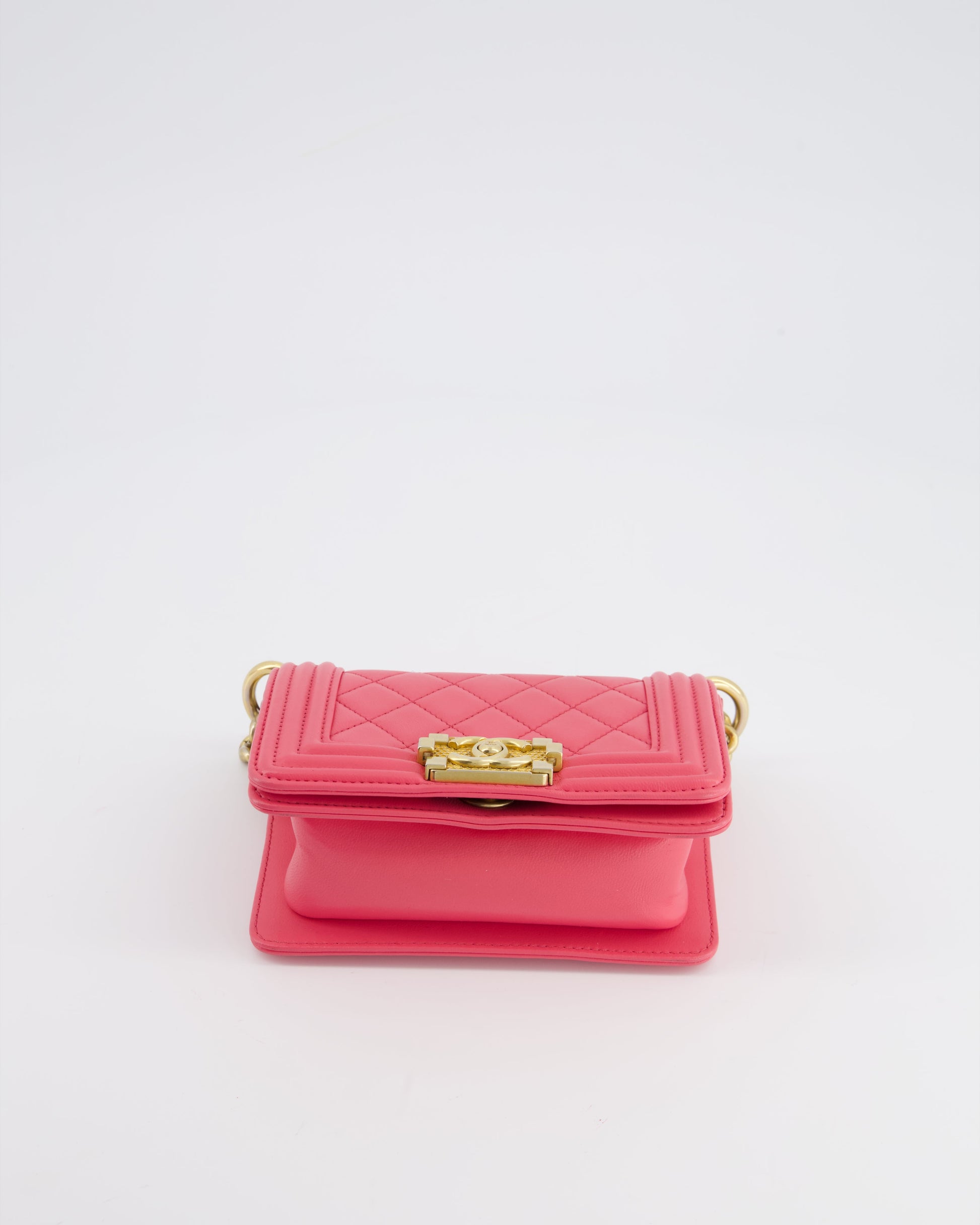 Chanel Punch Pink Mini Boy Bag in Lambskin Leather with Gold Hardware