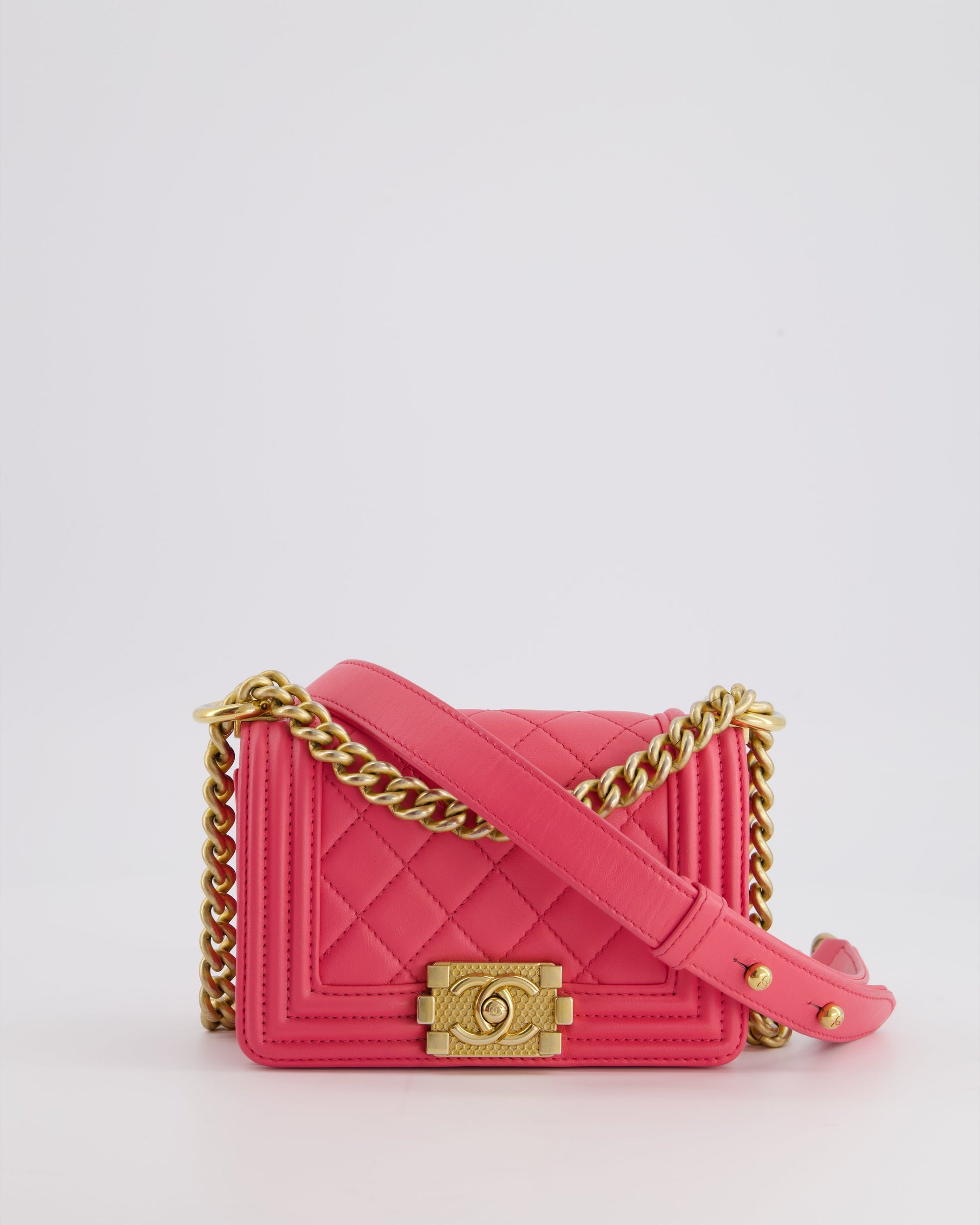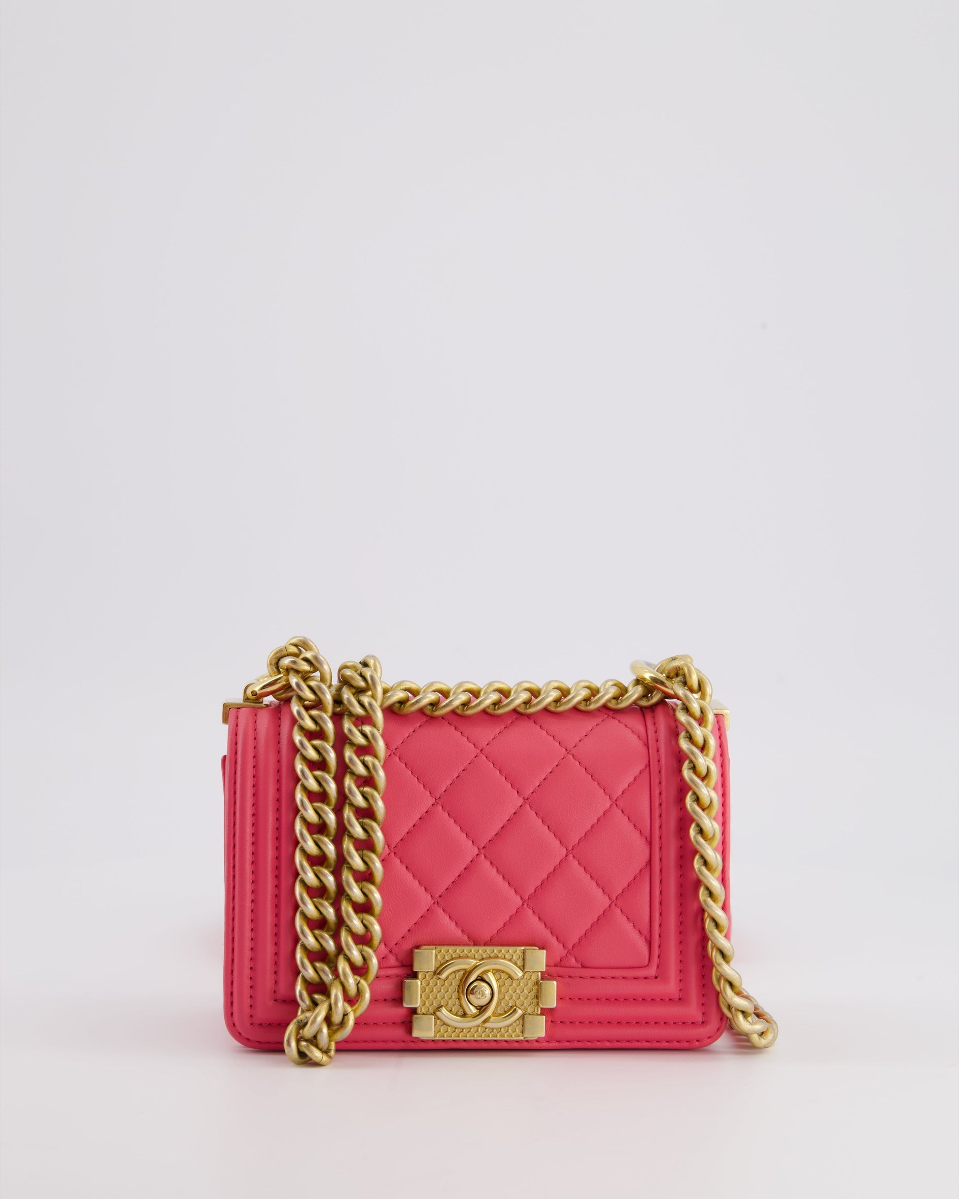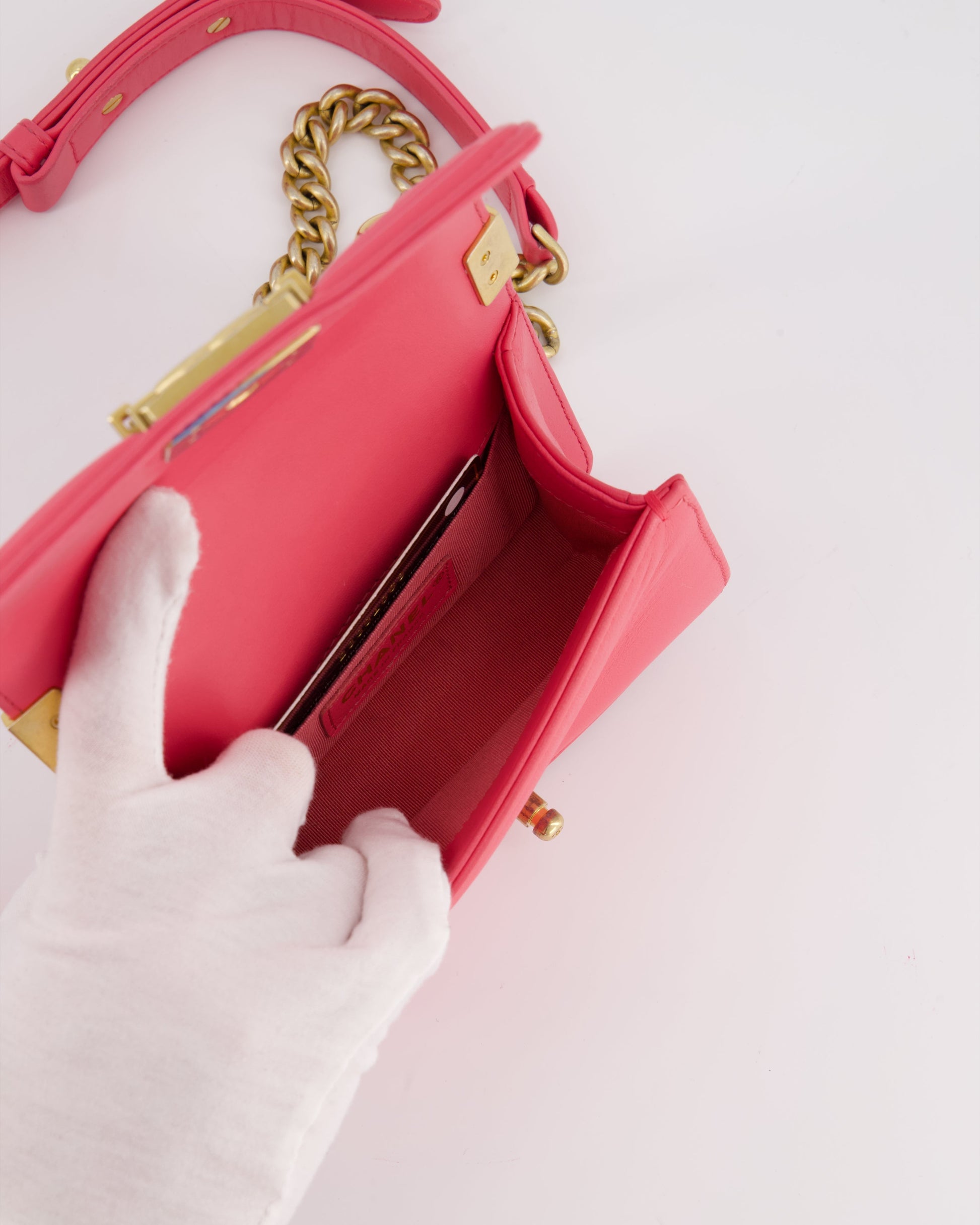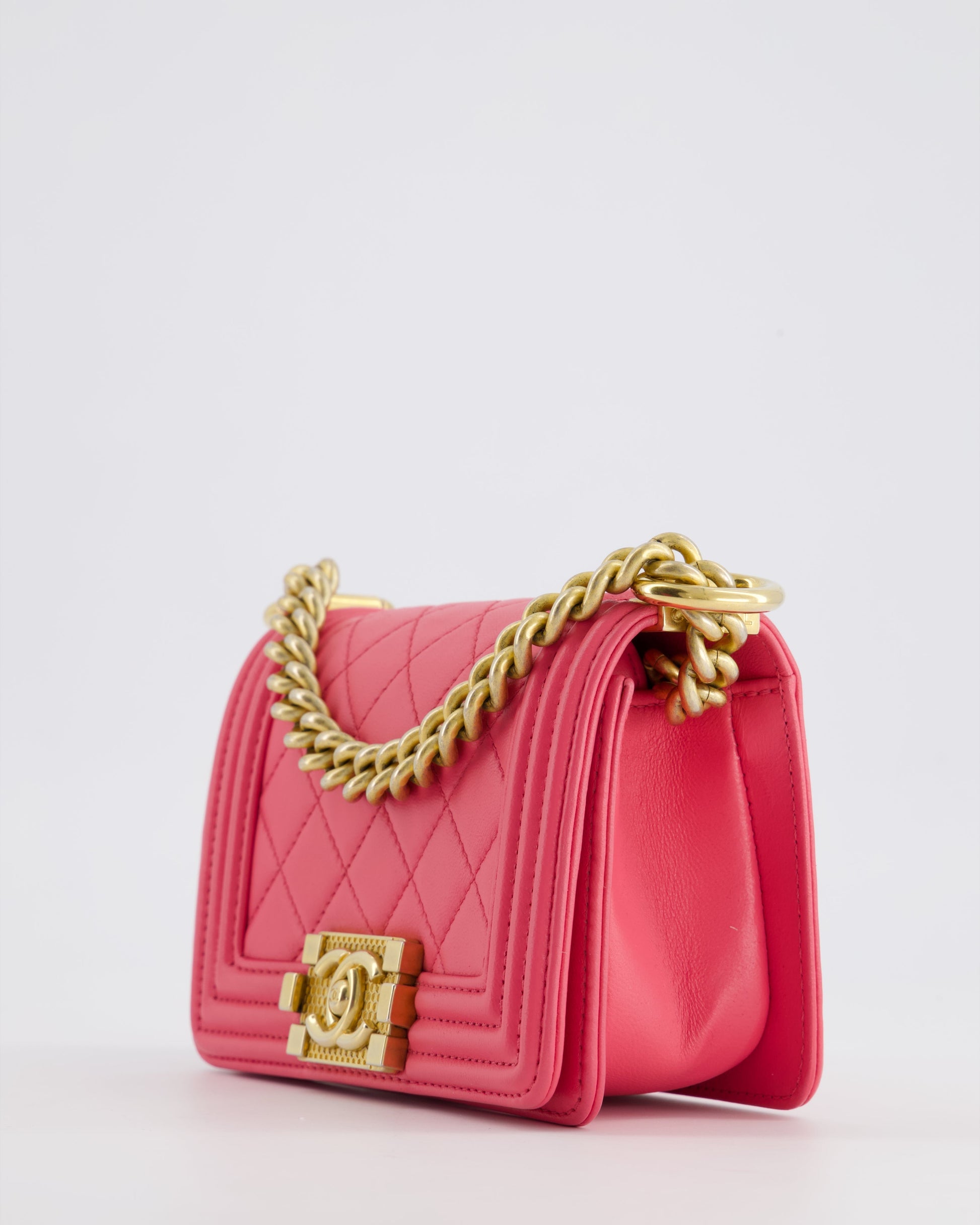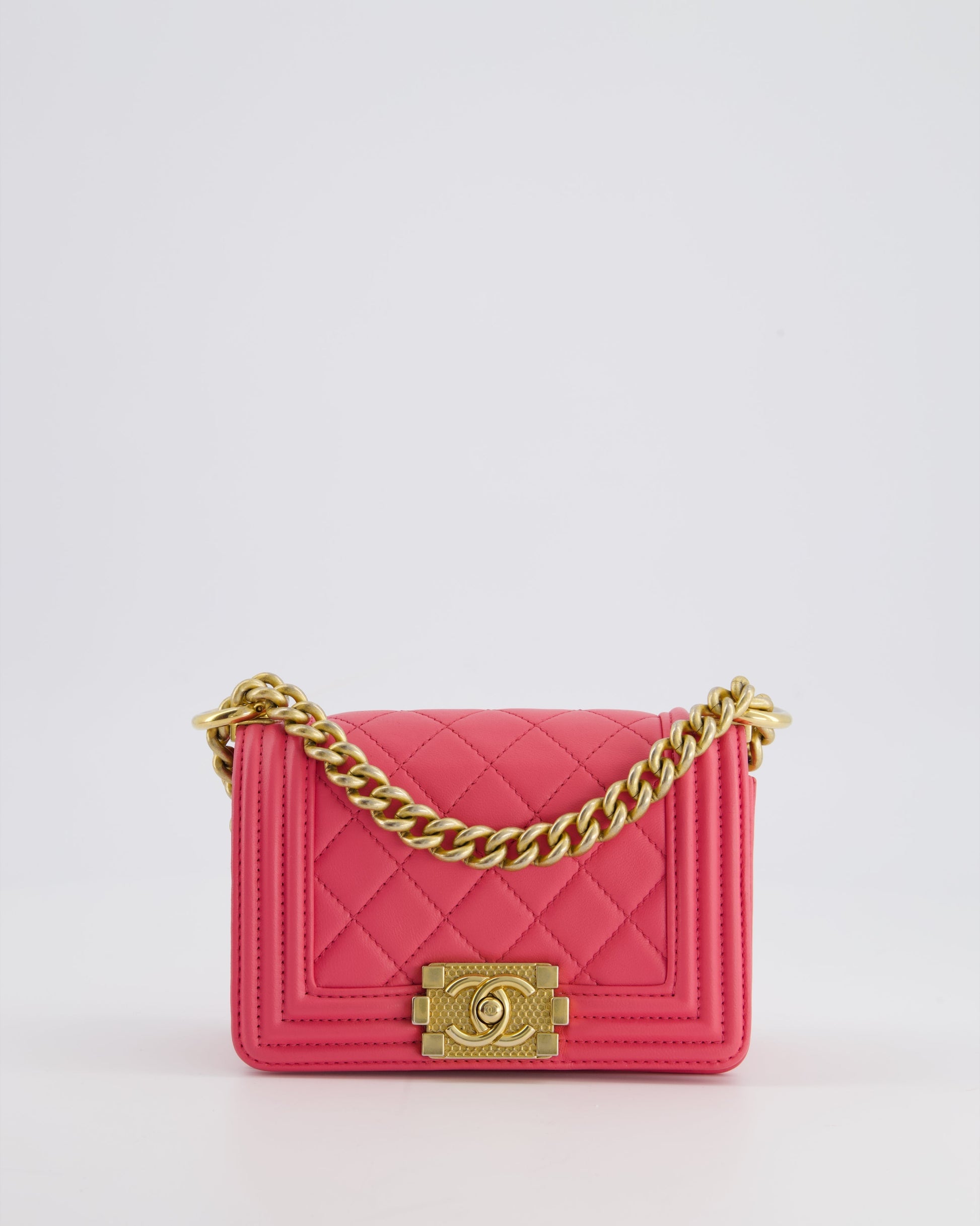 Chanel Punch Pink Mini Boy Bag in Lambskin Leather with Gold Hardware