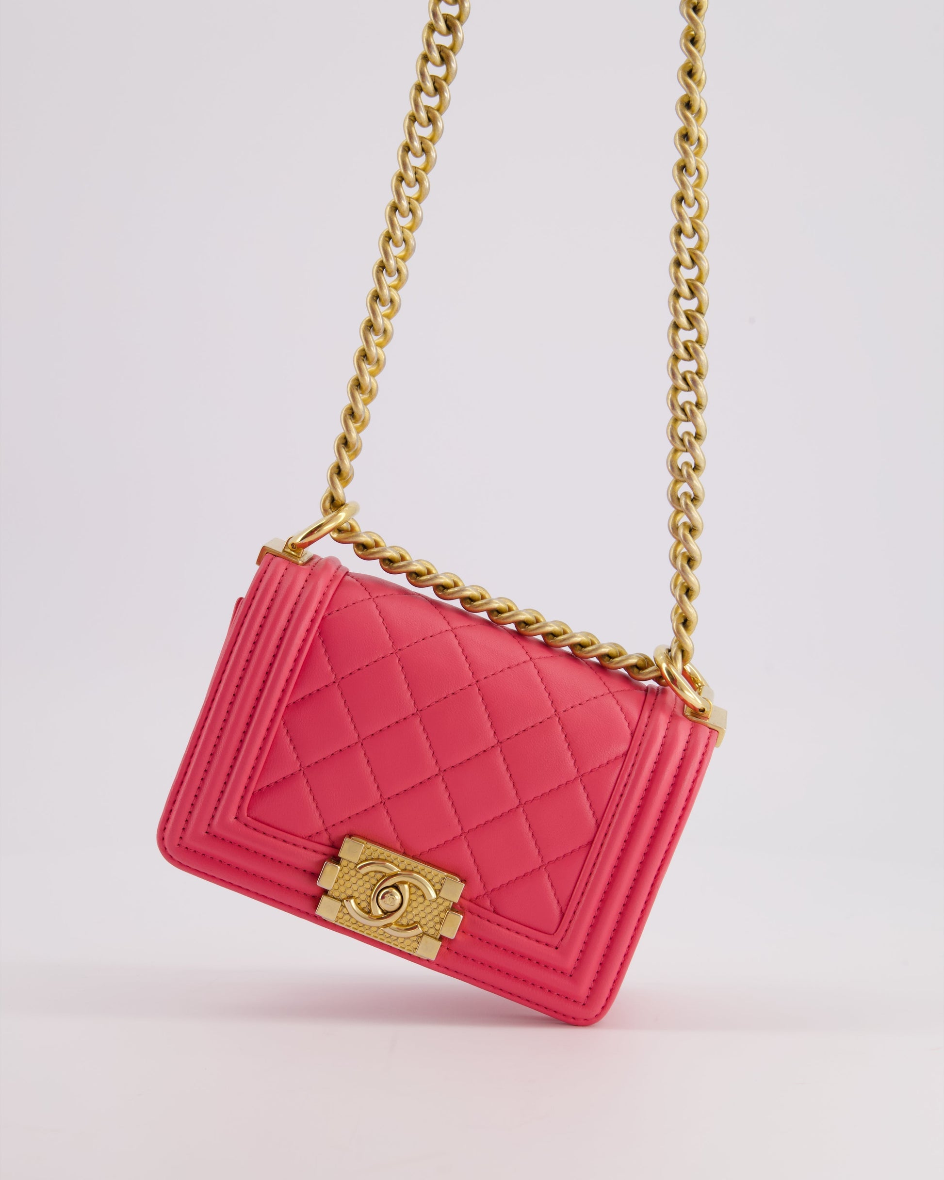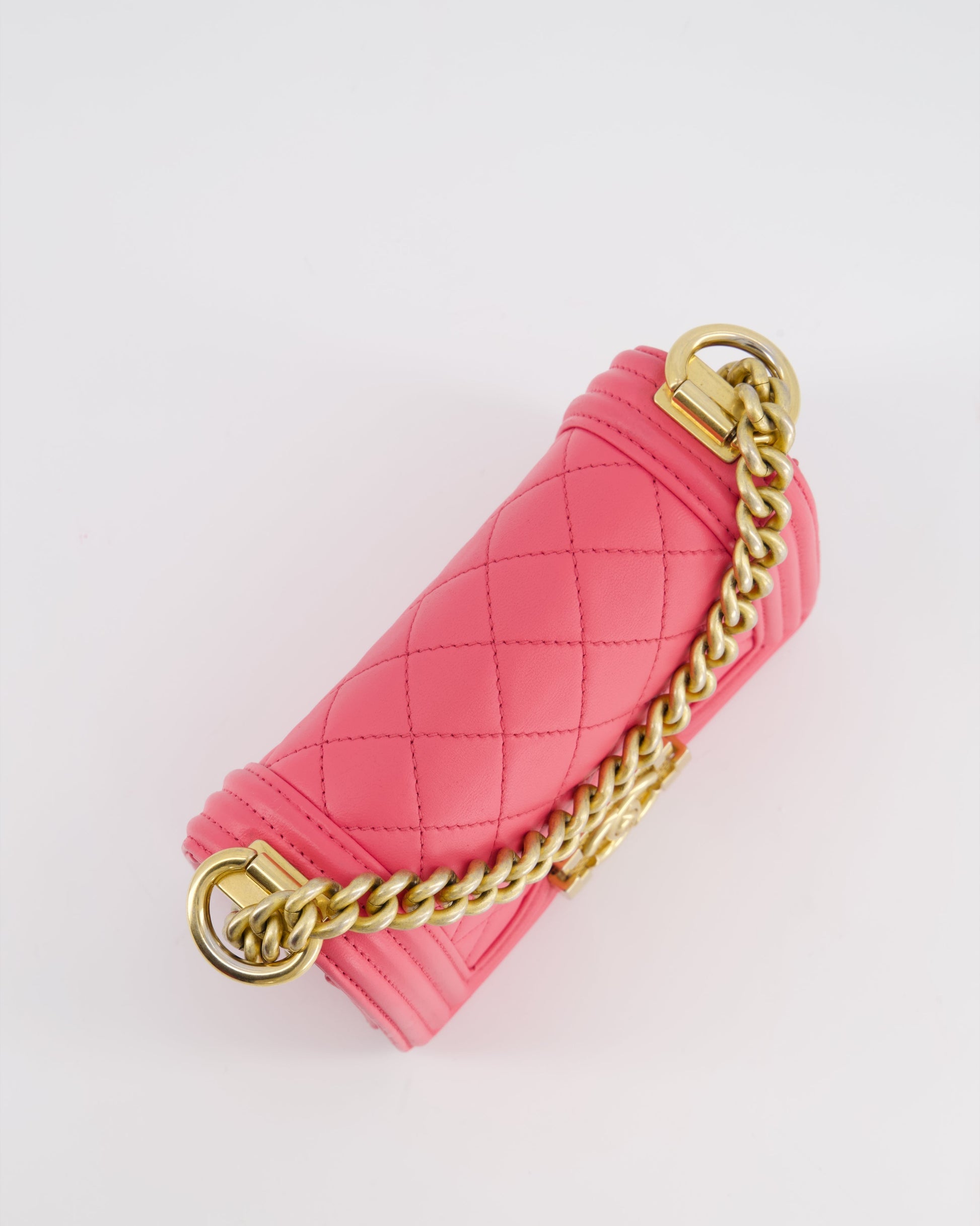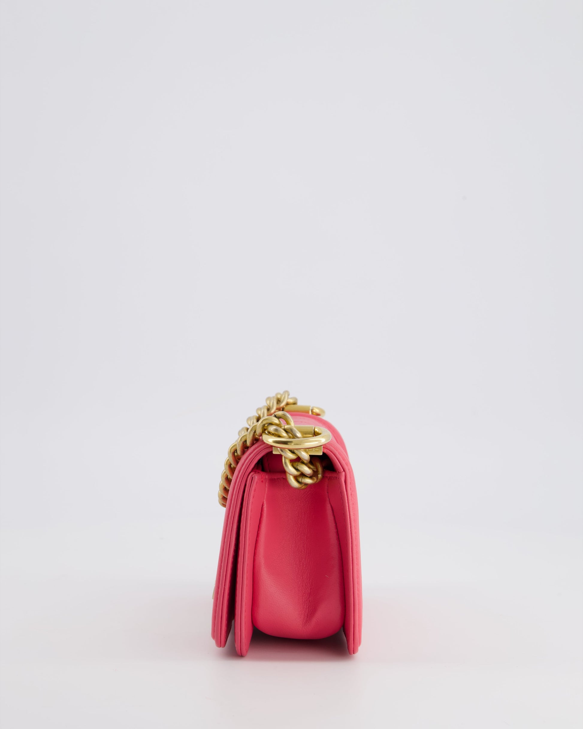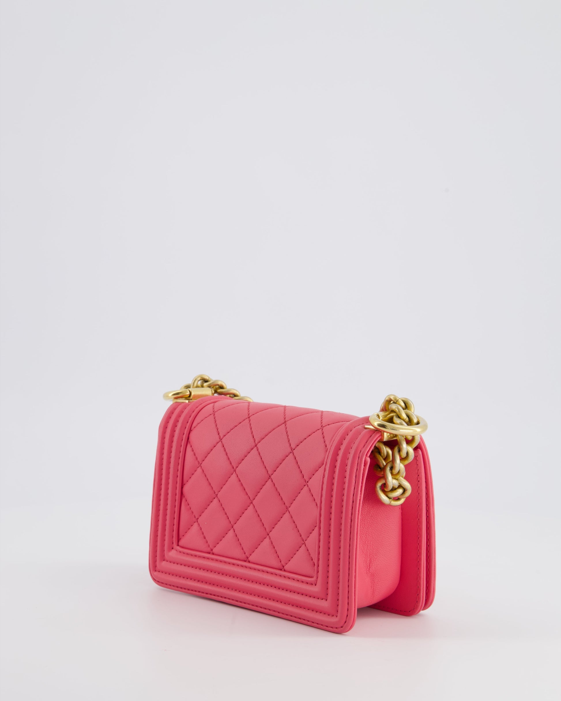 Chanel Punch Pink Mini Boy Bag in Lambskin Leather with Gold Hardware
