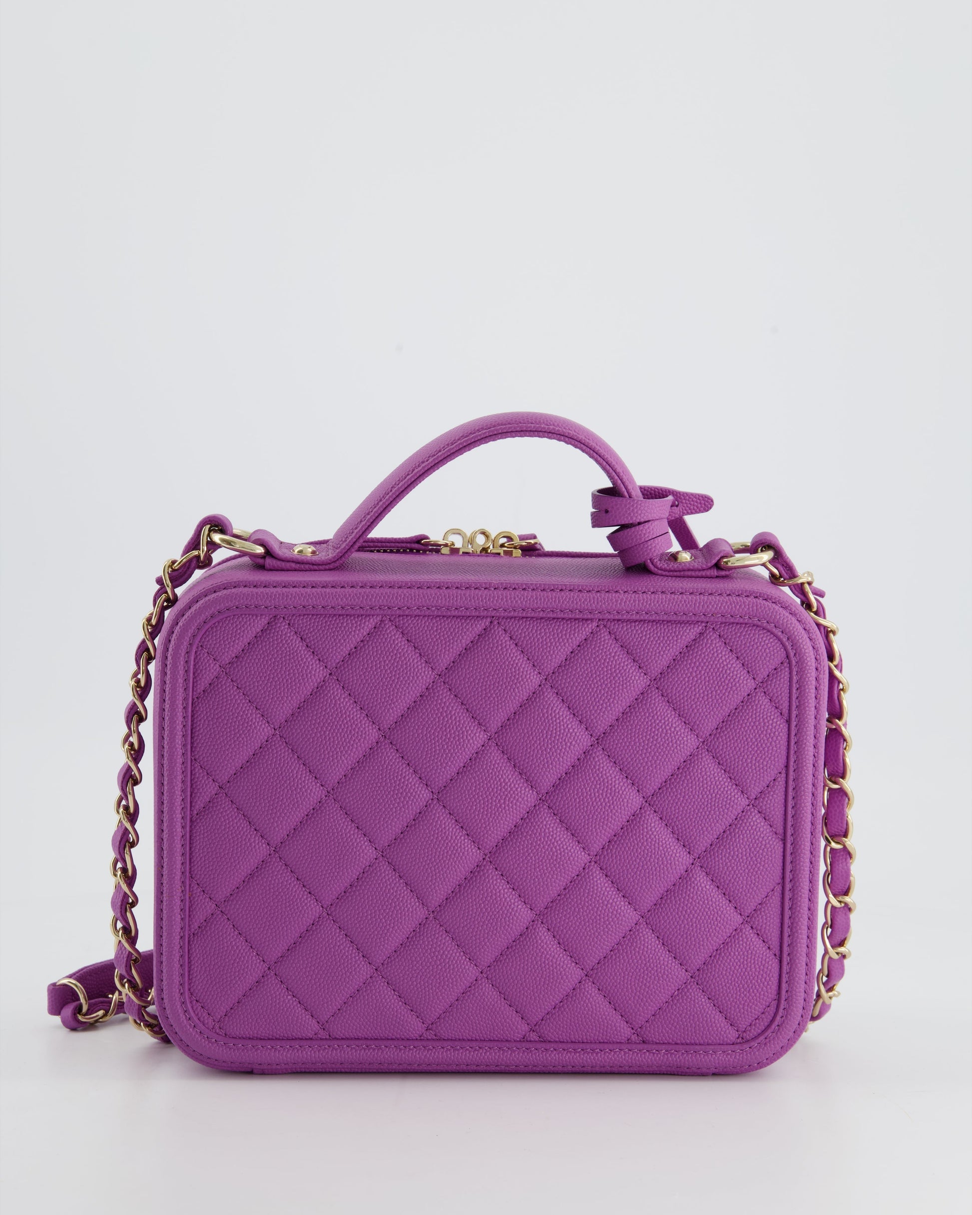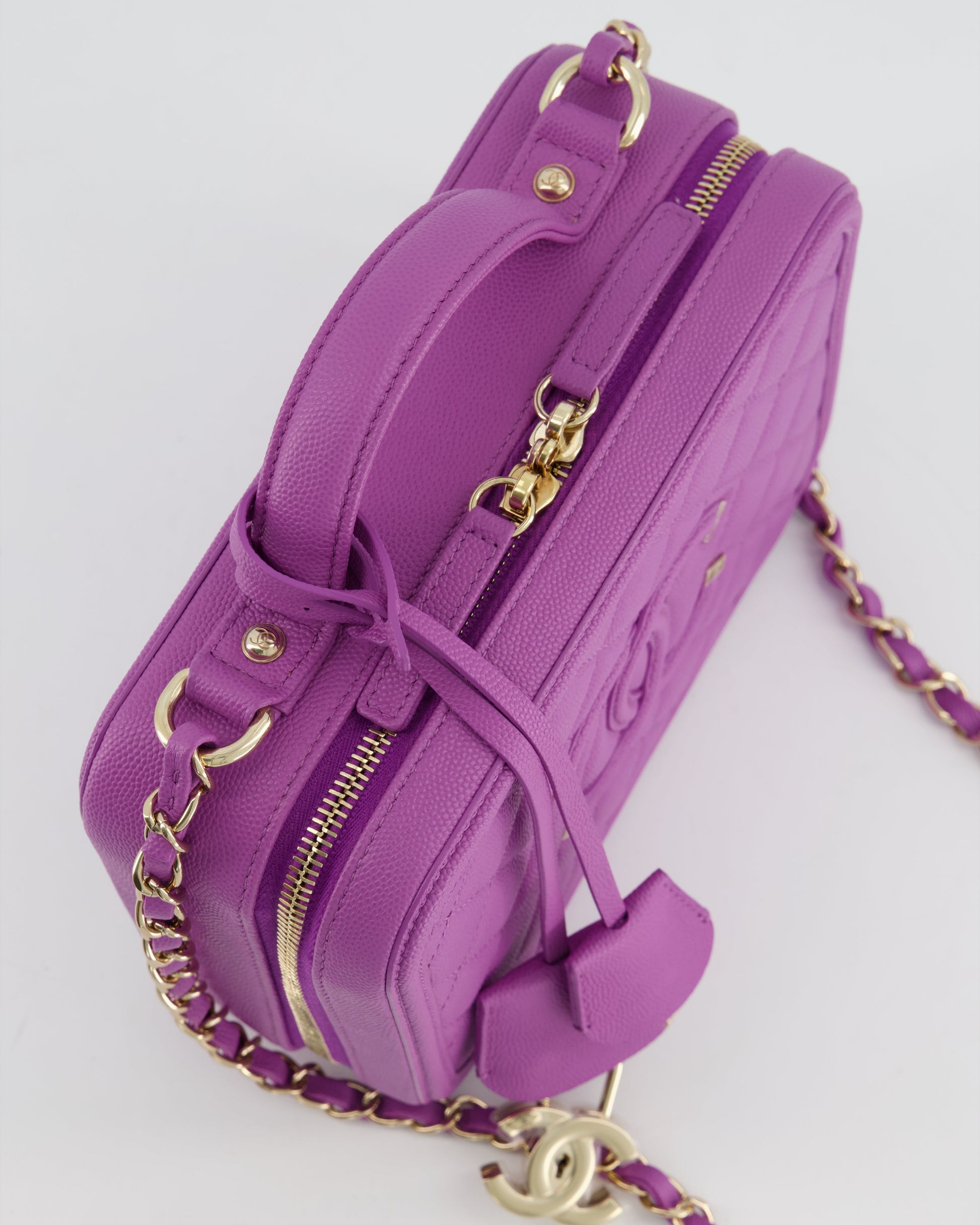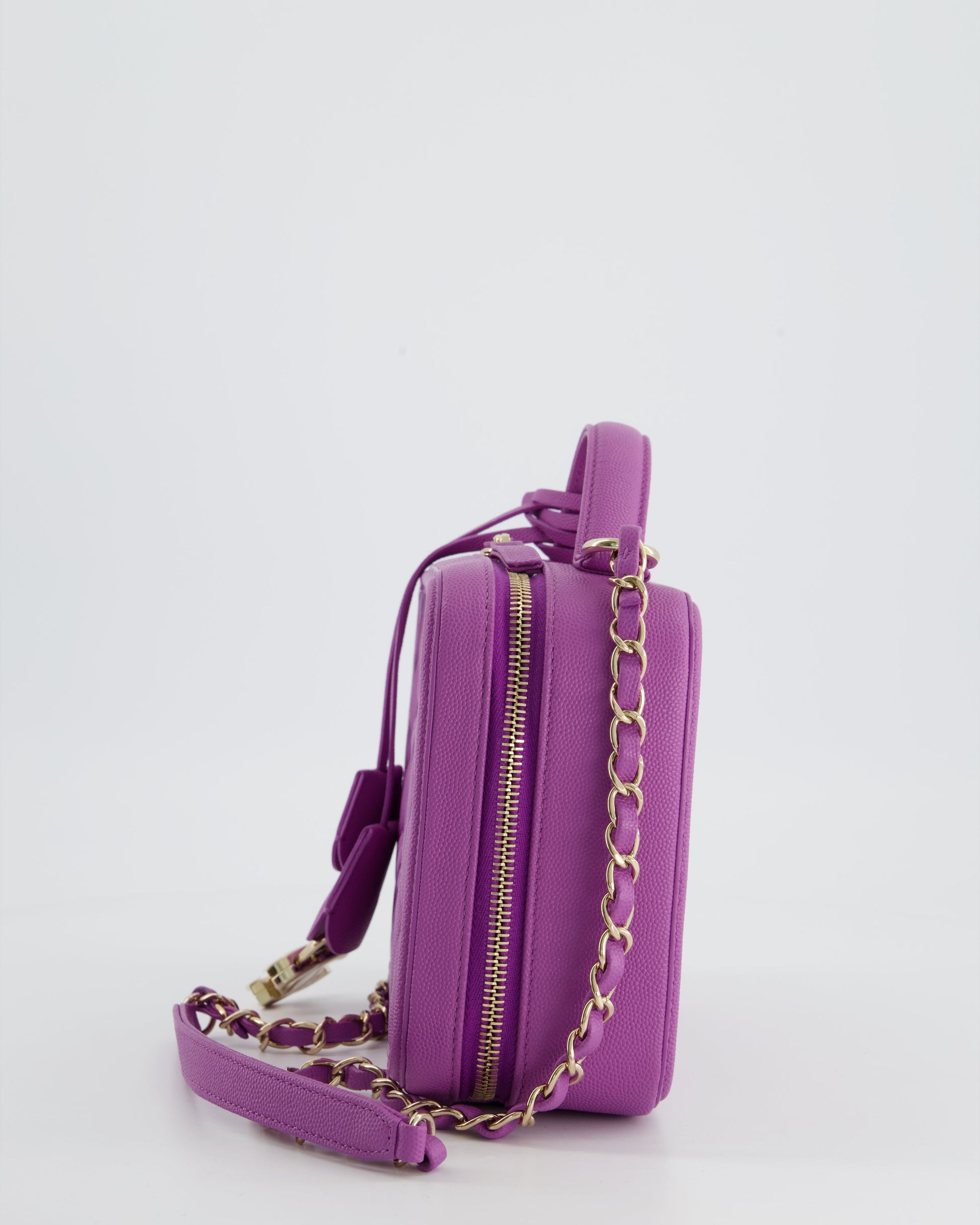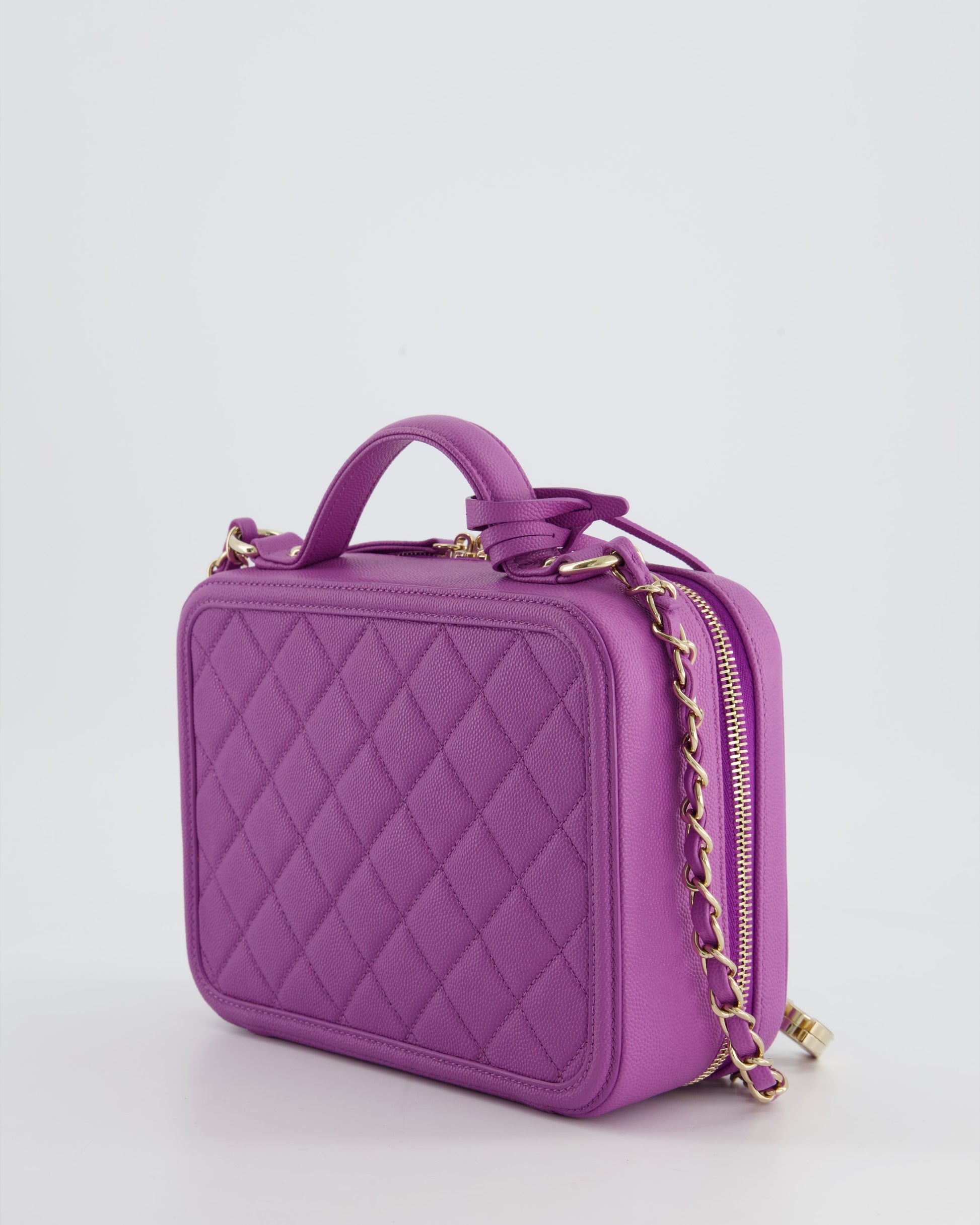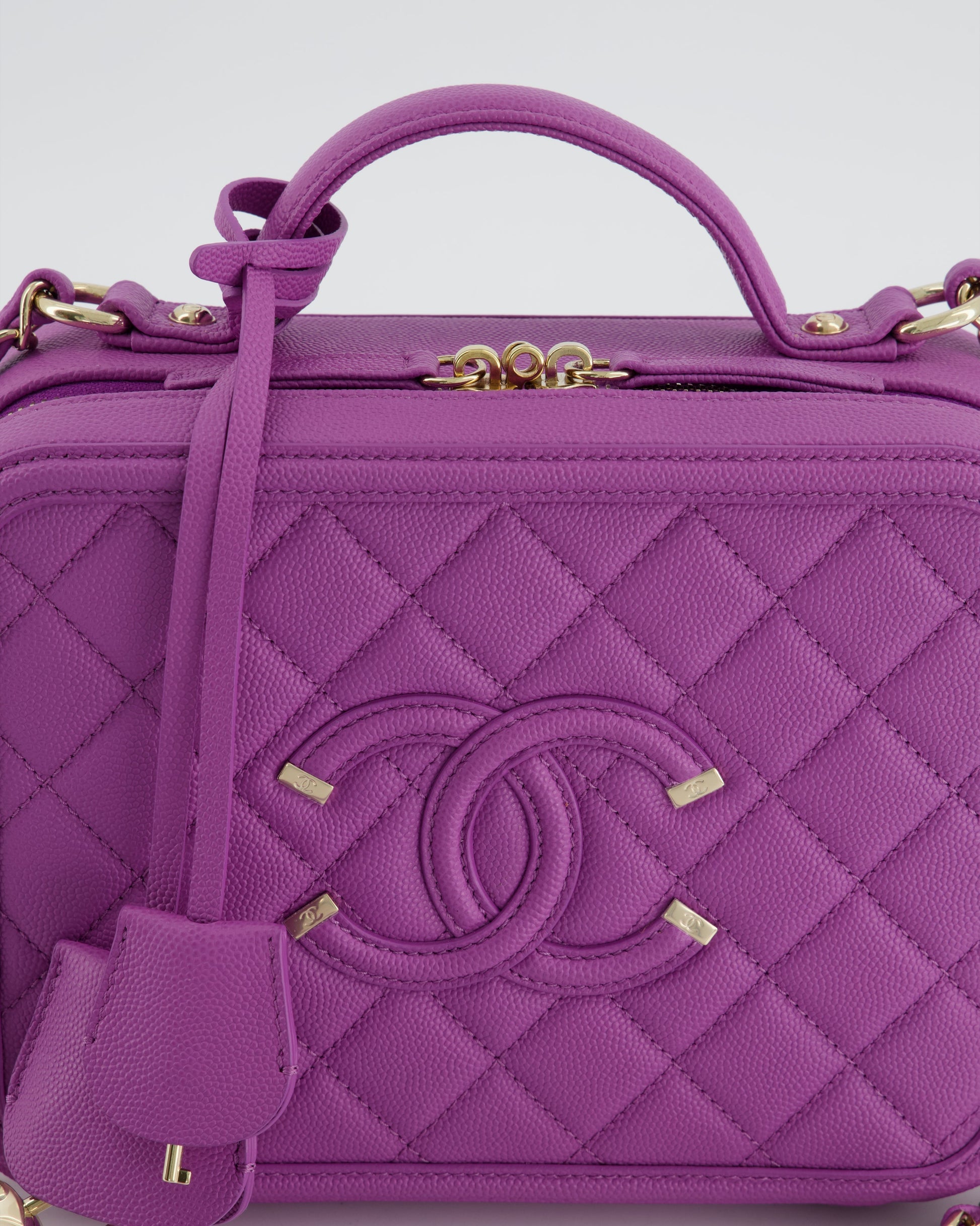 Chanel Purple CC Vanity Case Bag in Caviar Leather with Champagne Gold Hardware