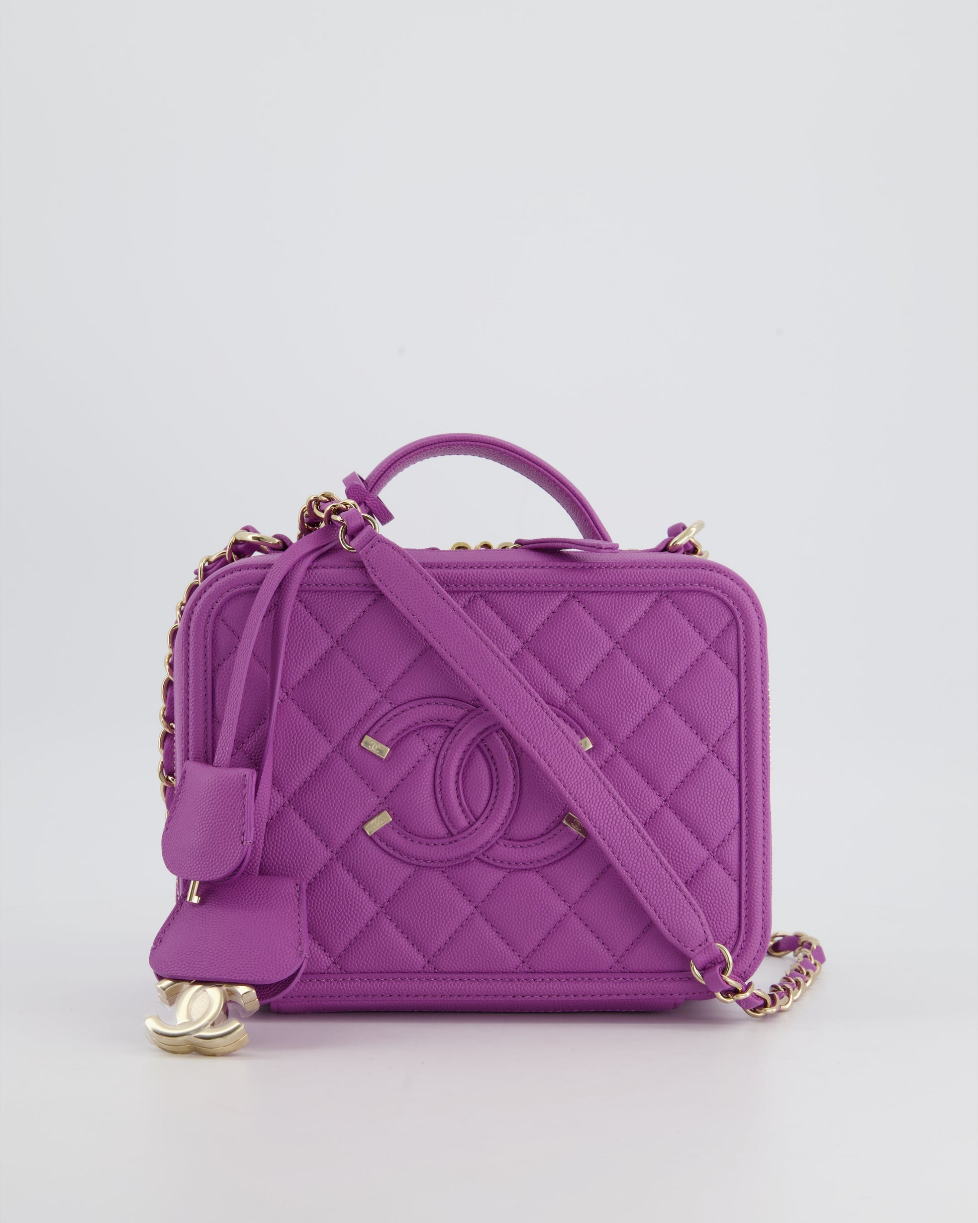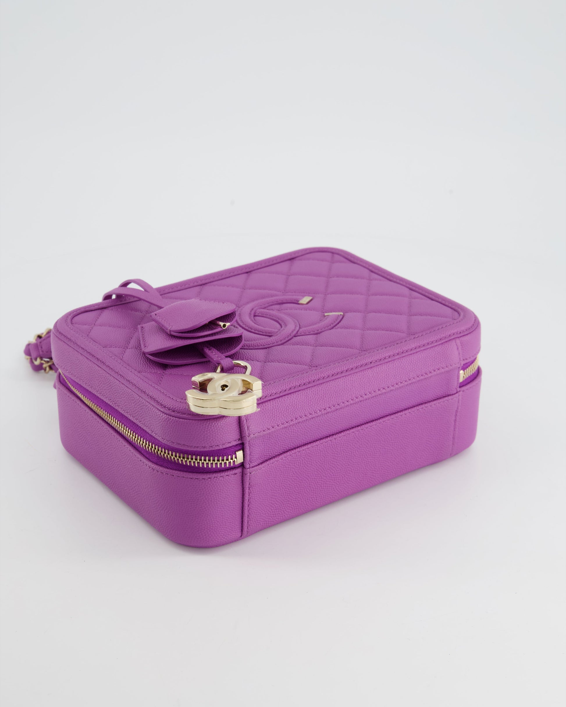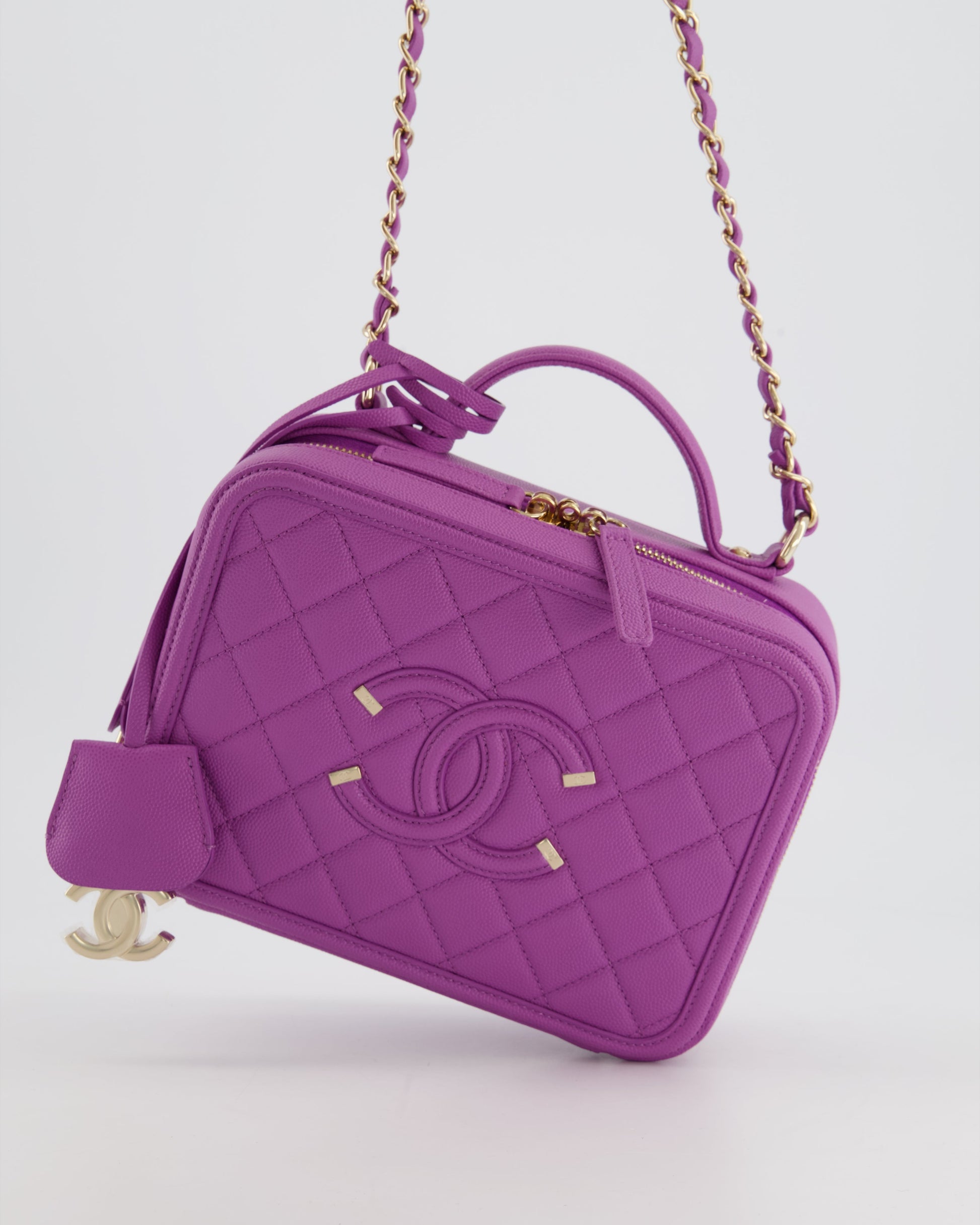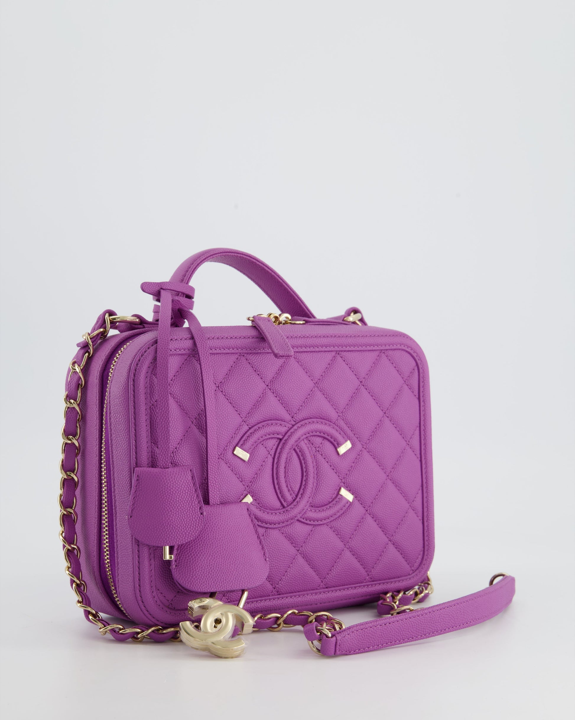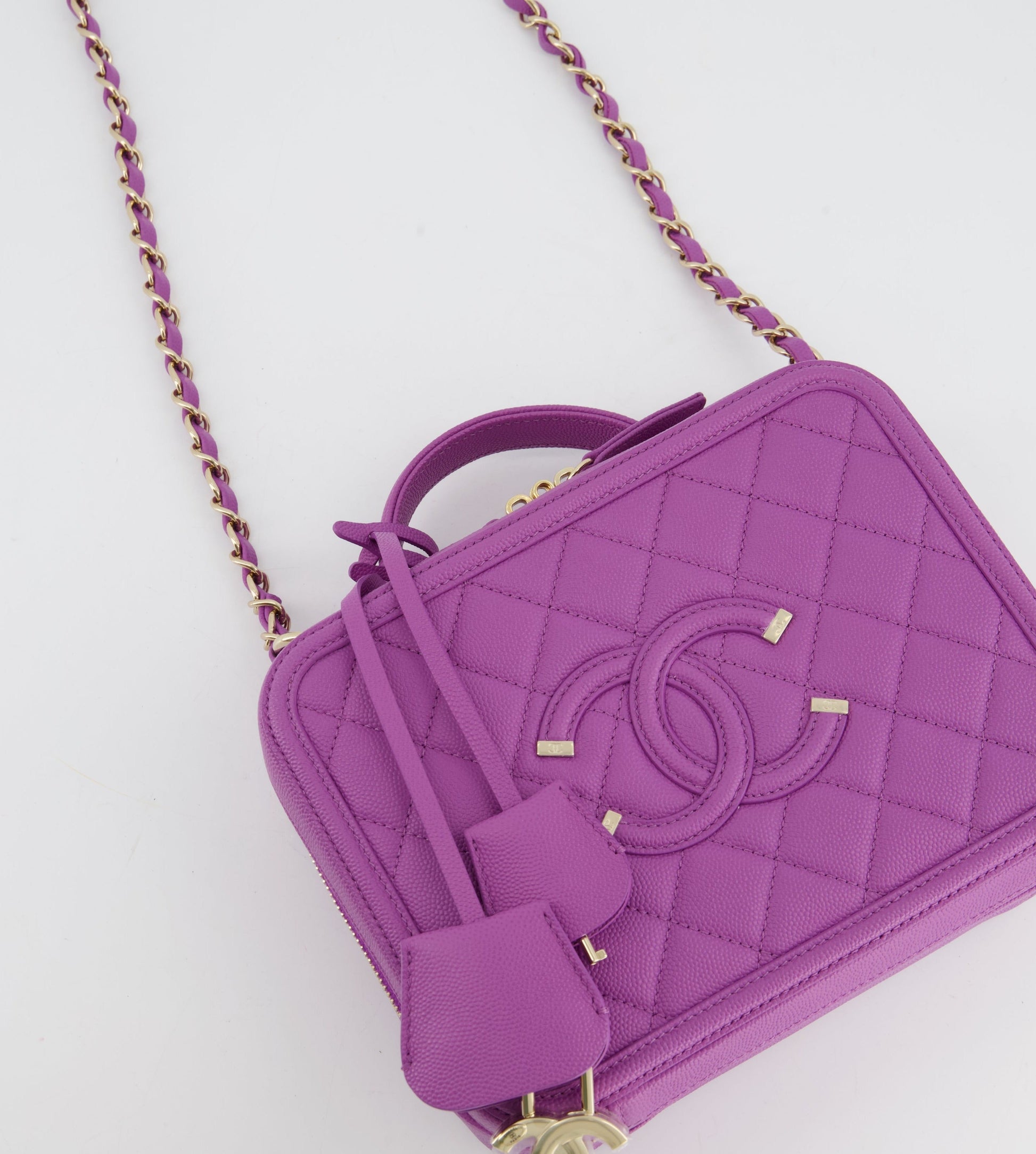 Chanel Purple CC Vanity Case Bag in Caviar Leather with Champagne Gold Hardware