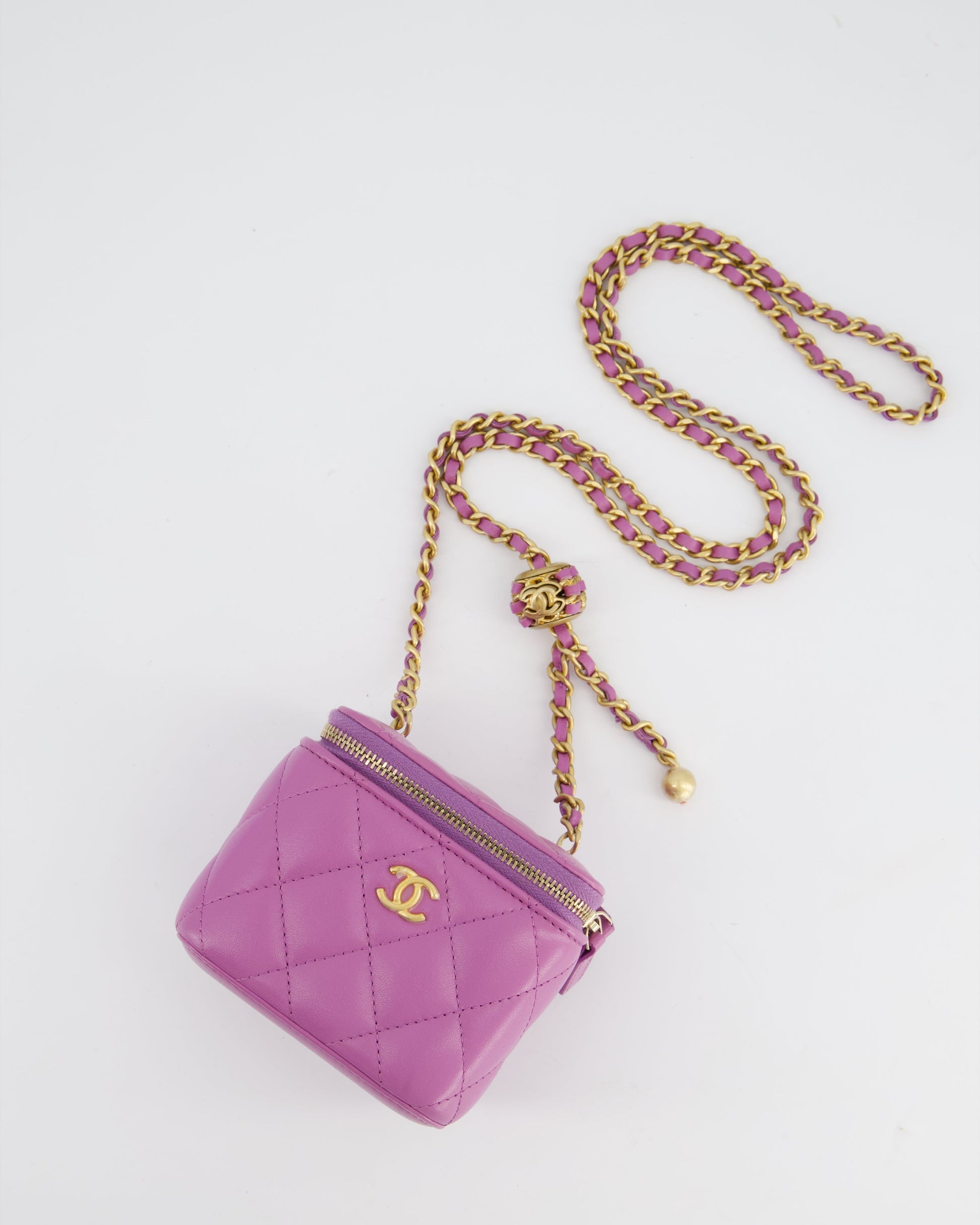 Chanel Purple Coco Crush Mini Vanity Bag in Lambskin Leather with Antique Gold Hardware
