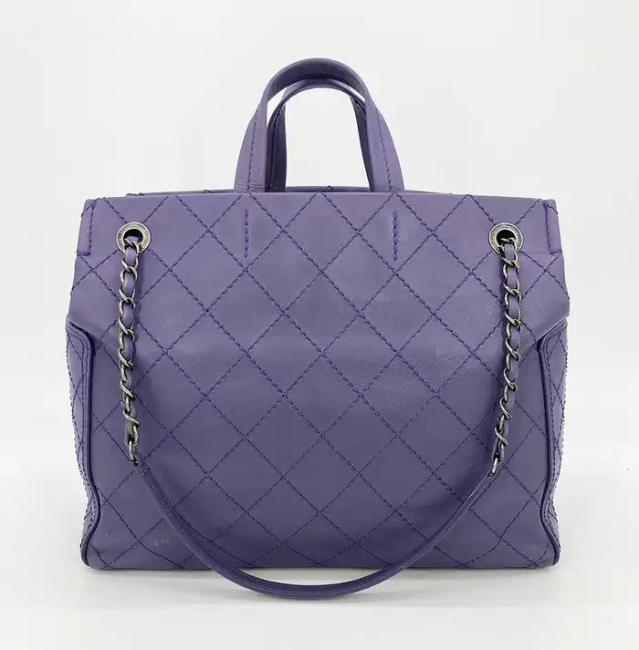 Chanel Purple Leather Top Stitch CC Pocket Tote