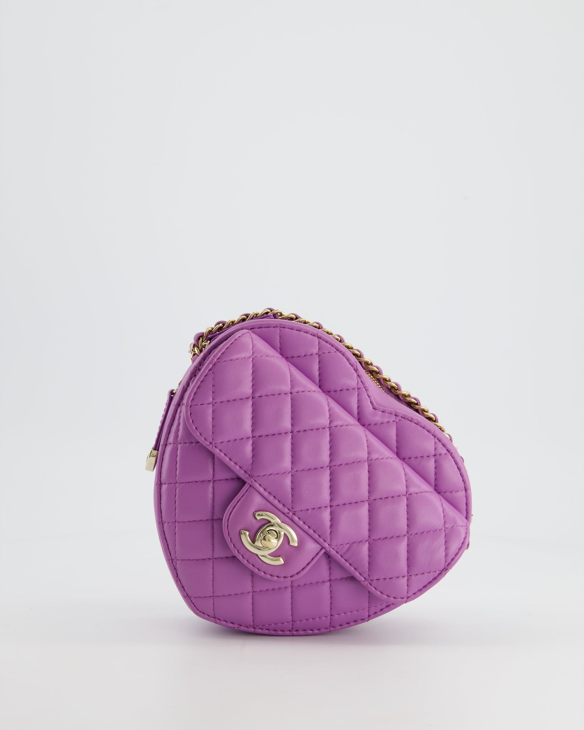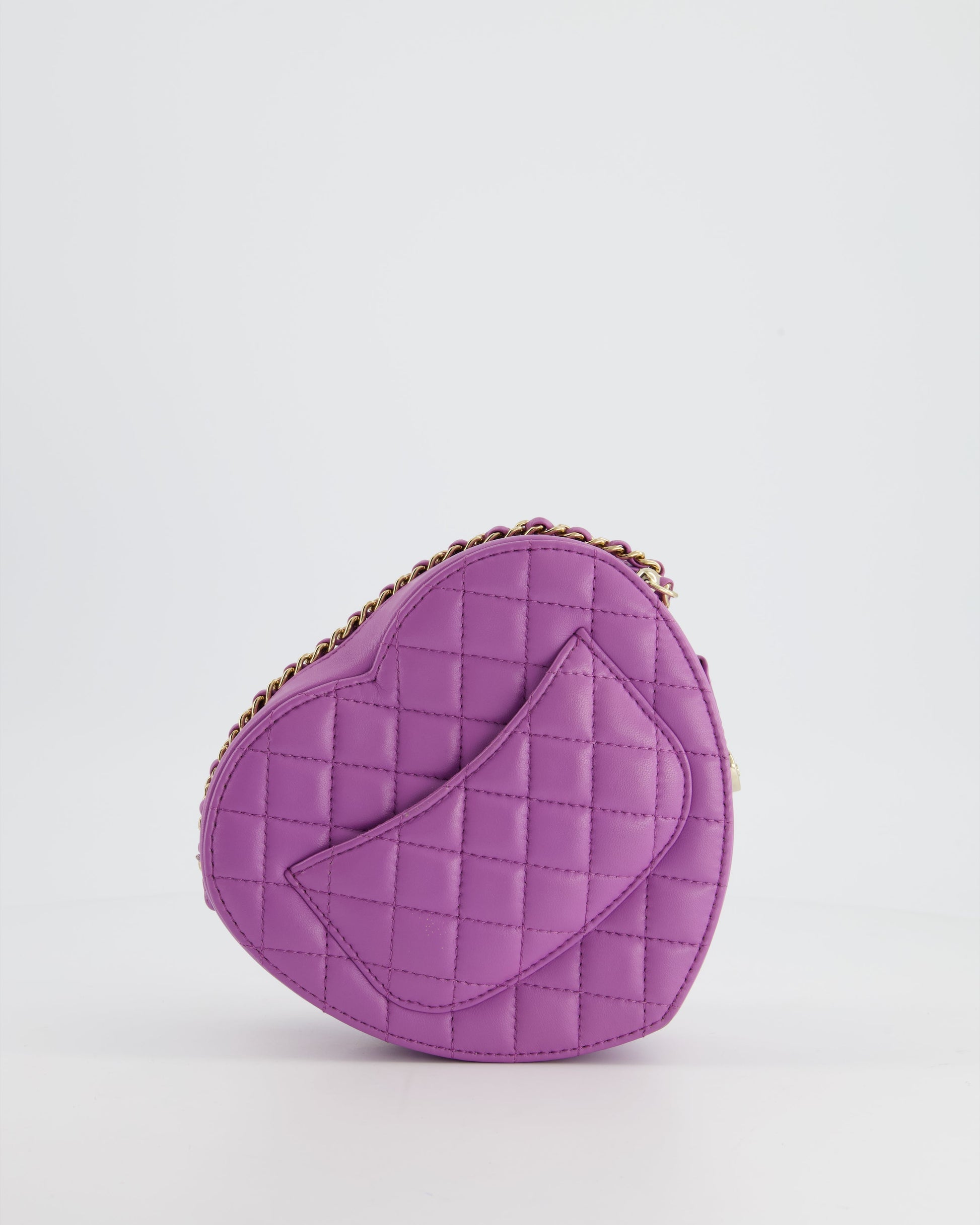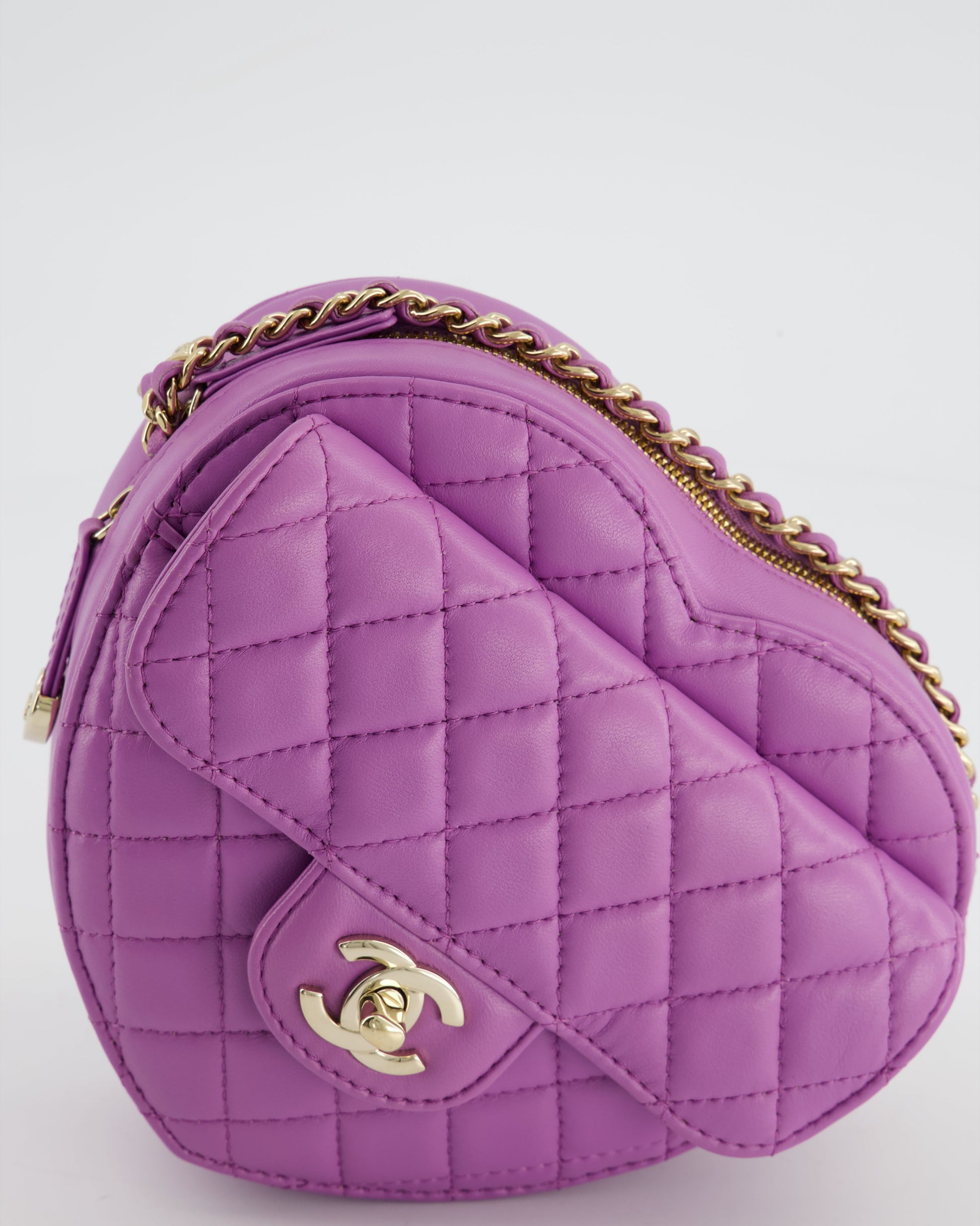 Chanel Purple Medium Heart Bag in Lambskin Leather with Champagne Gold Hardware