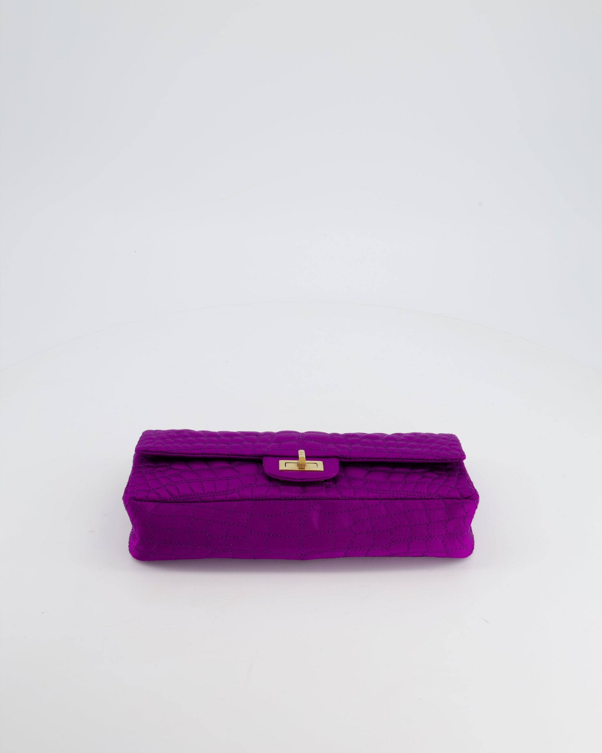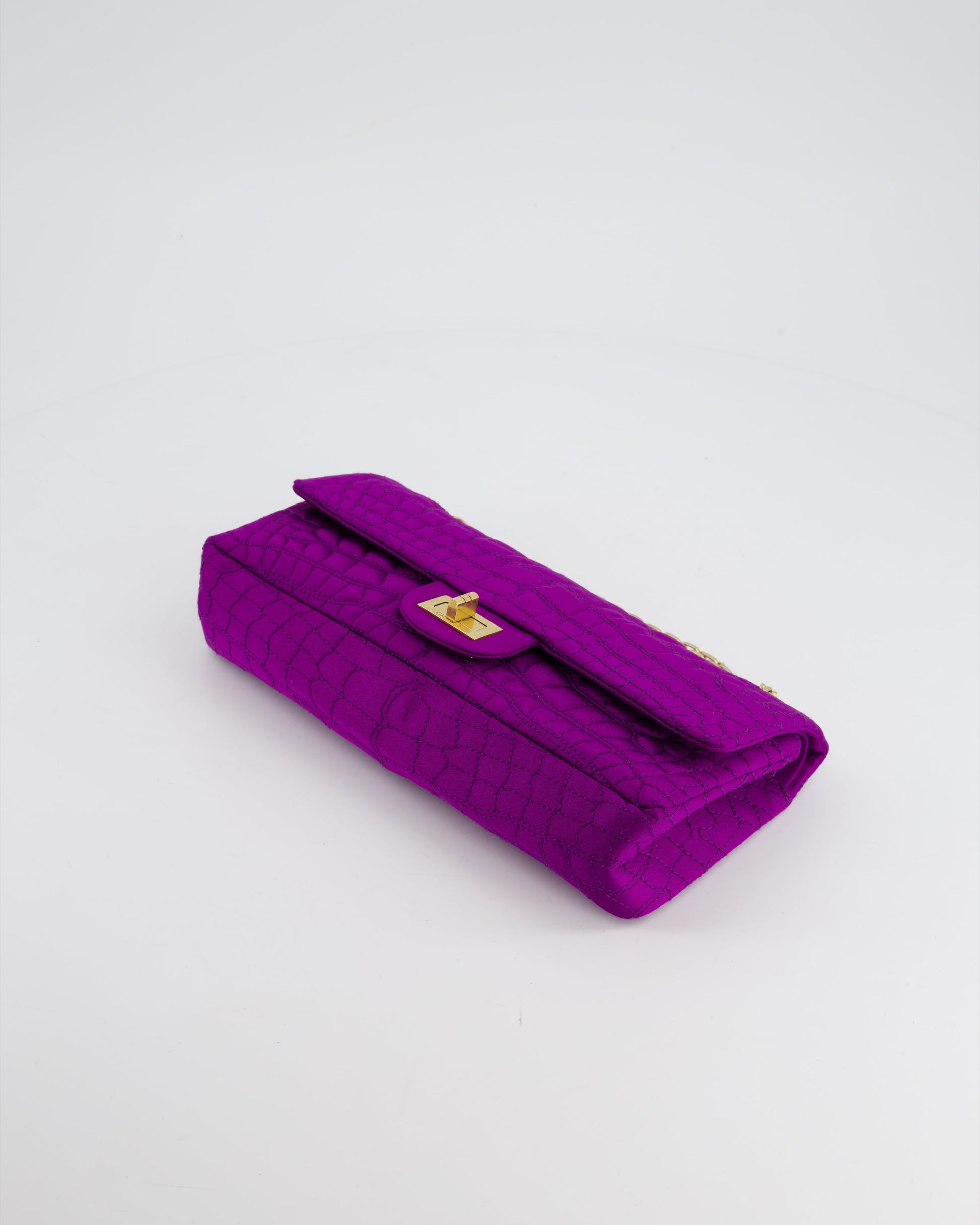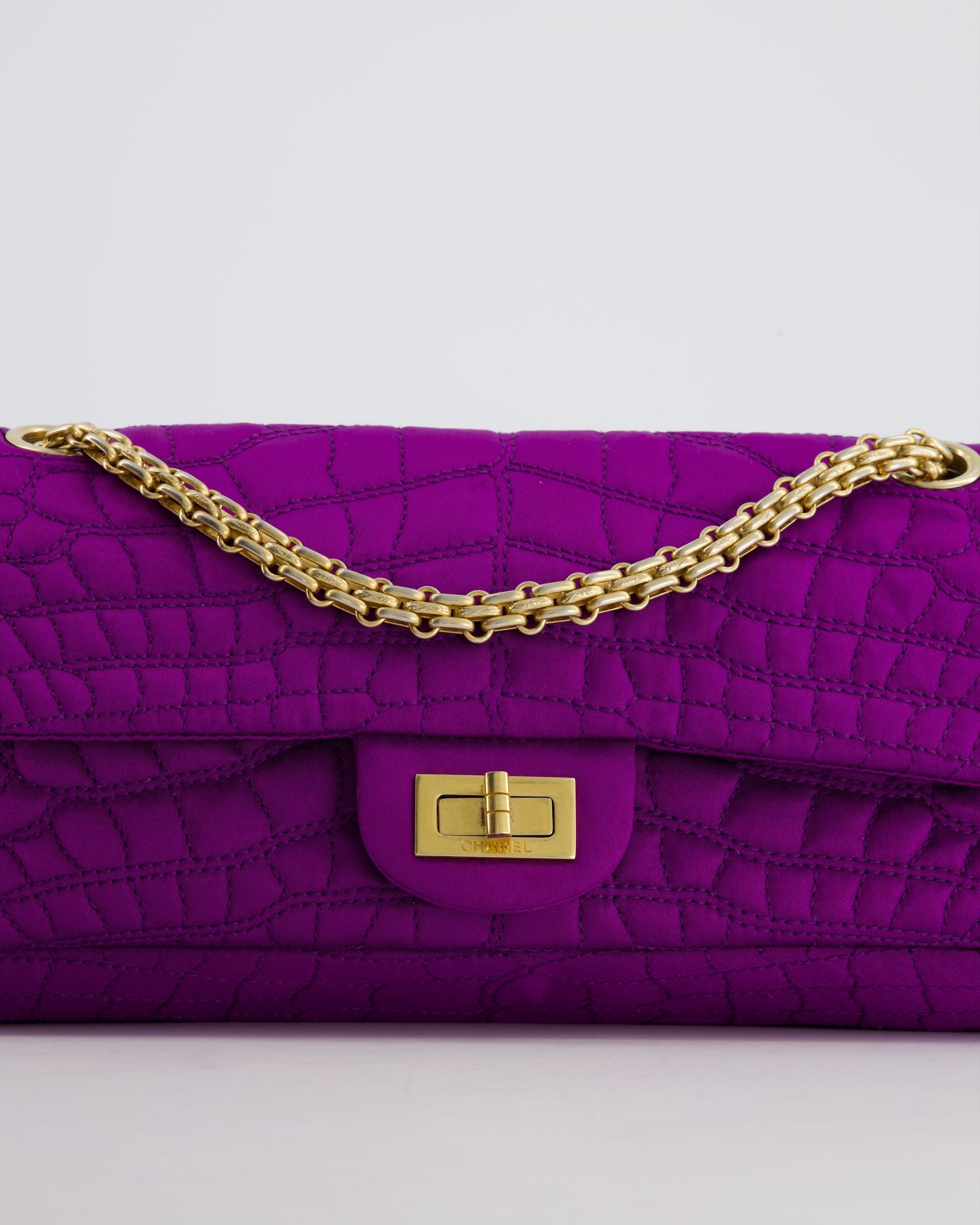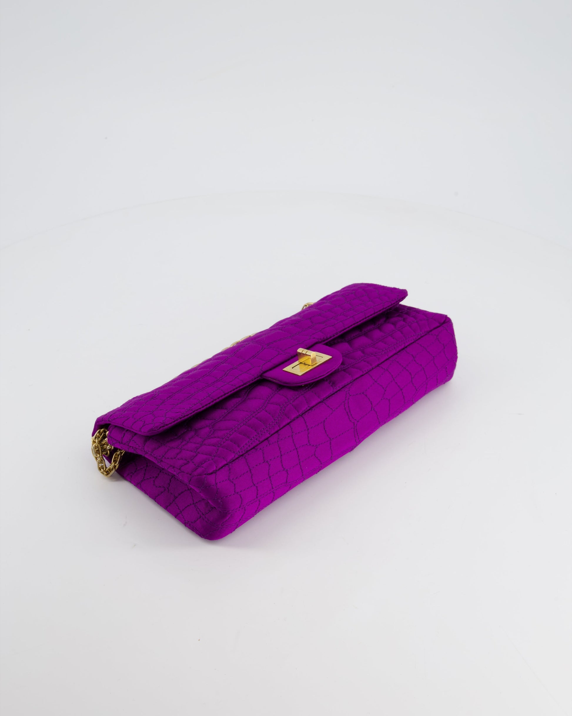 Chanel Purple Small Satin Croc Embossed 2.55 Reissue with Brushed Gold Hardware