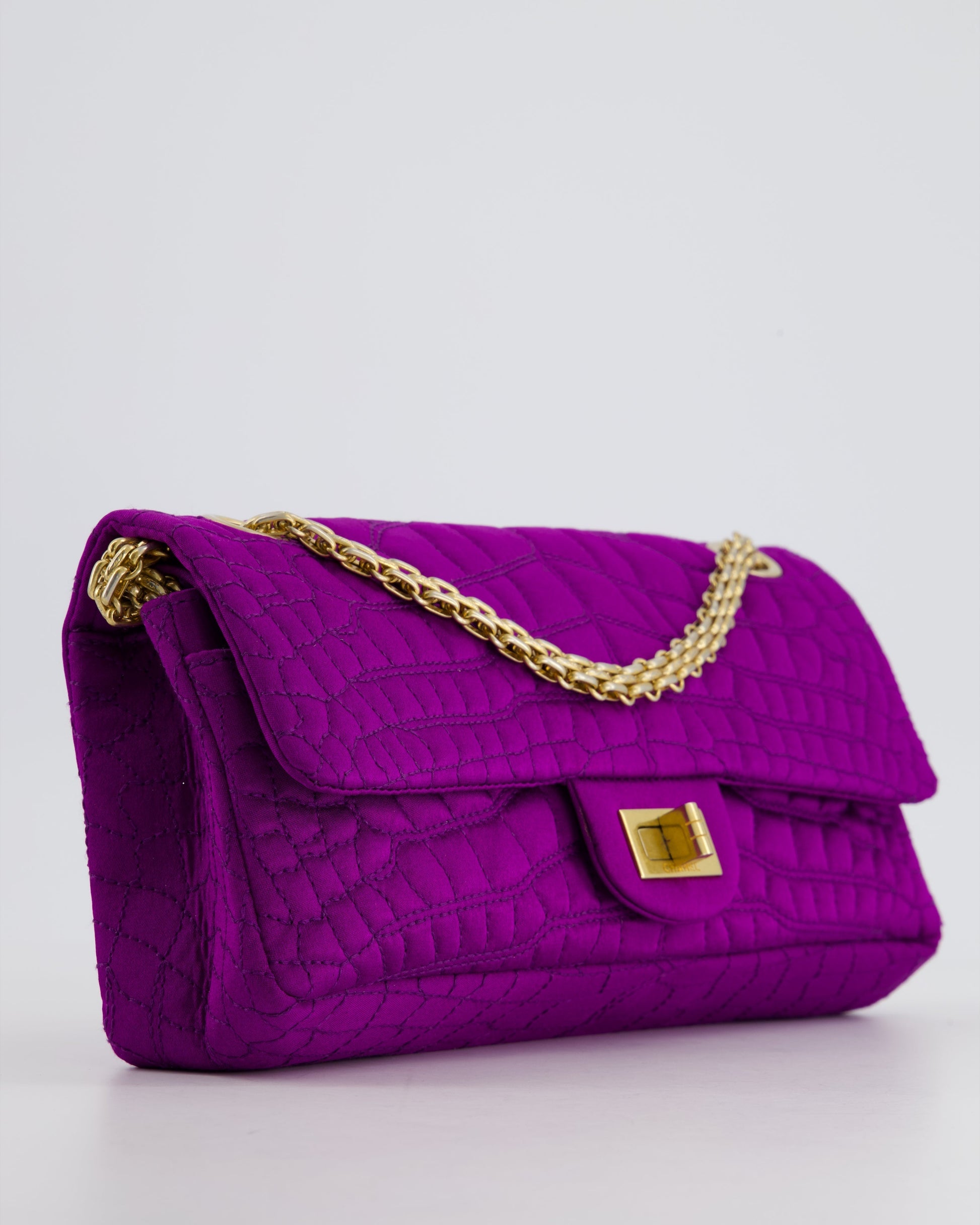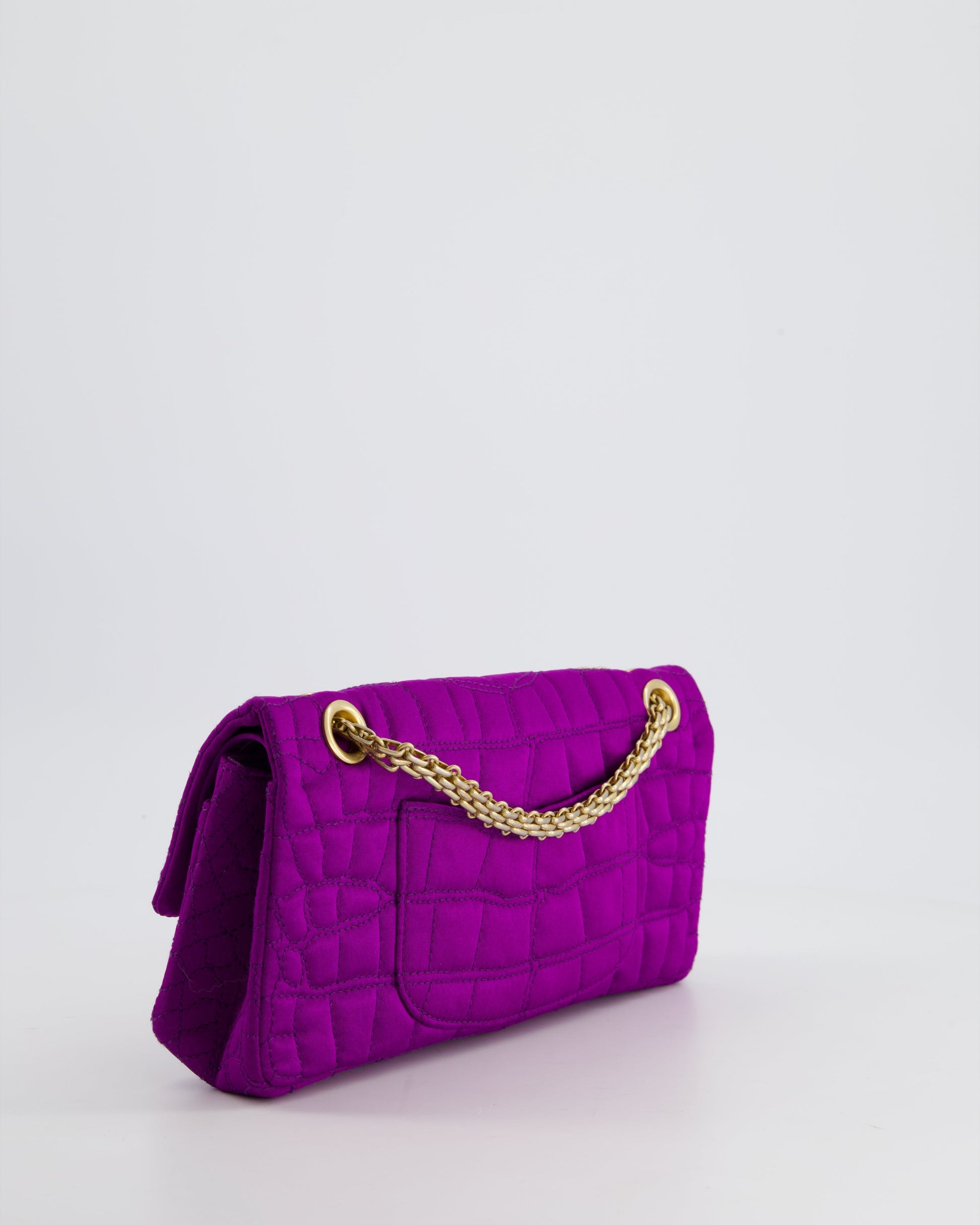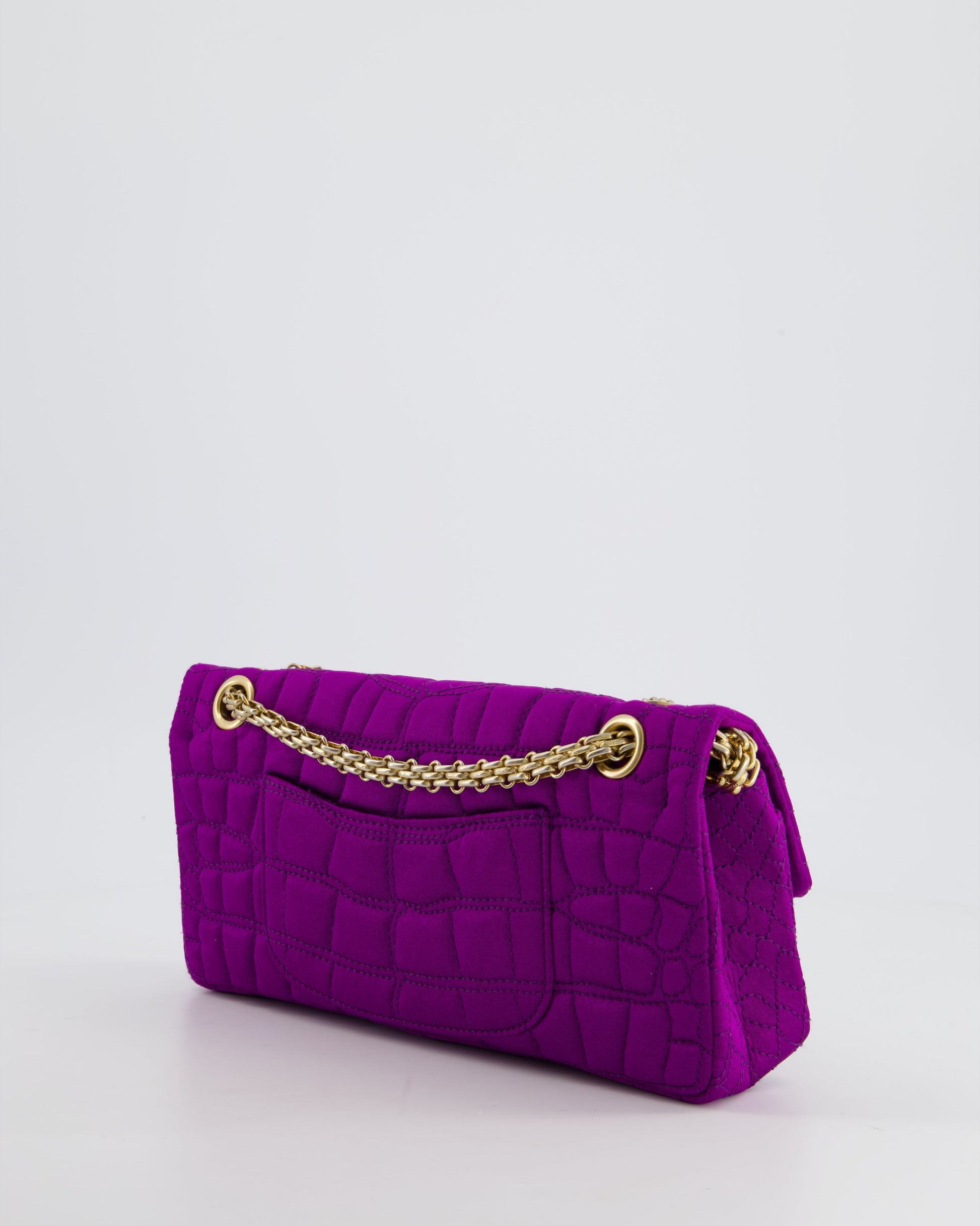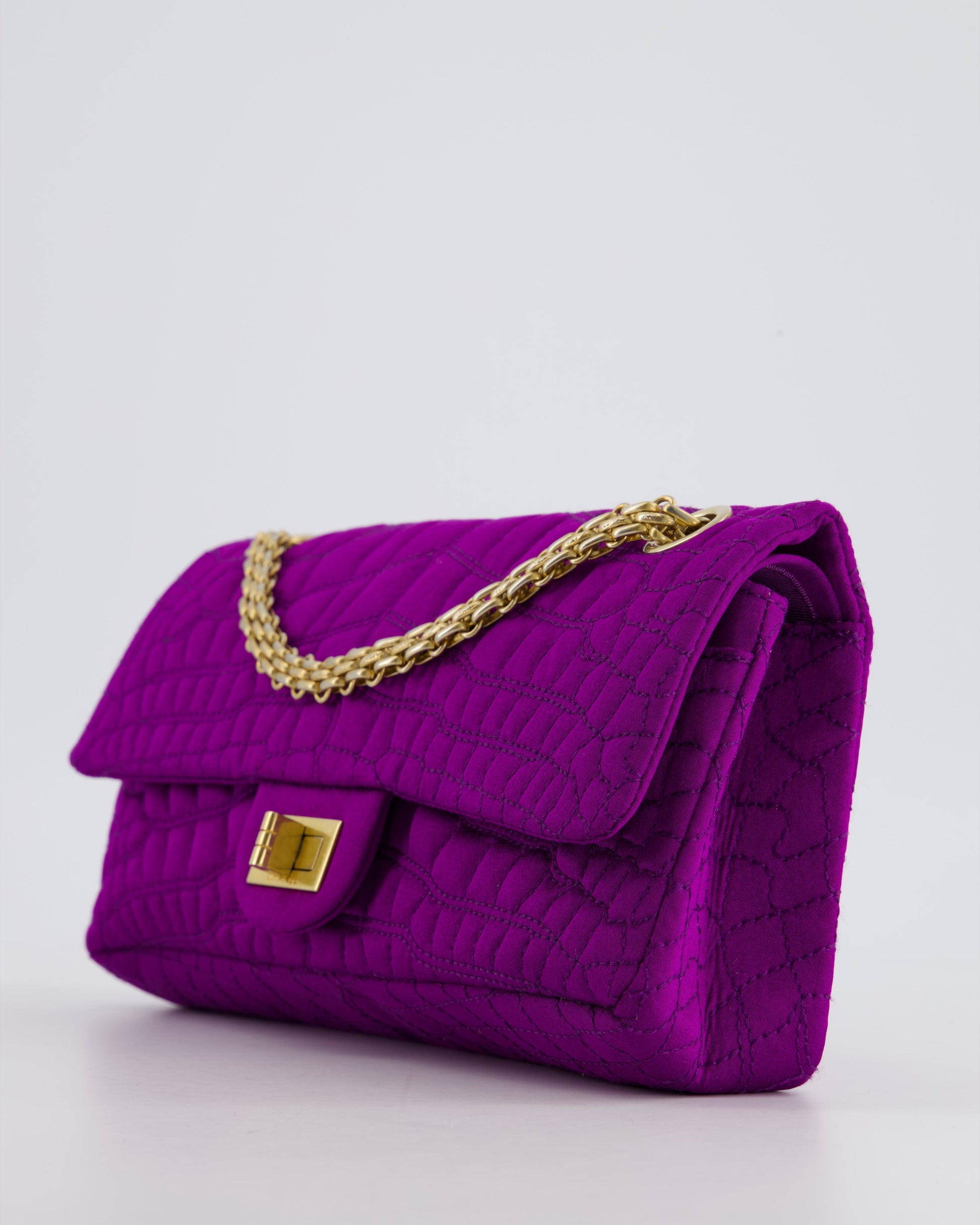 Chanel Purple Small Satin Croc Embossed 2.55 Reissue with Brushed Gold Hardware