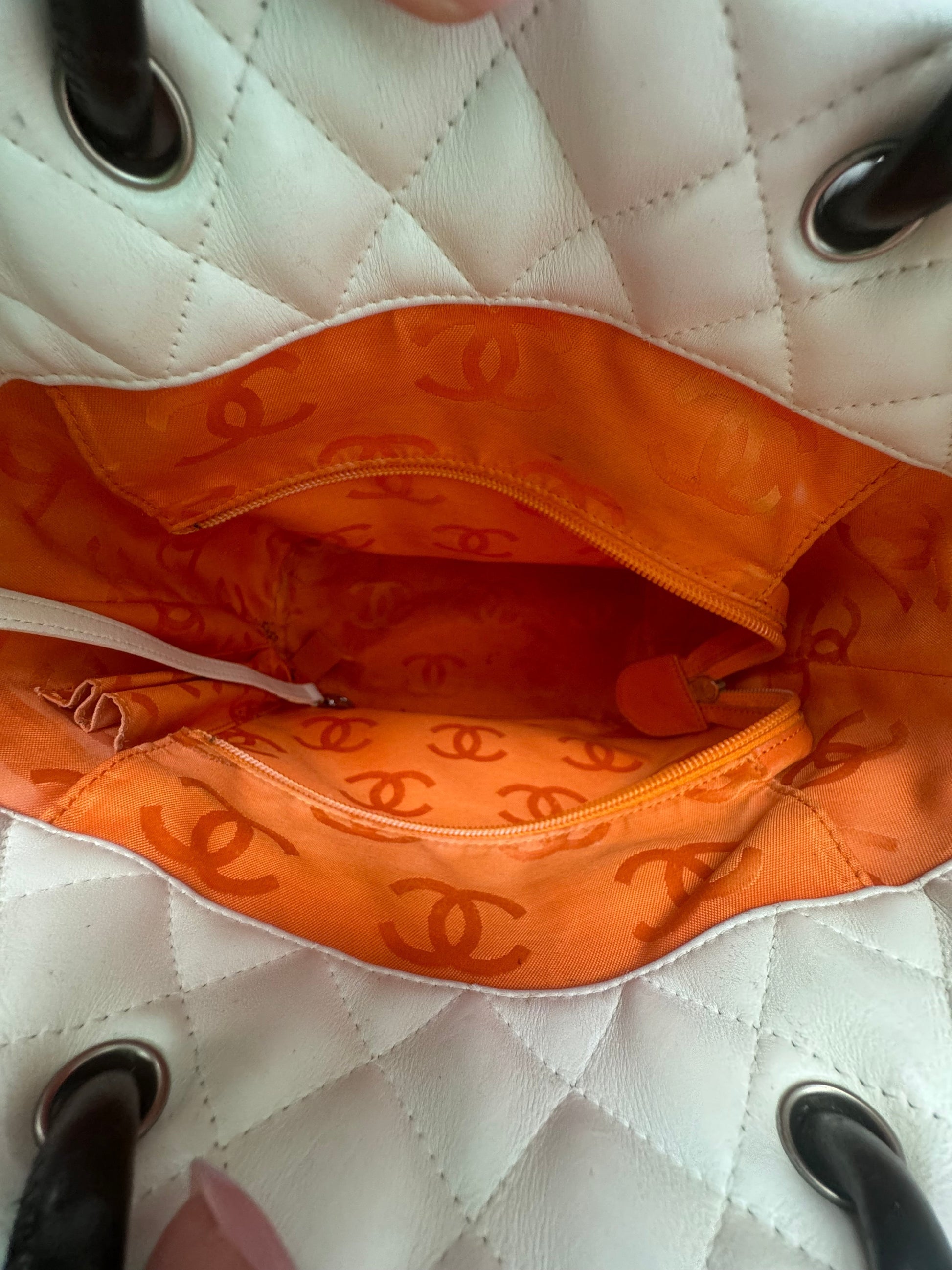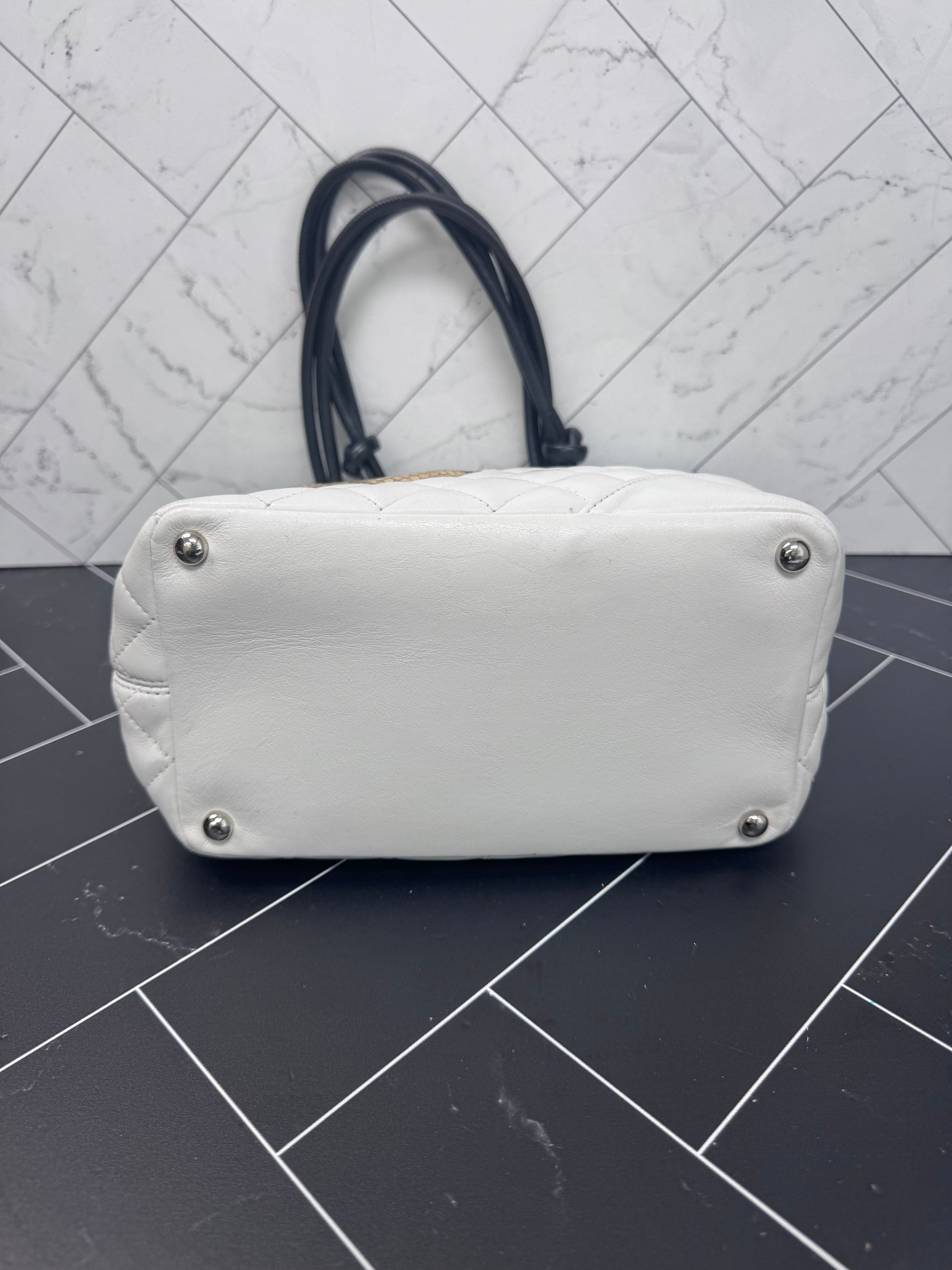 Chanel White Quilted Lambskin Python Medium Cambon Bucket Tote
