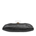This Chanel Black Python Clutch is in excellent plus condition. Elegantly designed, this classic exotic is a smart addition to any collection. Sleek black python with cast resin “perfume stopper” top clasp. Dust bag included.