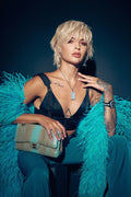 This stunning shoulder bag is crafted of python in Blue and Brown accents.