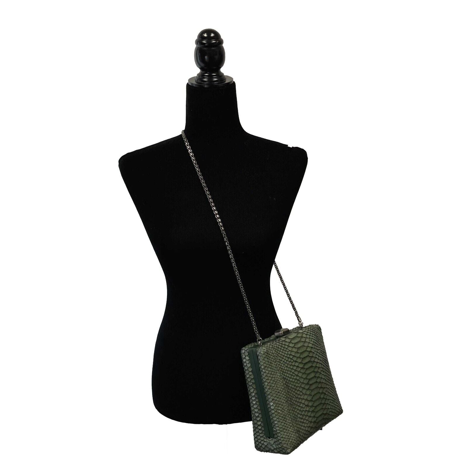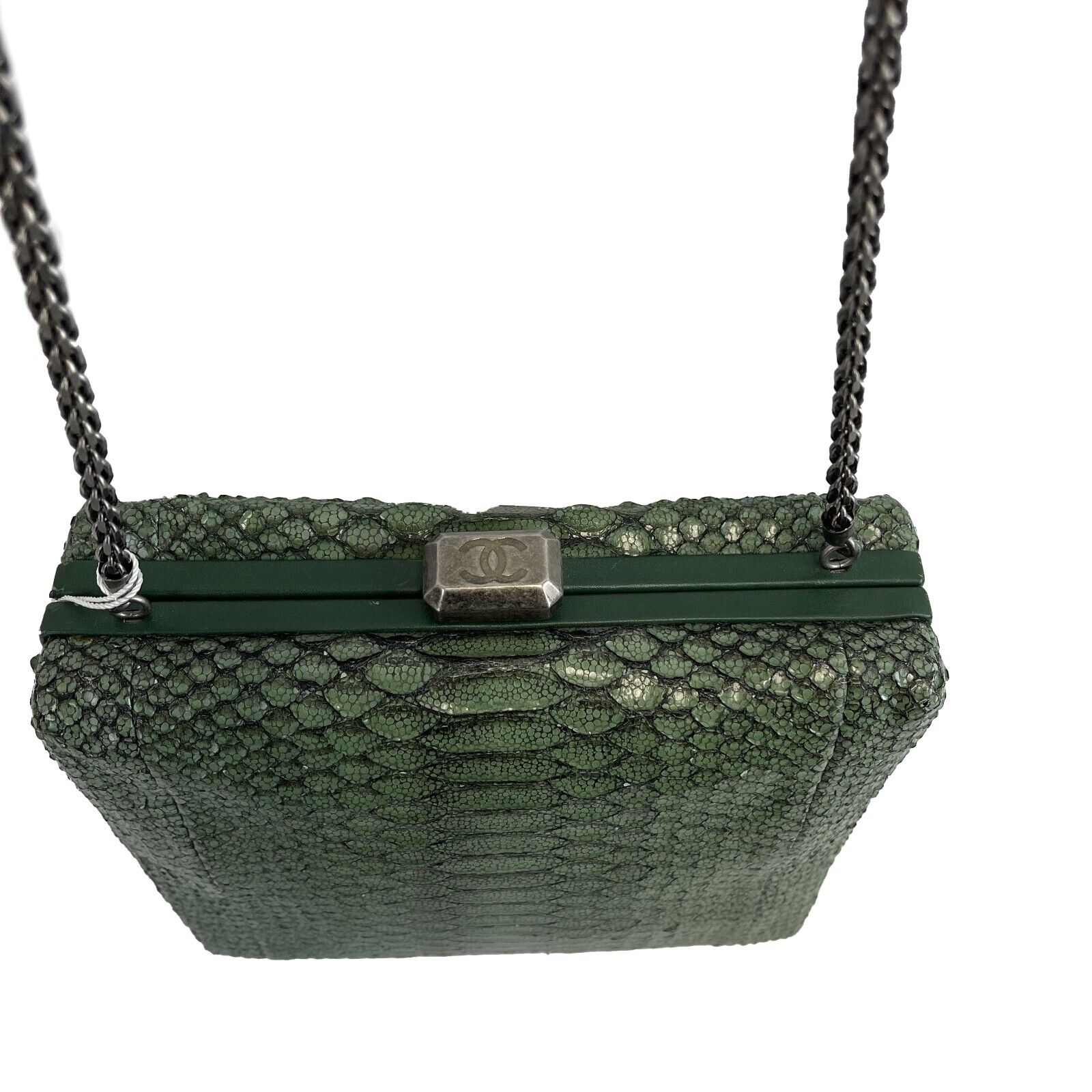 CHANEL - Python Snakeskin Green CC Kiss lock Shoulder Bag / Crossbody