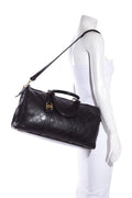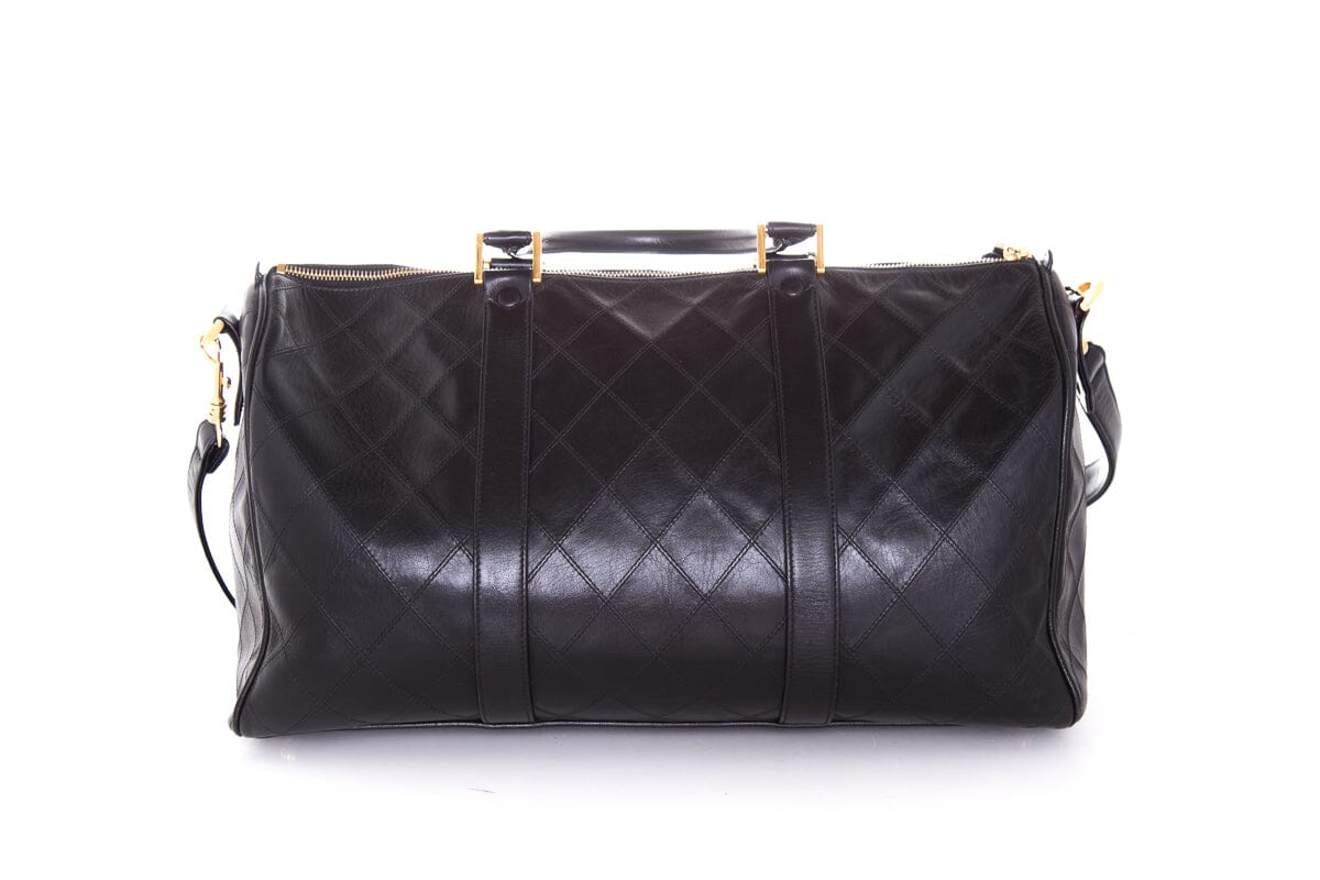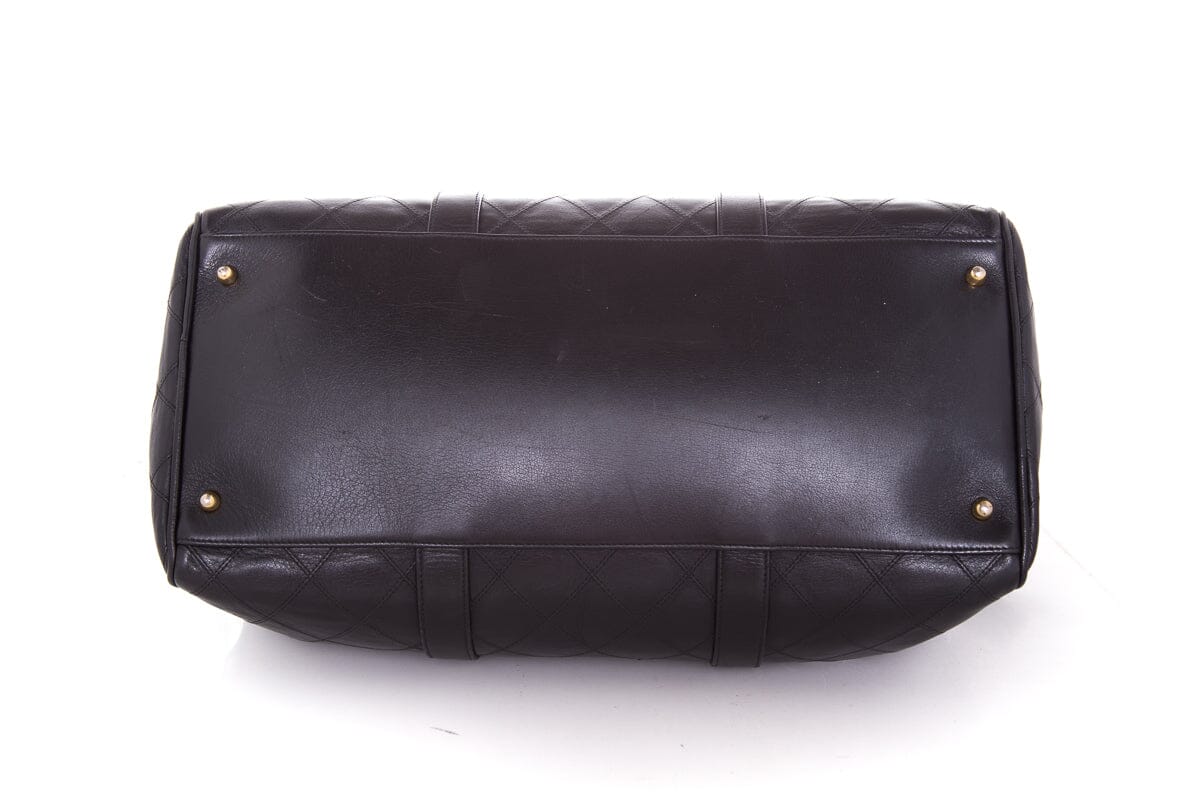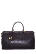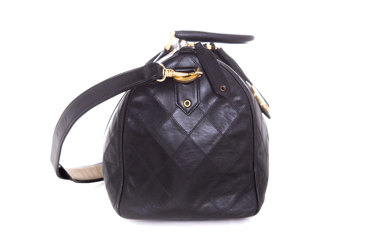 Chanel Quilted Lambskin Boston Duffle Tote With Strap; Gold tone Hardware, CC Logo Luggage Tab. This item is in good condition.