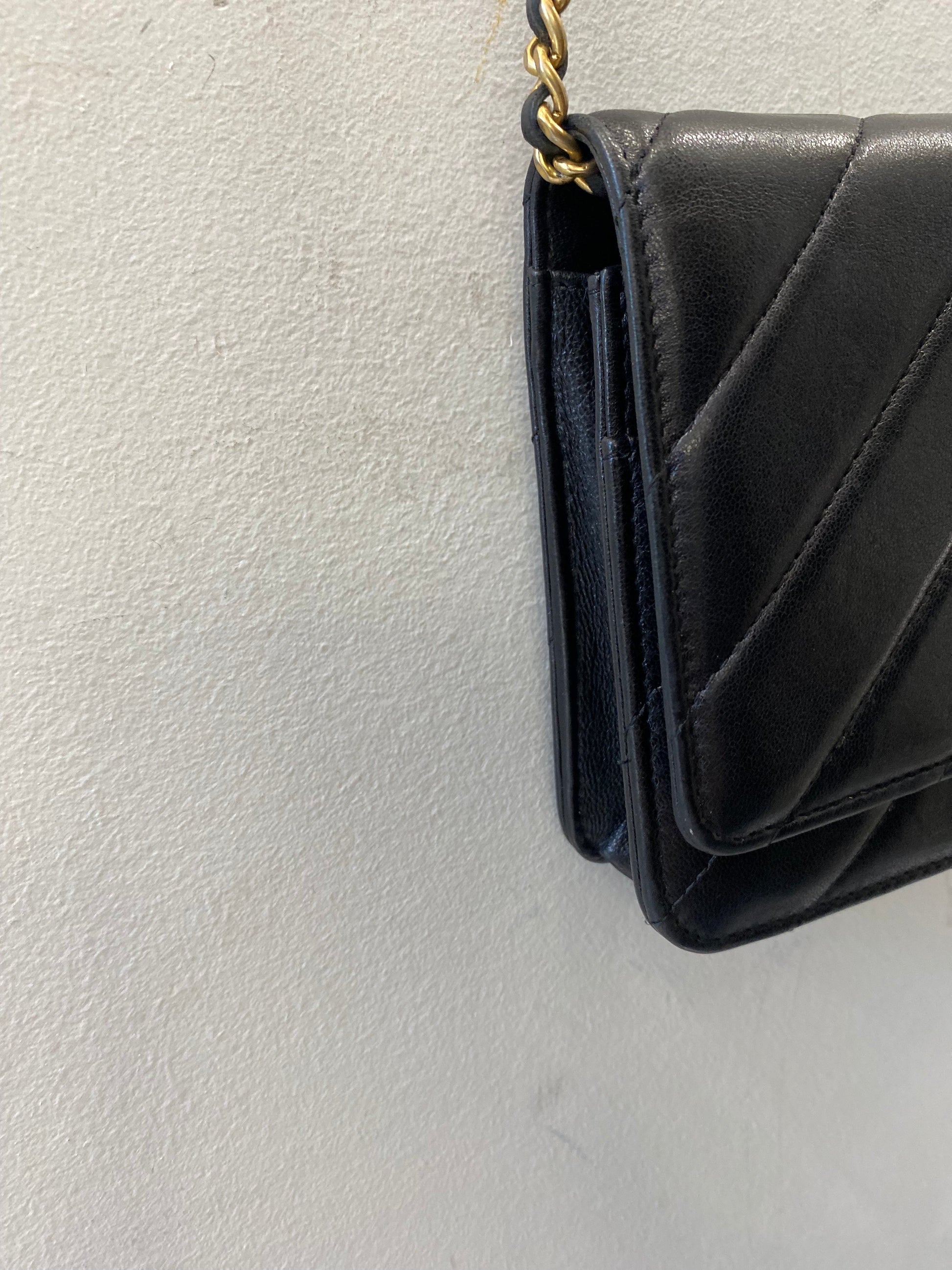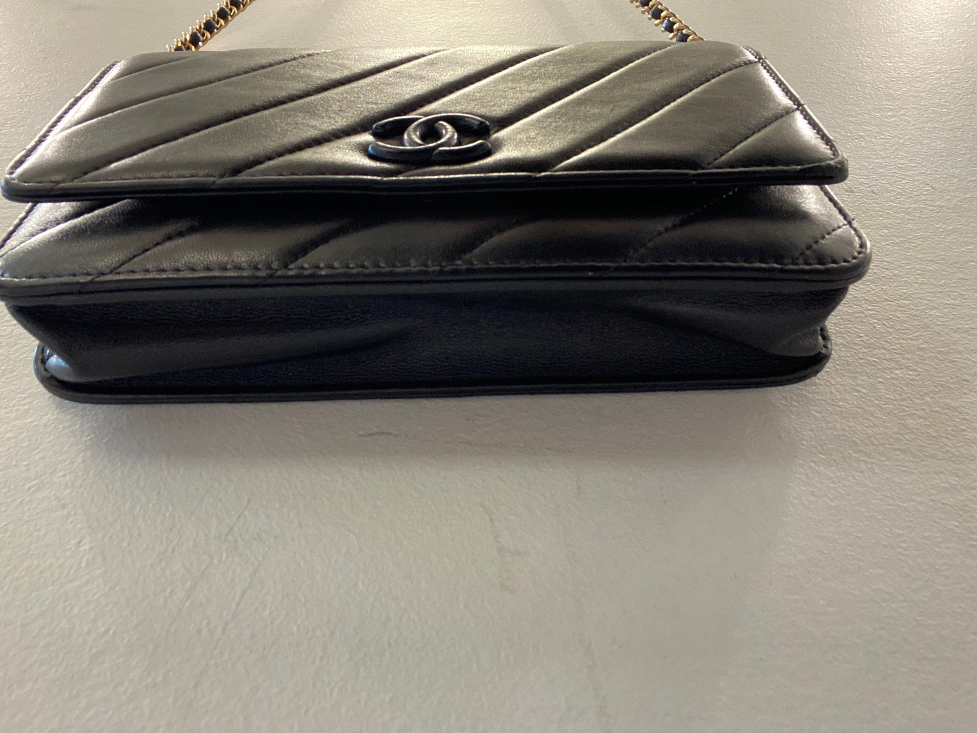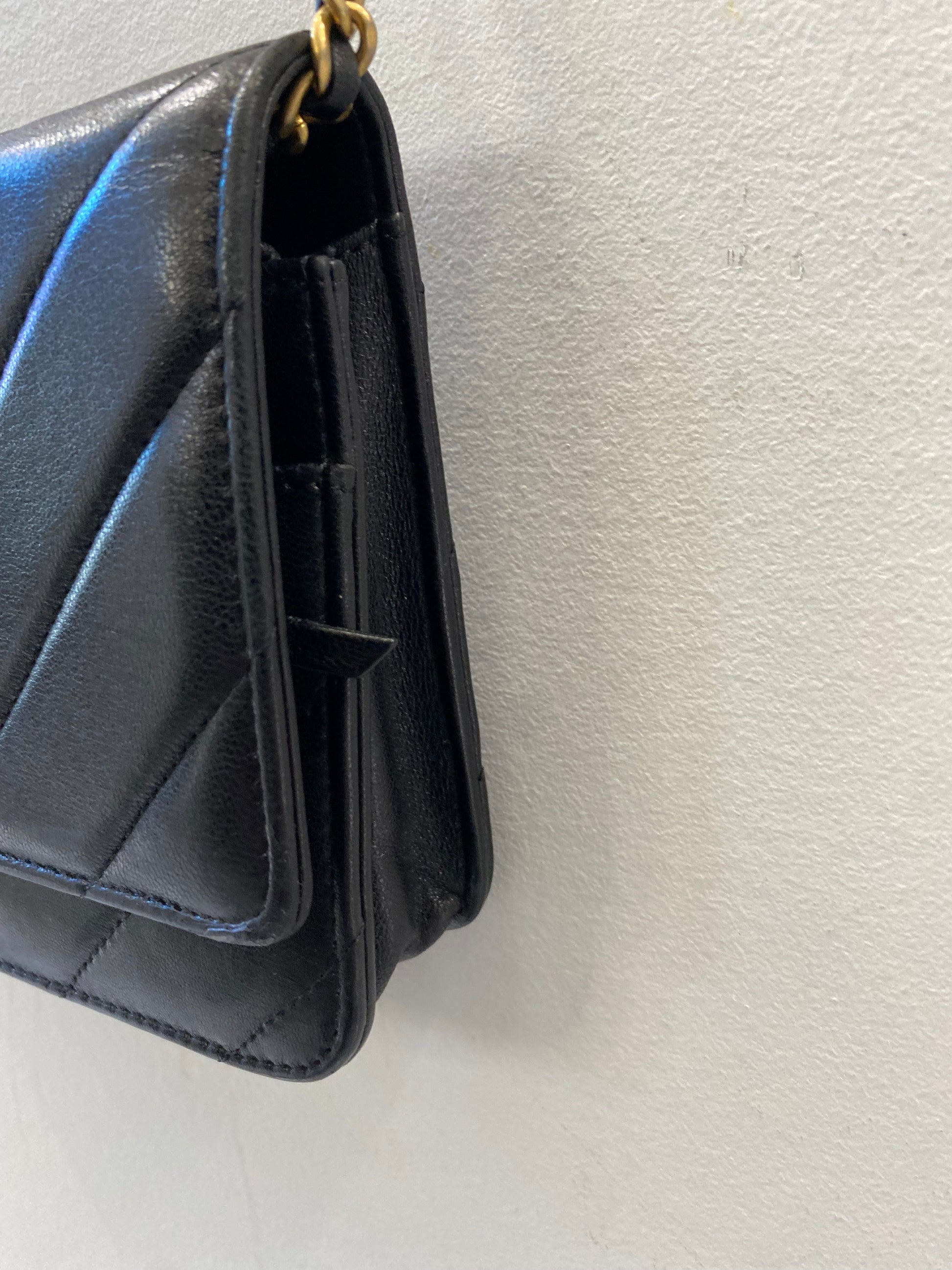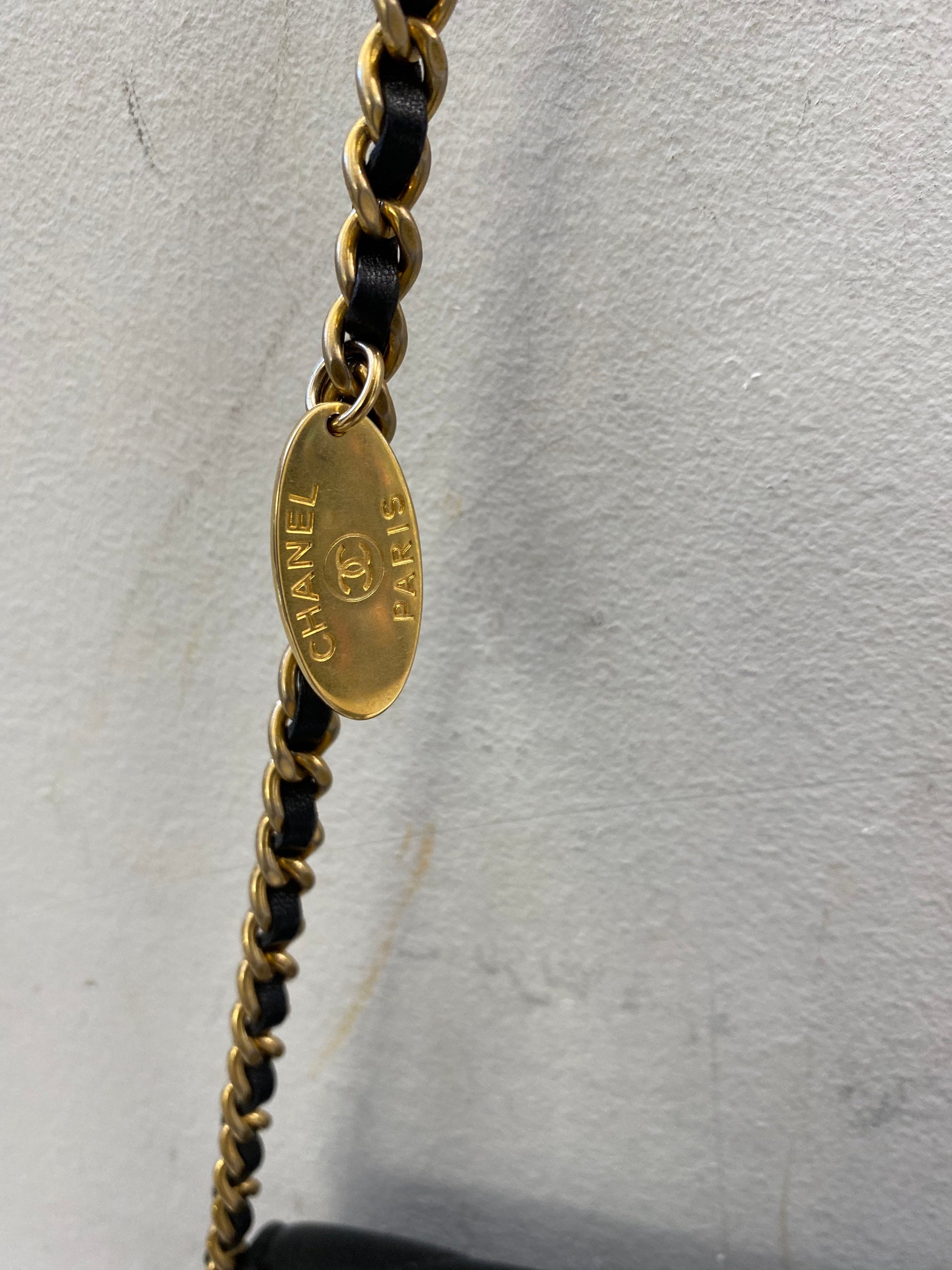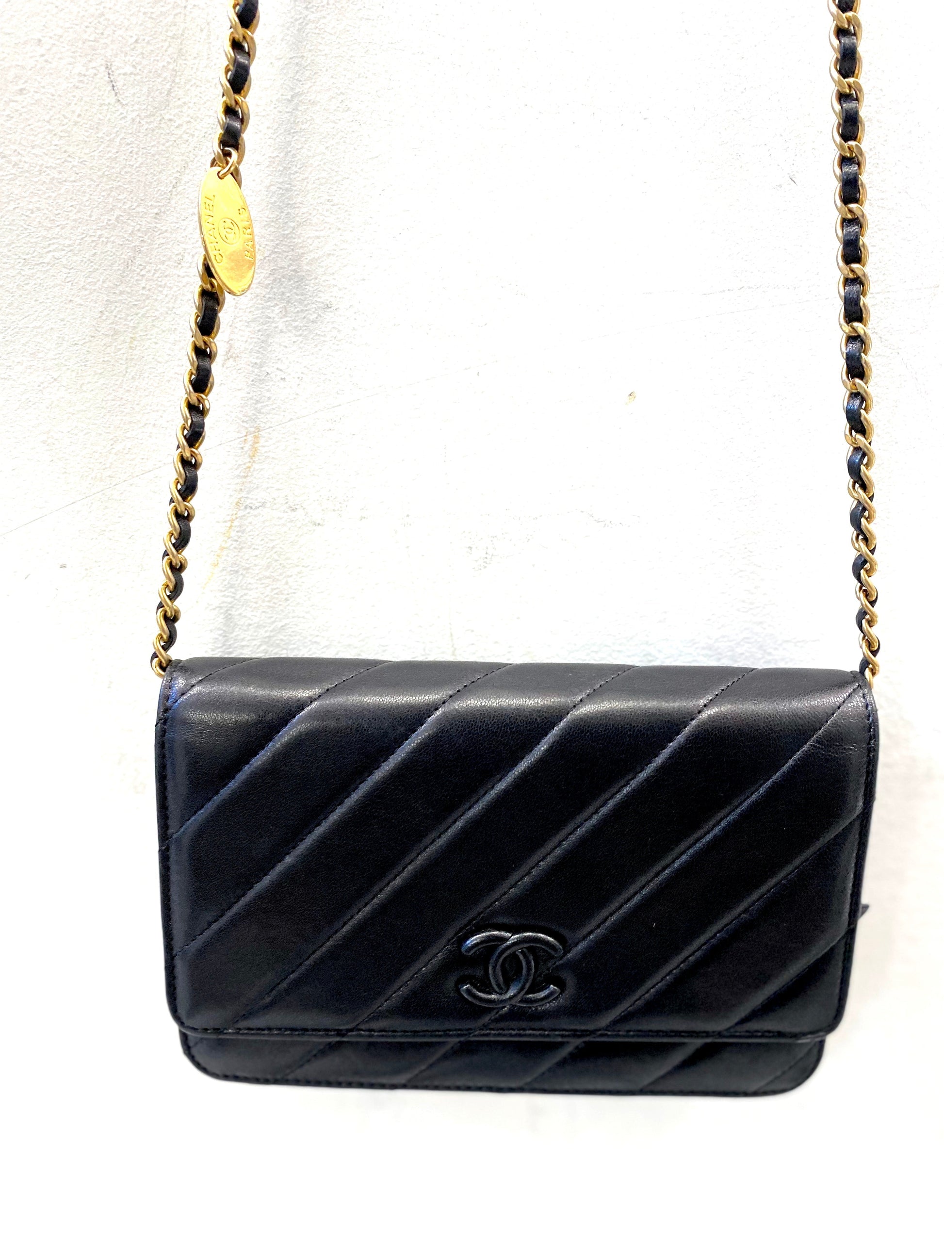Chanel Black Leather Diagonal Quilted CC Signature Flap Bag