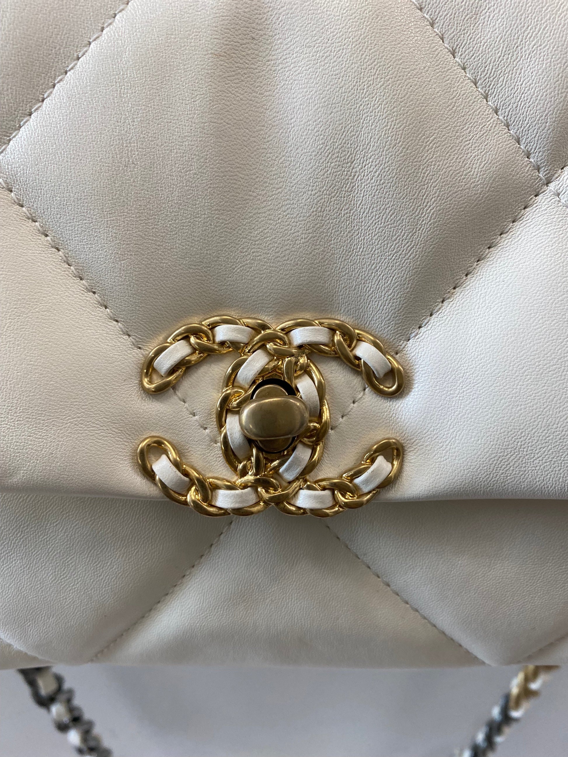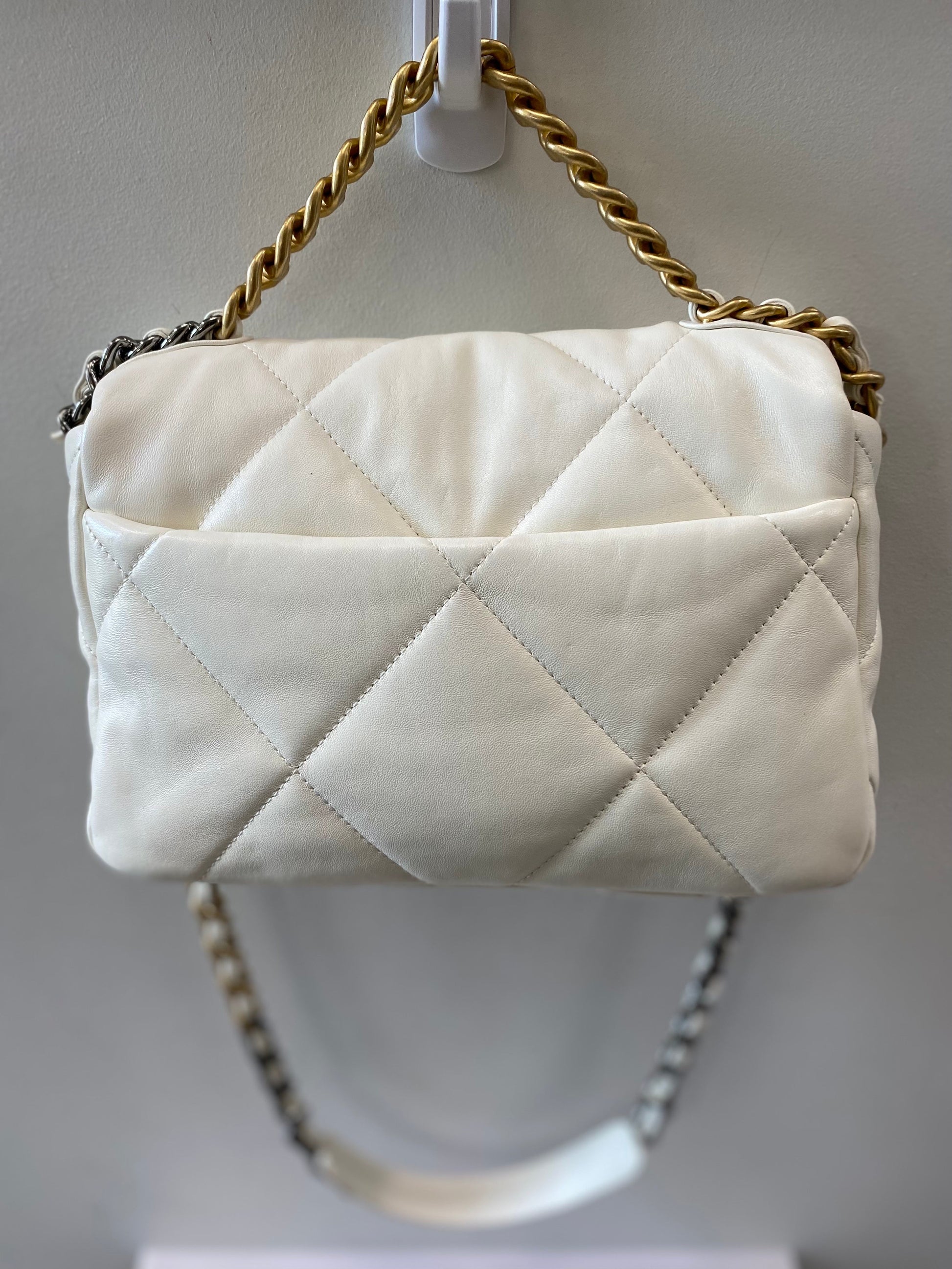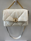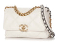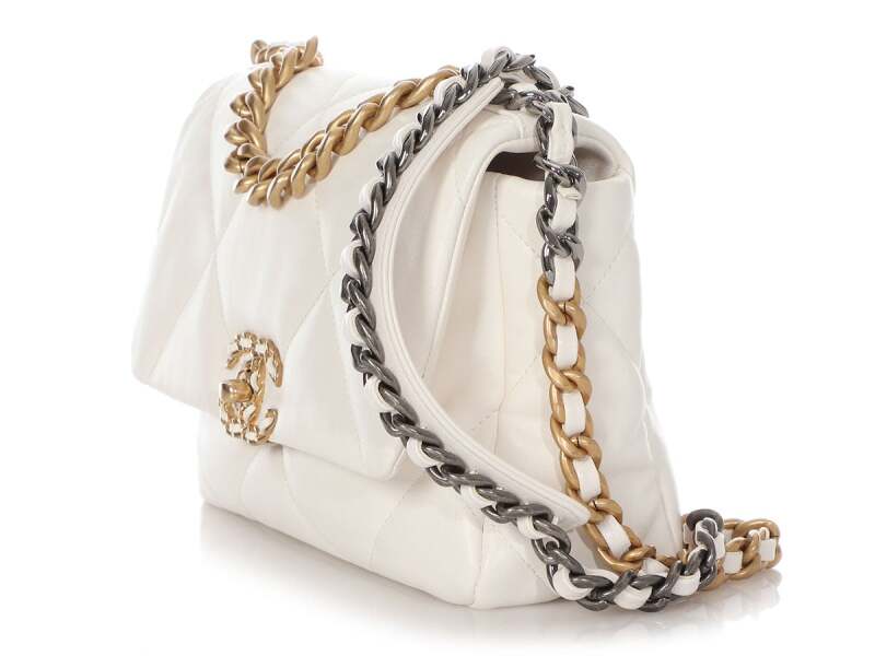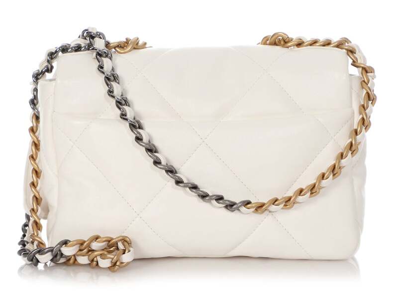 Chanel White Quilted Calfksin Medium 19 Bag Gold, Ruthenium, and Silver Hardware, 2021