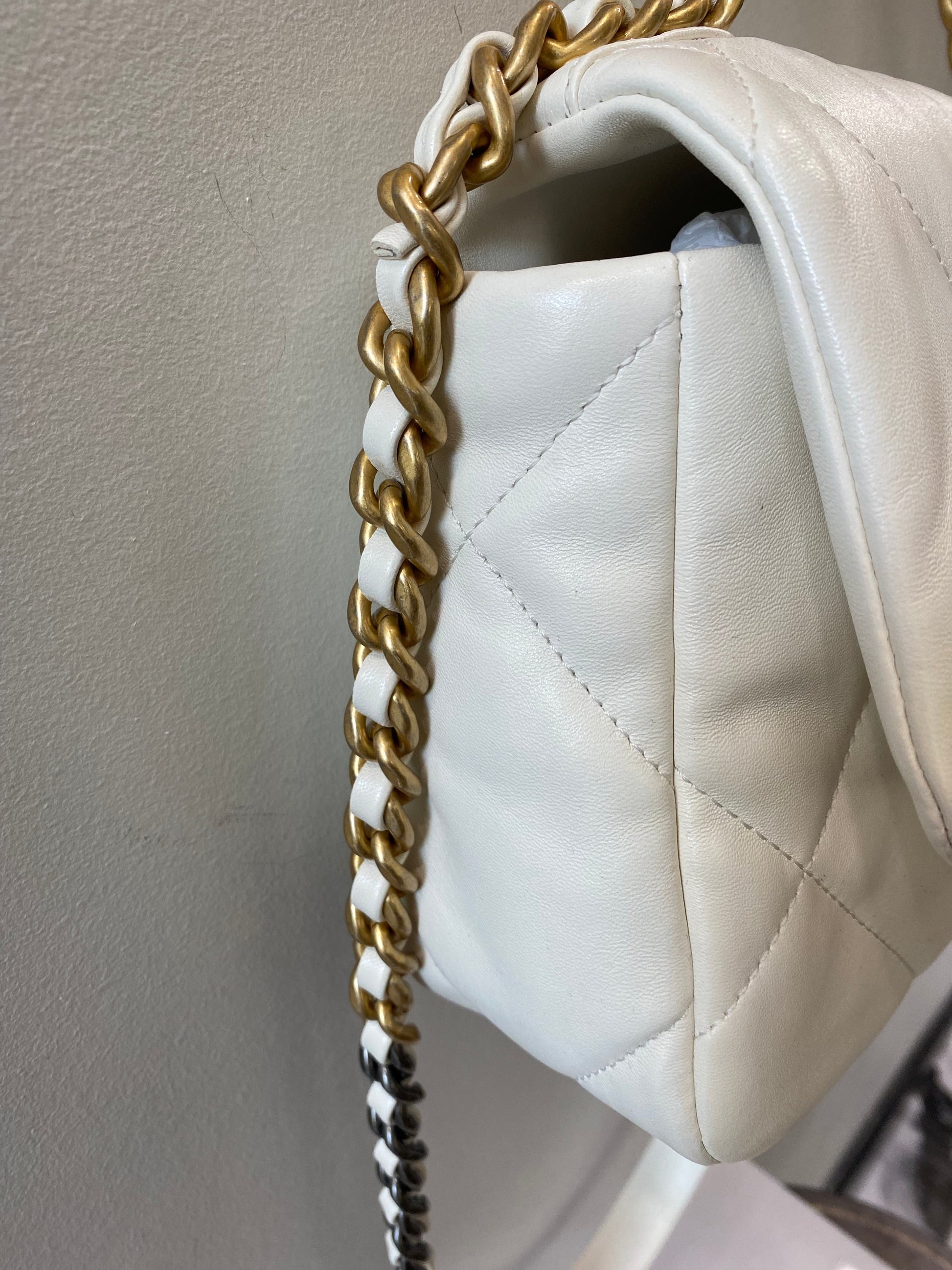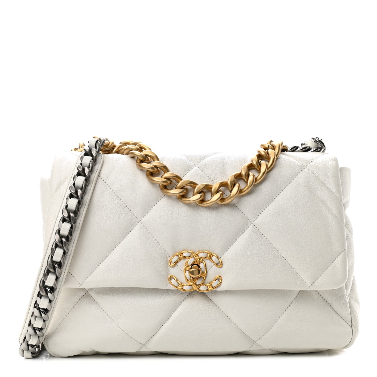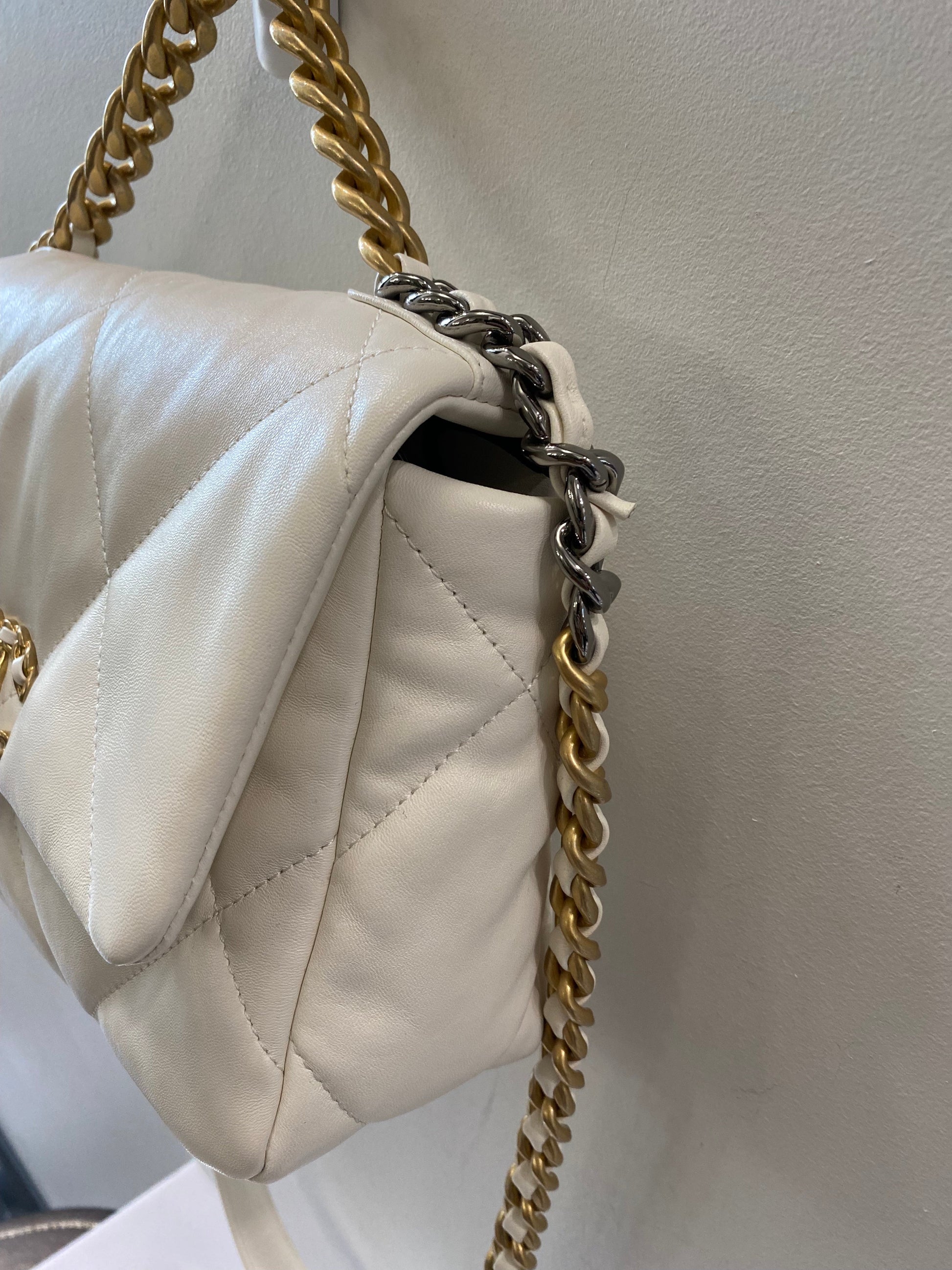 Chanel White Quilted Calfksin Medium 19 Bag Gold, Ruthenium, and Silver Hardware, 2021
