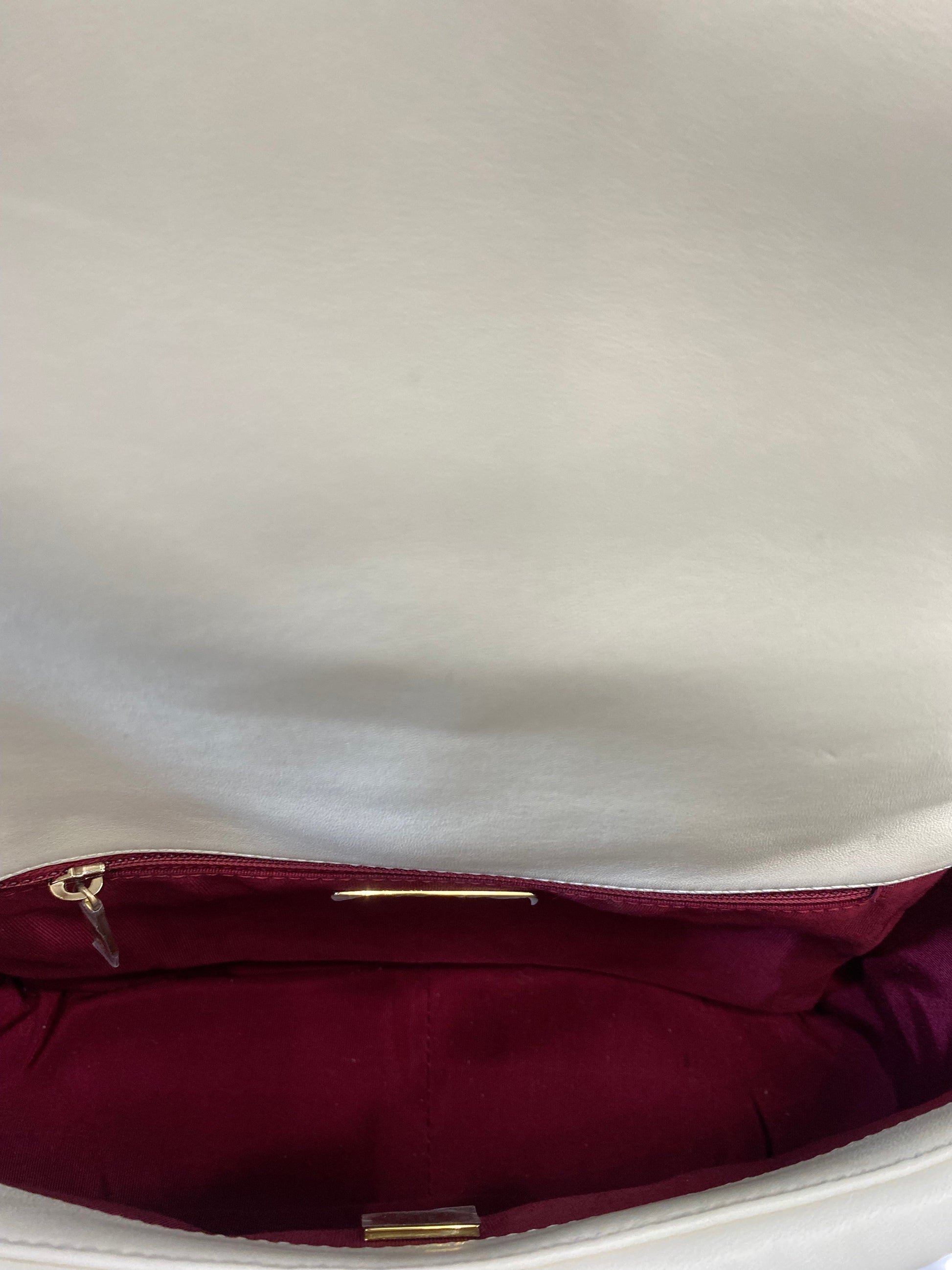This Medium 19 Flap bag is of White calfskin with mixed metal hardware and has the signature diamond quilting, signature CC interlocking closure, exterior back pocket, chain top handle, and long mixed metal and white leather chain.