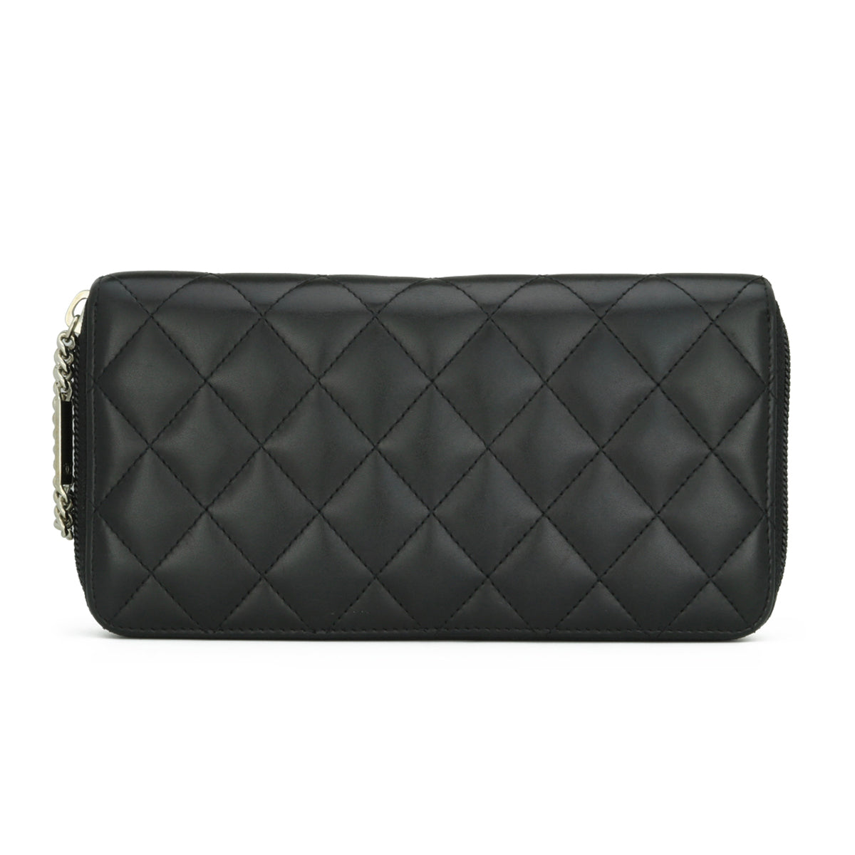 Chanel Quilted Cambon Long Zipped Wallet Black Calfskin Silver Hardware 2012