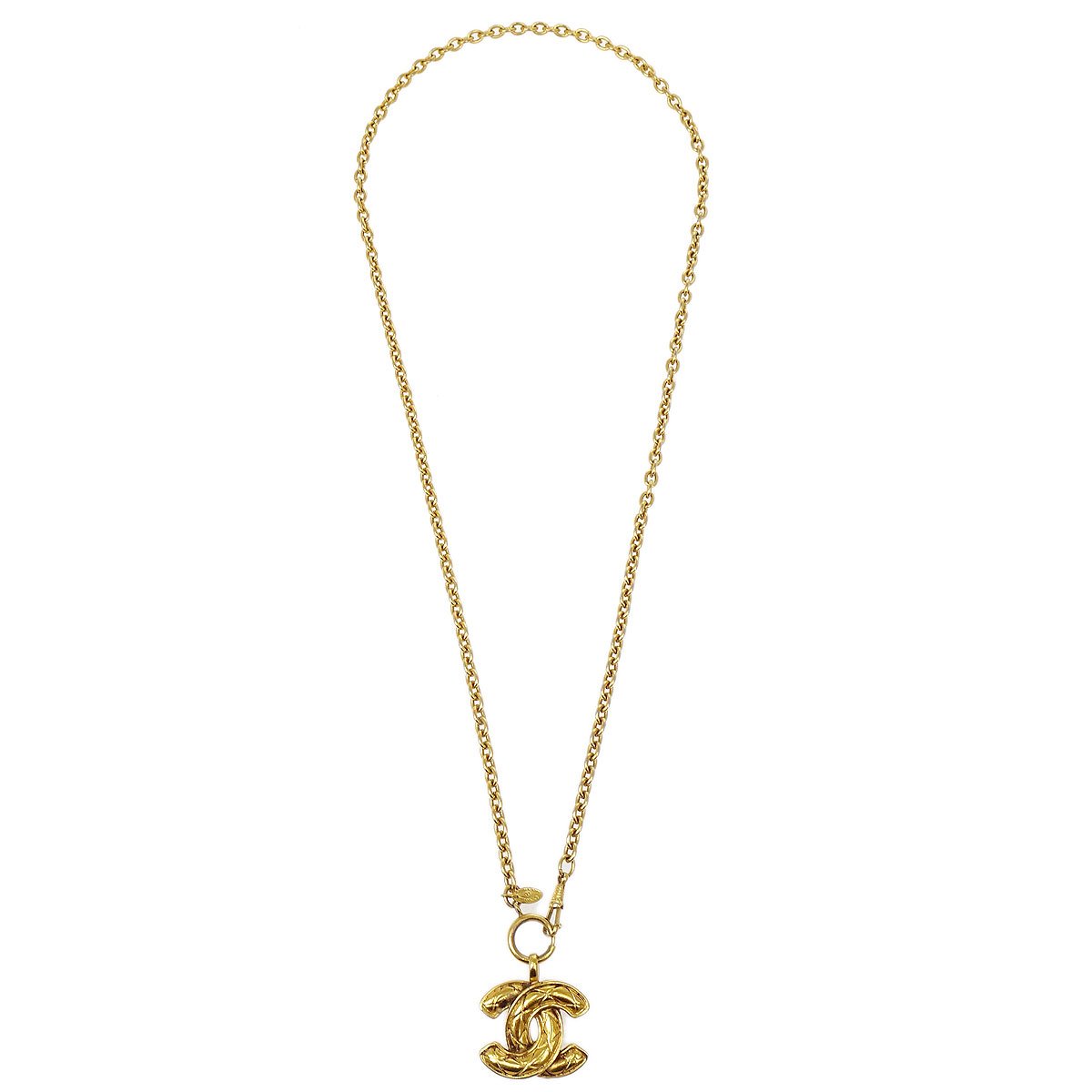 CHANEL CC Quilted Gold Chain Pendant Necklace 3856