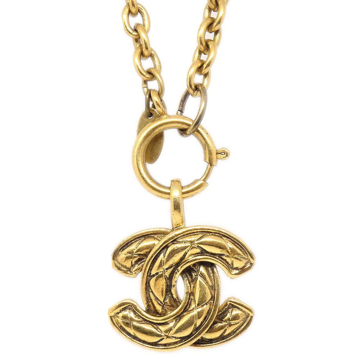Chanel Quilted CC Gold Chain Pendant Necklace 3857