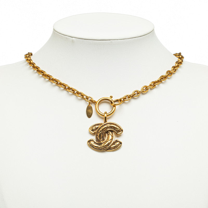 Chanel Quilted CC Logo Pendant Necklace Metal Necklace in Good condition